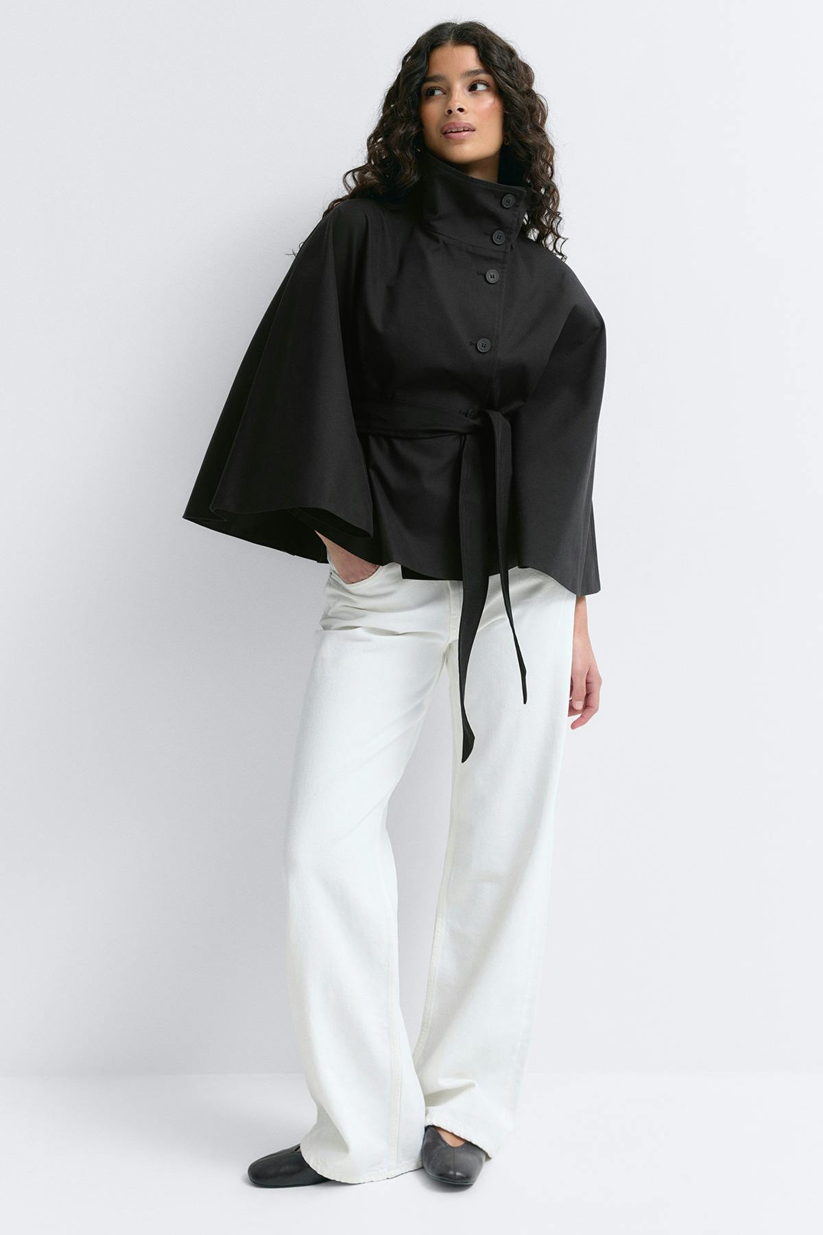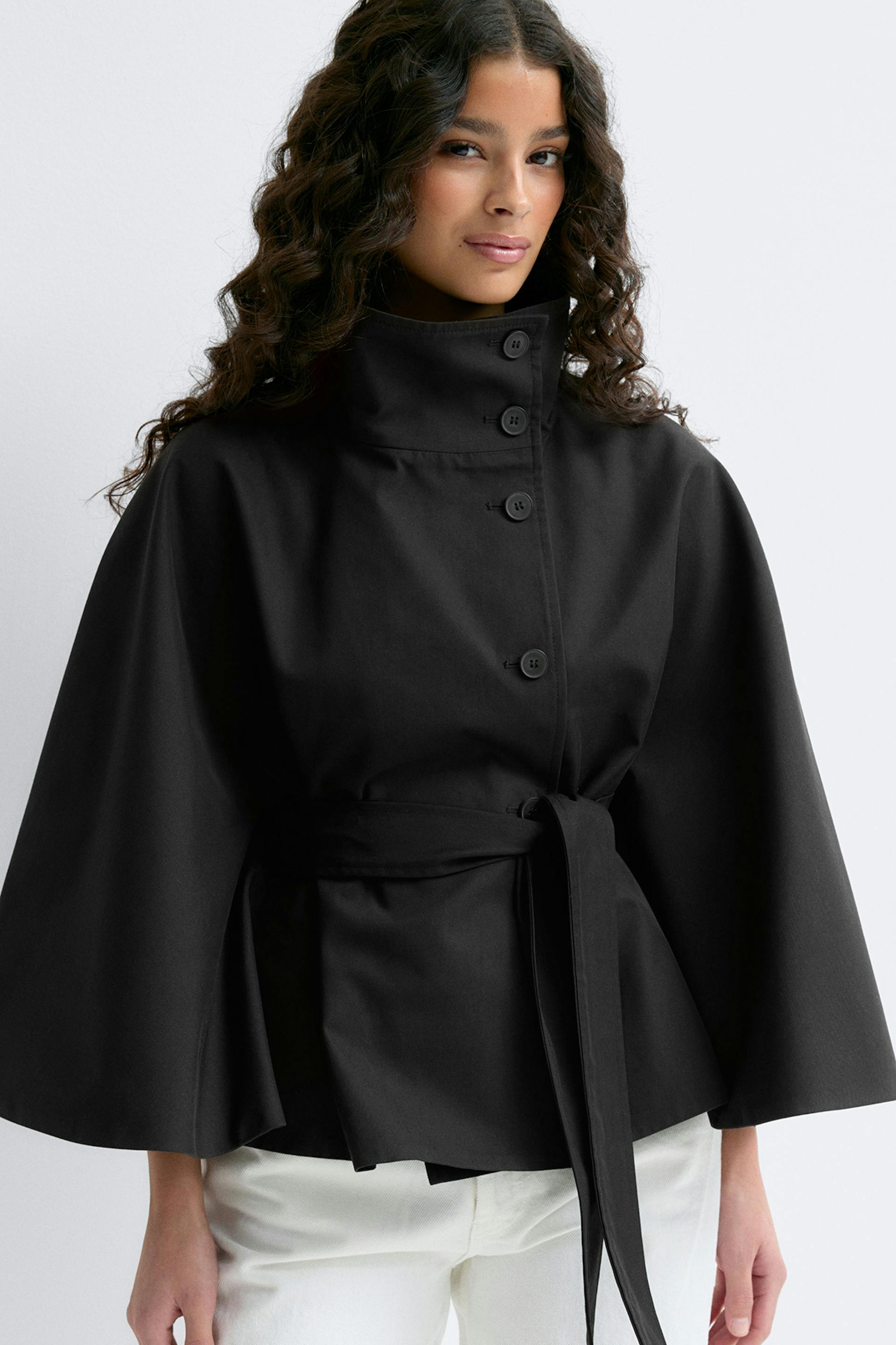 Short cape trench jacket