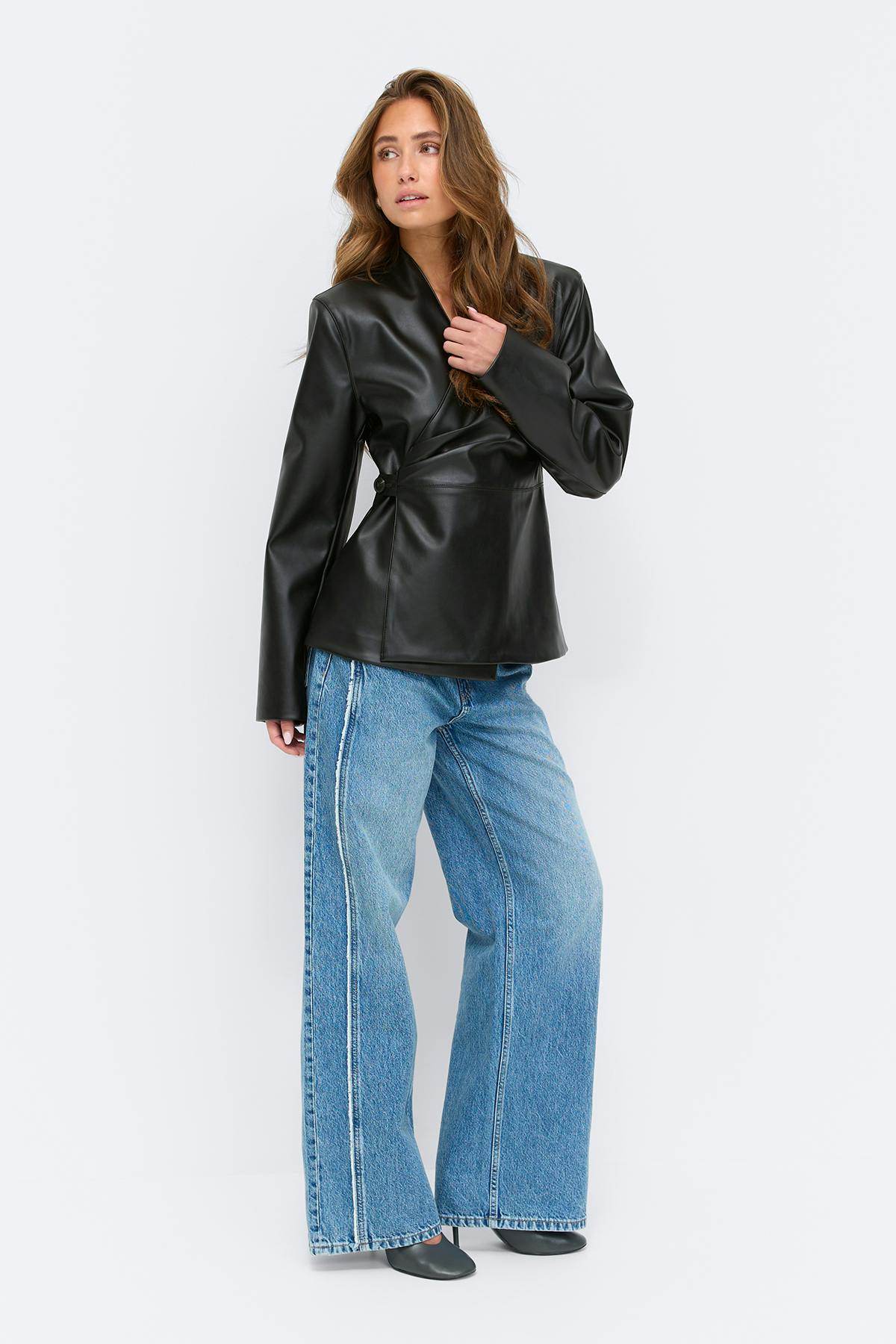 Pu wrap blazer