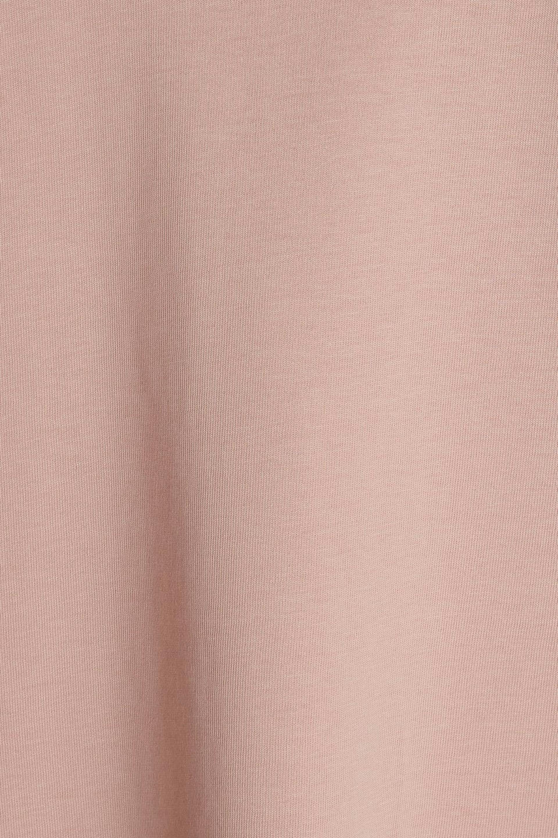 Toppi ylisuuri istuvuudella. Toppi on pinkki ja siinä on paksu materiaali. Siinä on ribbed mansetti kaula-aukossa.