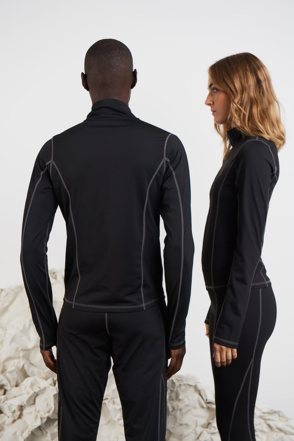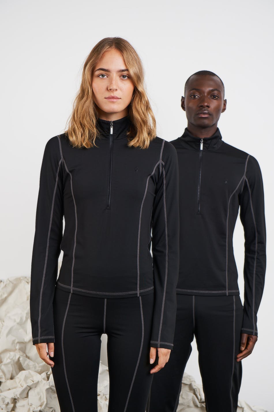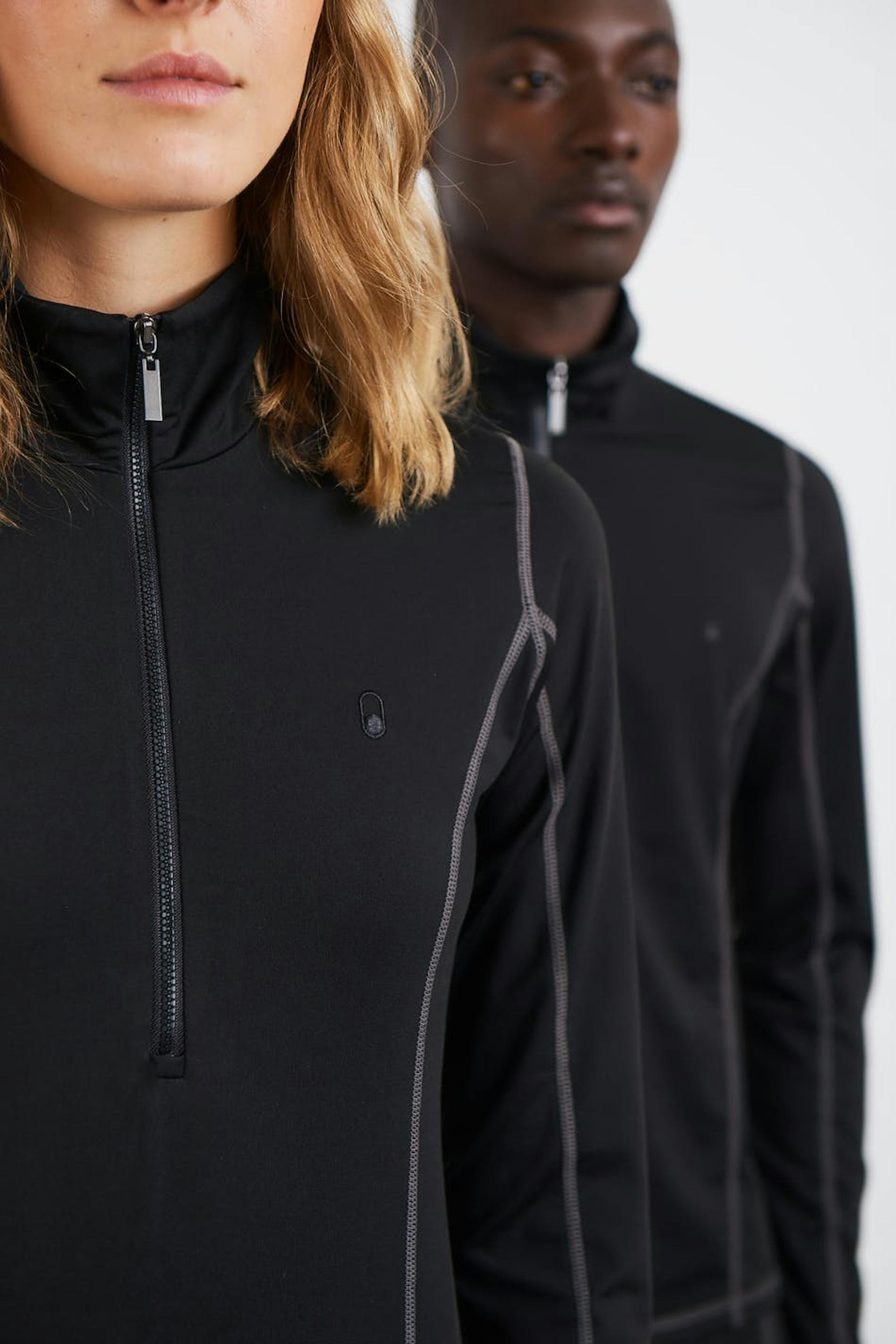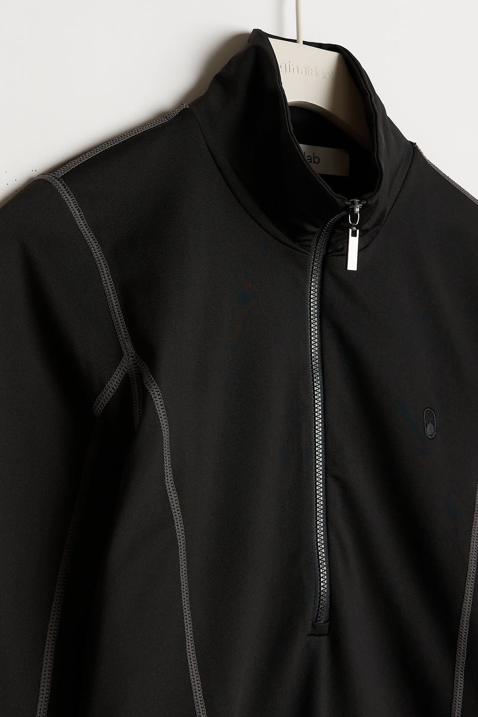 Toppi Gina Lab-tuotemerkiltä normaalilla istuvuudella. Toppi on musta ja siinä on poolokaulus. Se valmistetaan We are SpinDye -kankaasta ja siinä on puolivetoketju ylhäällä ja materiaali kierrätetystä polyesteristä. Huipputeknologisessa kankaassa on erinomainen hengittävyys ja hajua estävä toiminto.