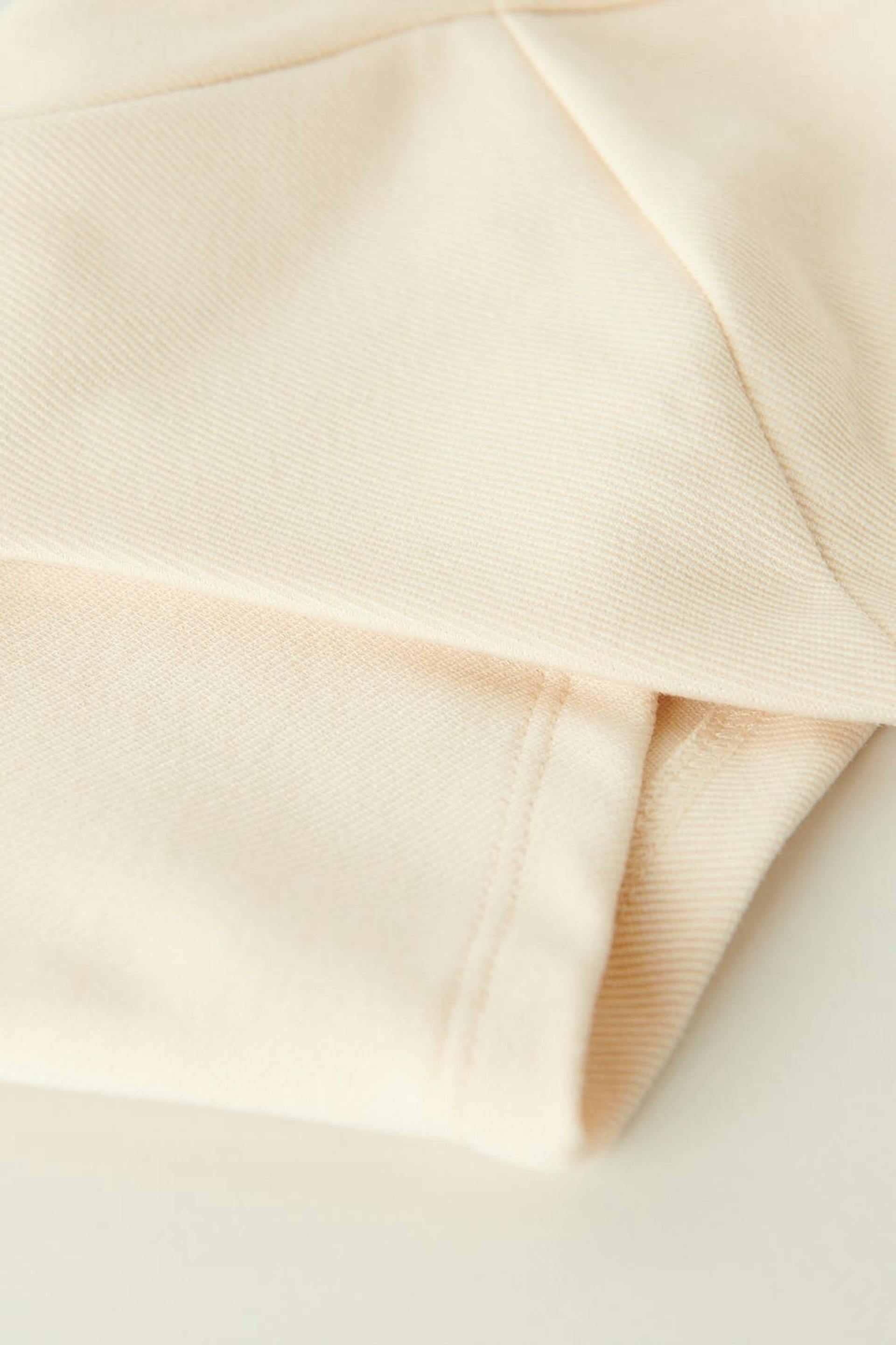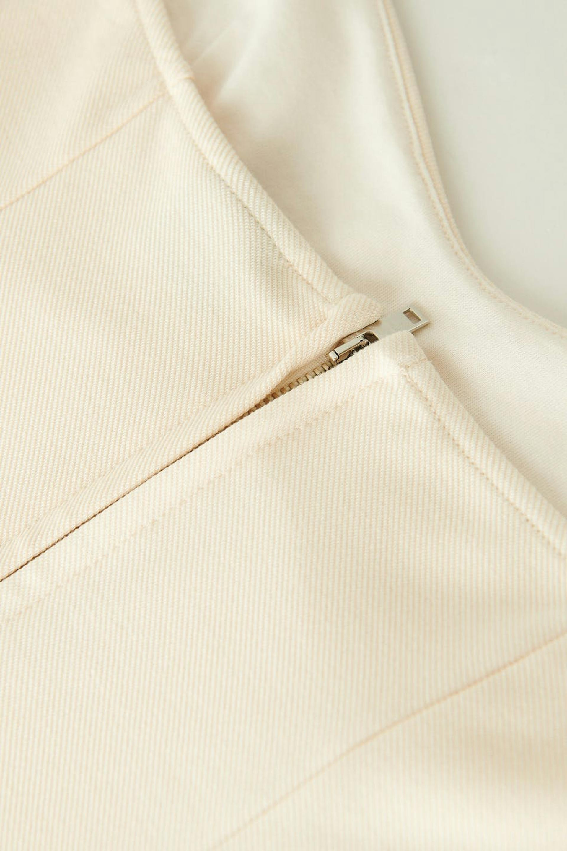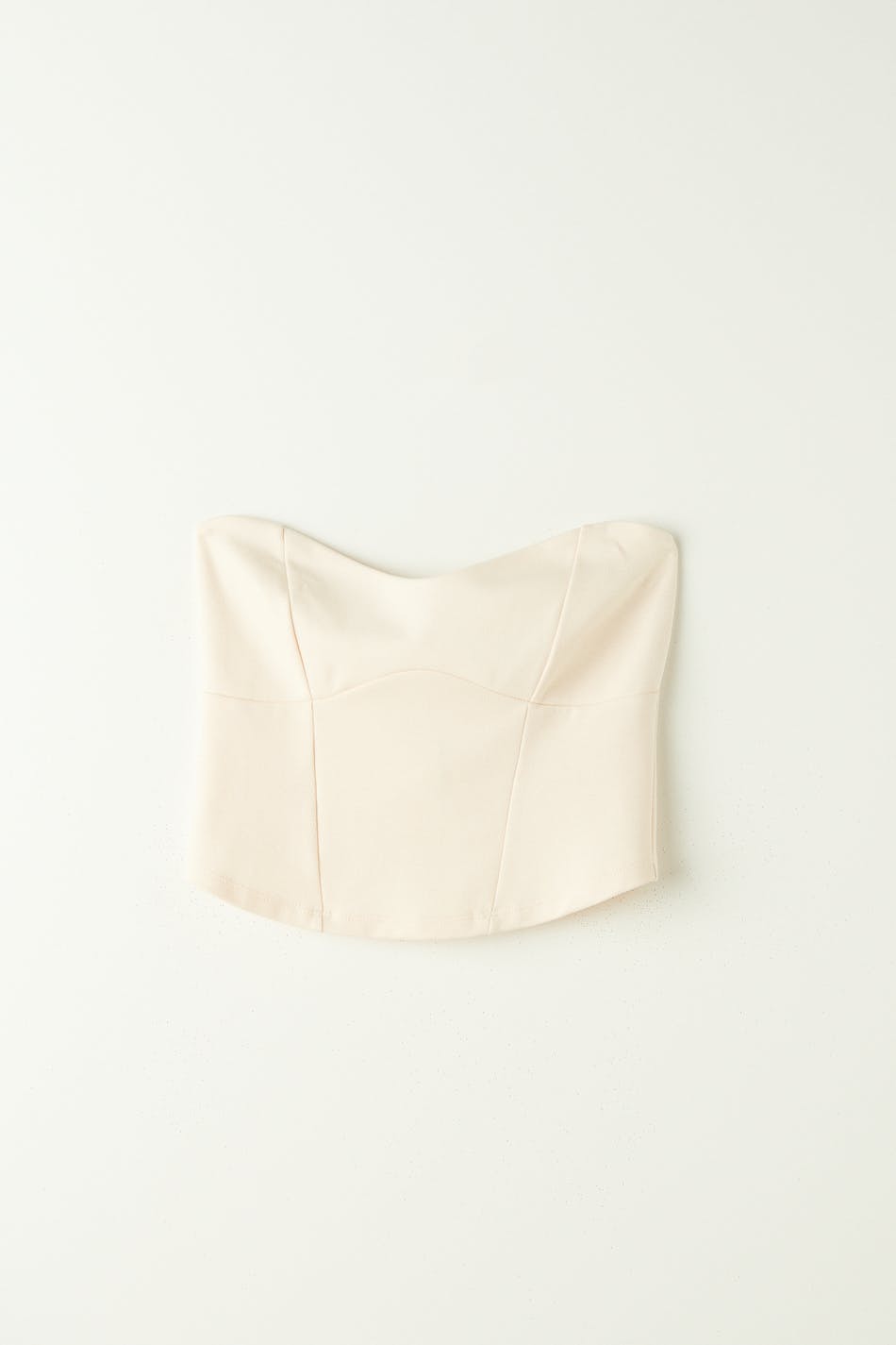 Cropattu bustier-toppi trikoosta sweetheart-pääntiellä. Bustier-toppi on valkoinen ja siinä on vartalonmyötäinen istuvuus. Siinä on koristeelliset saumayksityiskohdat edessä ja vetoketju selässä.