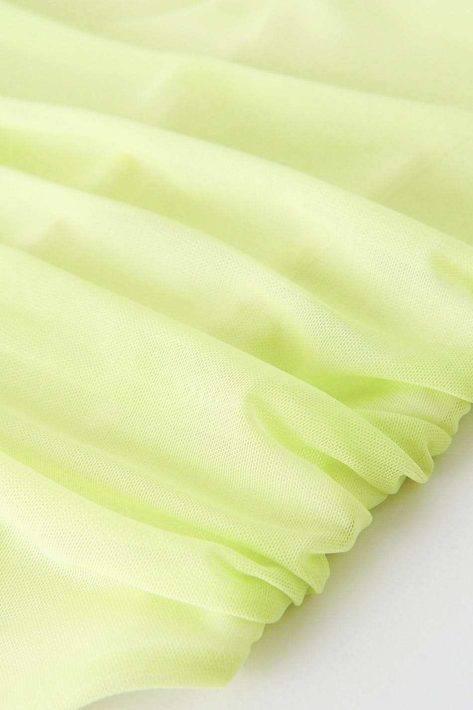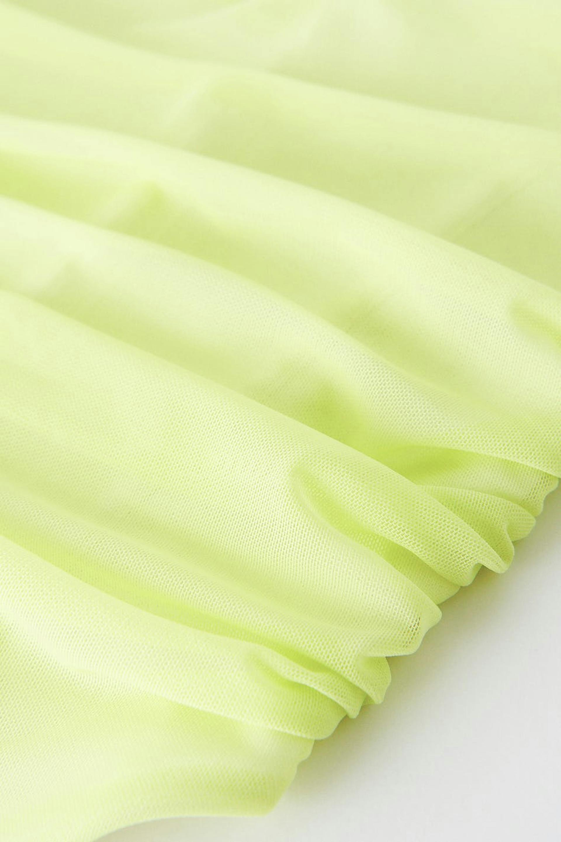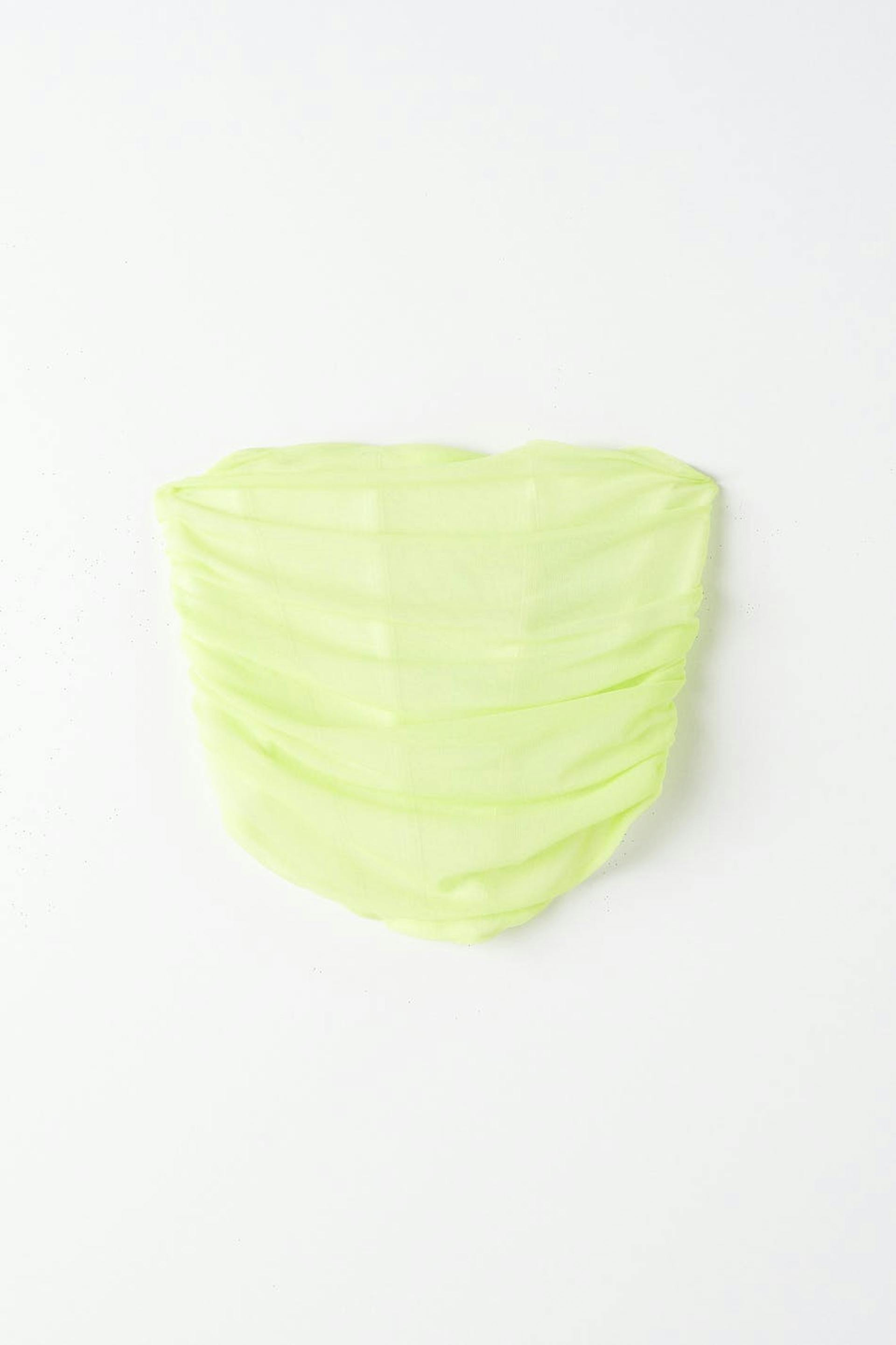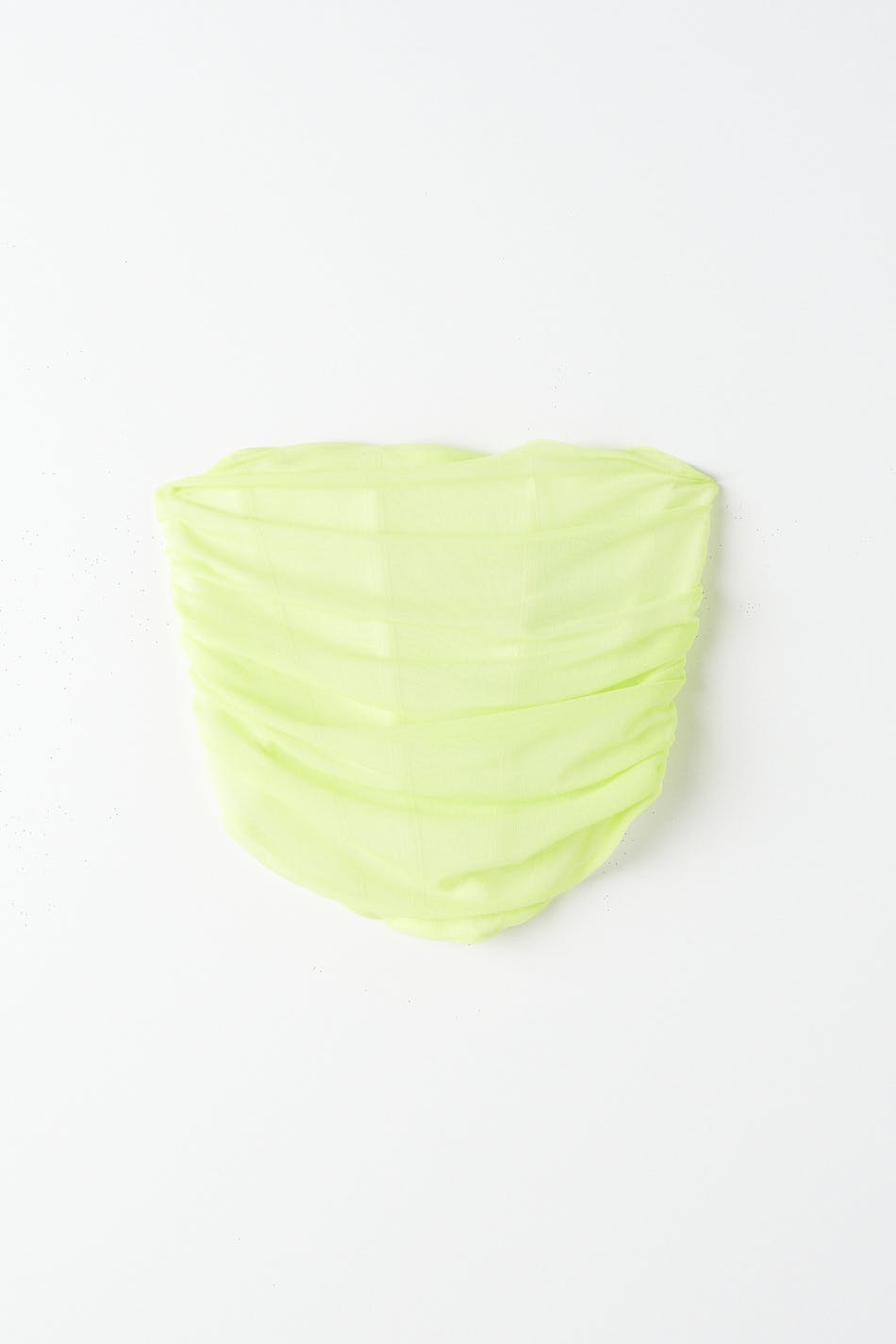 Korsetti nyörityksellä selässä. Korsetti on vihreä ja siinä on poimutettu efekti edessä. Siinä on luurakenteet edessä ja takana antamaan lisätukea.