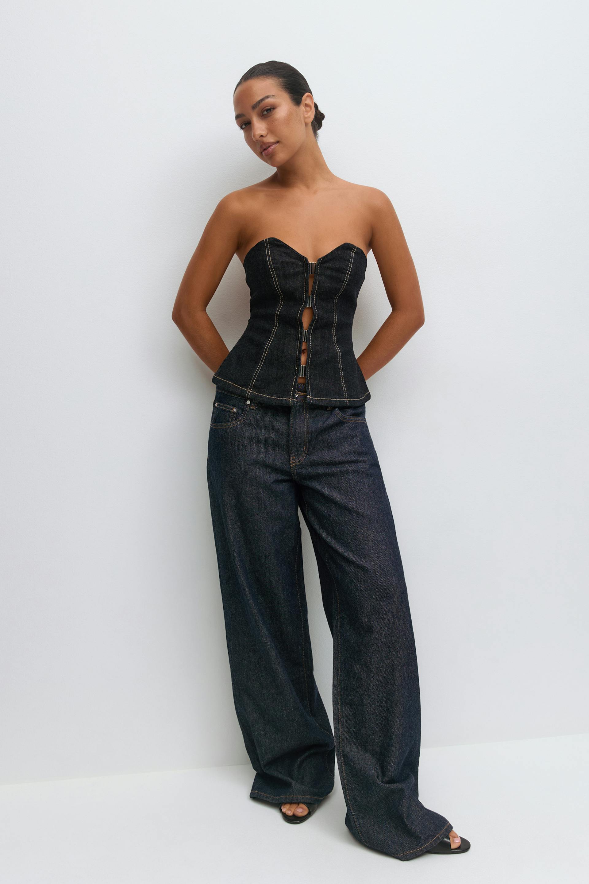 Sculpted denim bustier