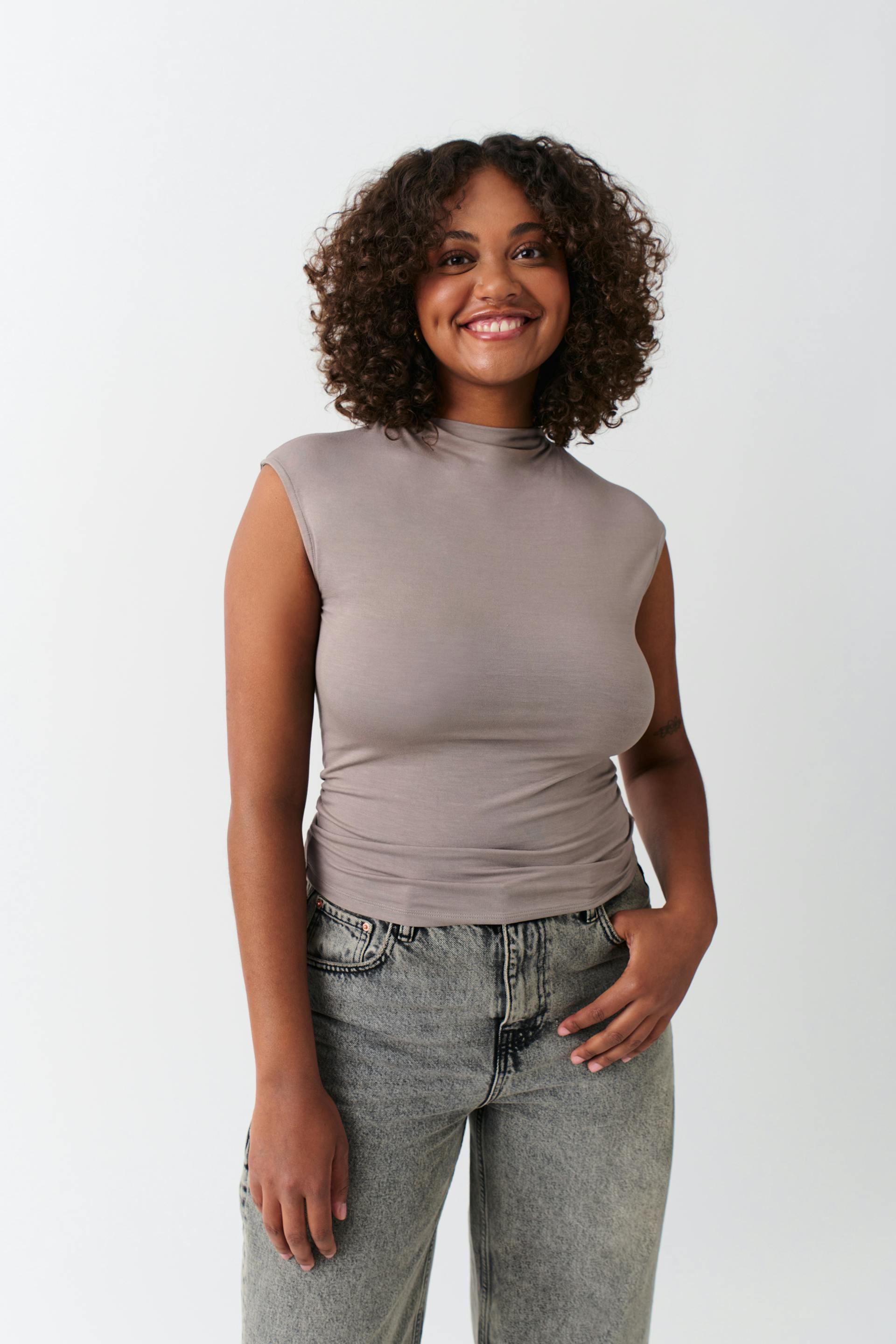 soft touch funnel neck top
