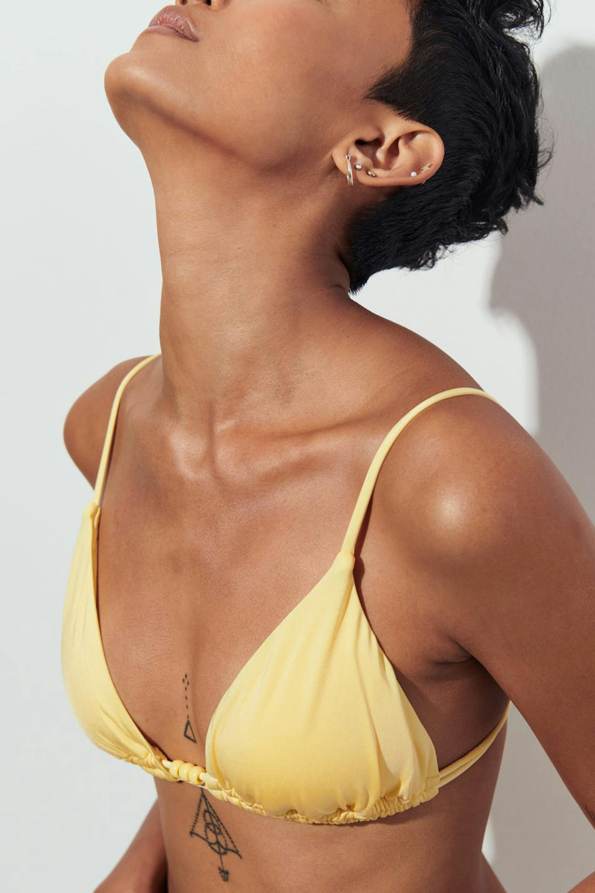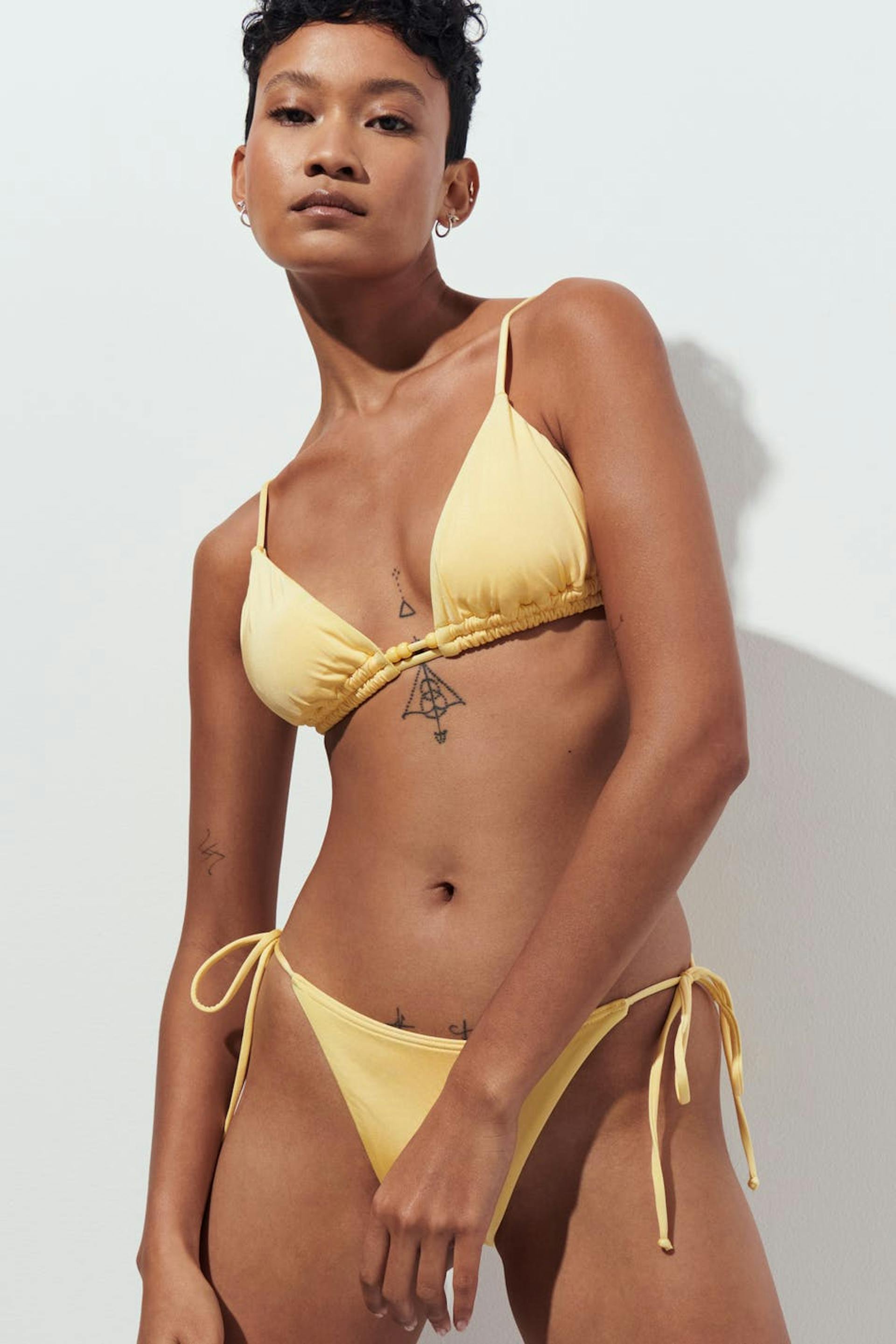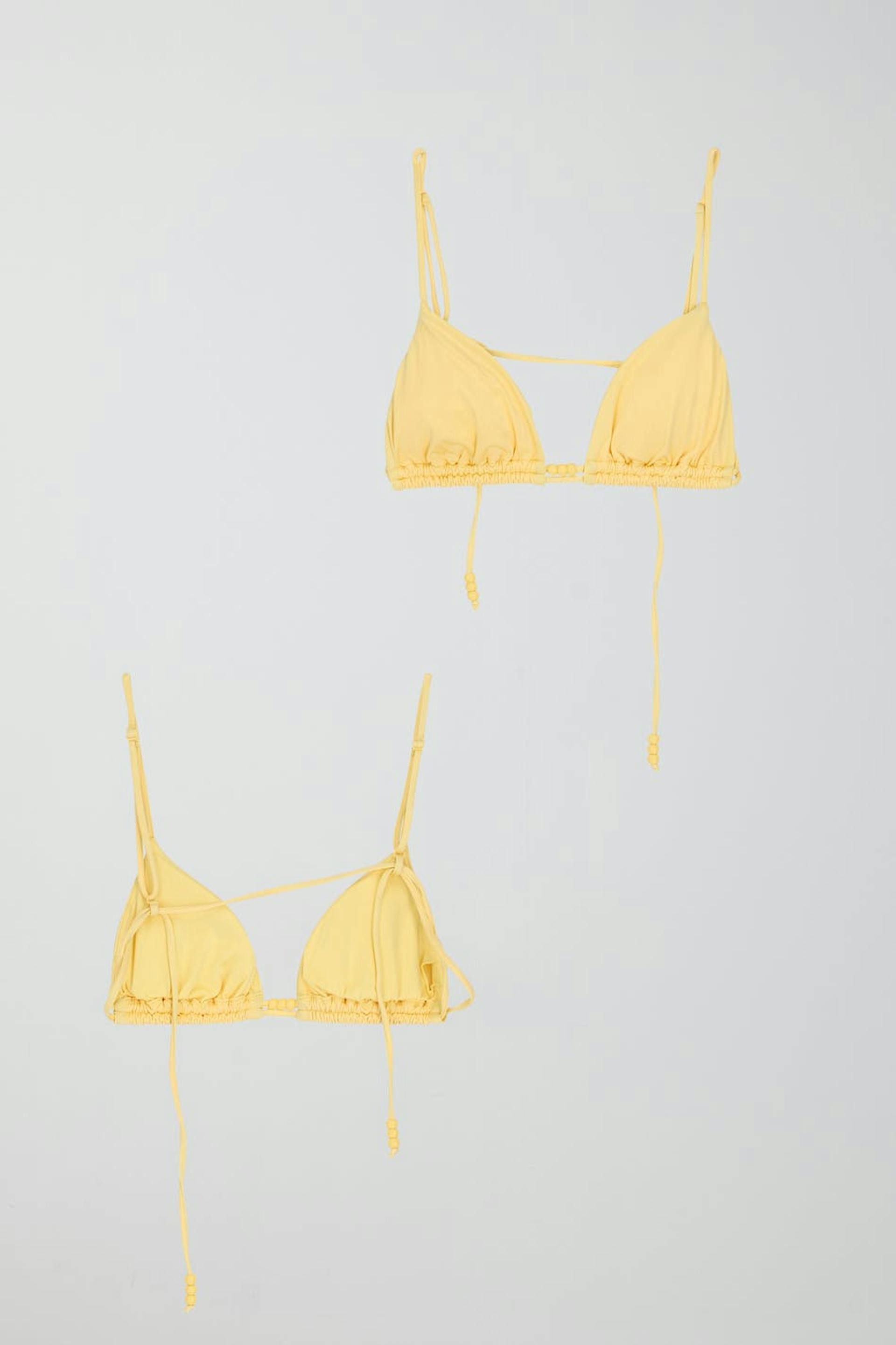 Shiny tie triangle bikini top