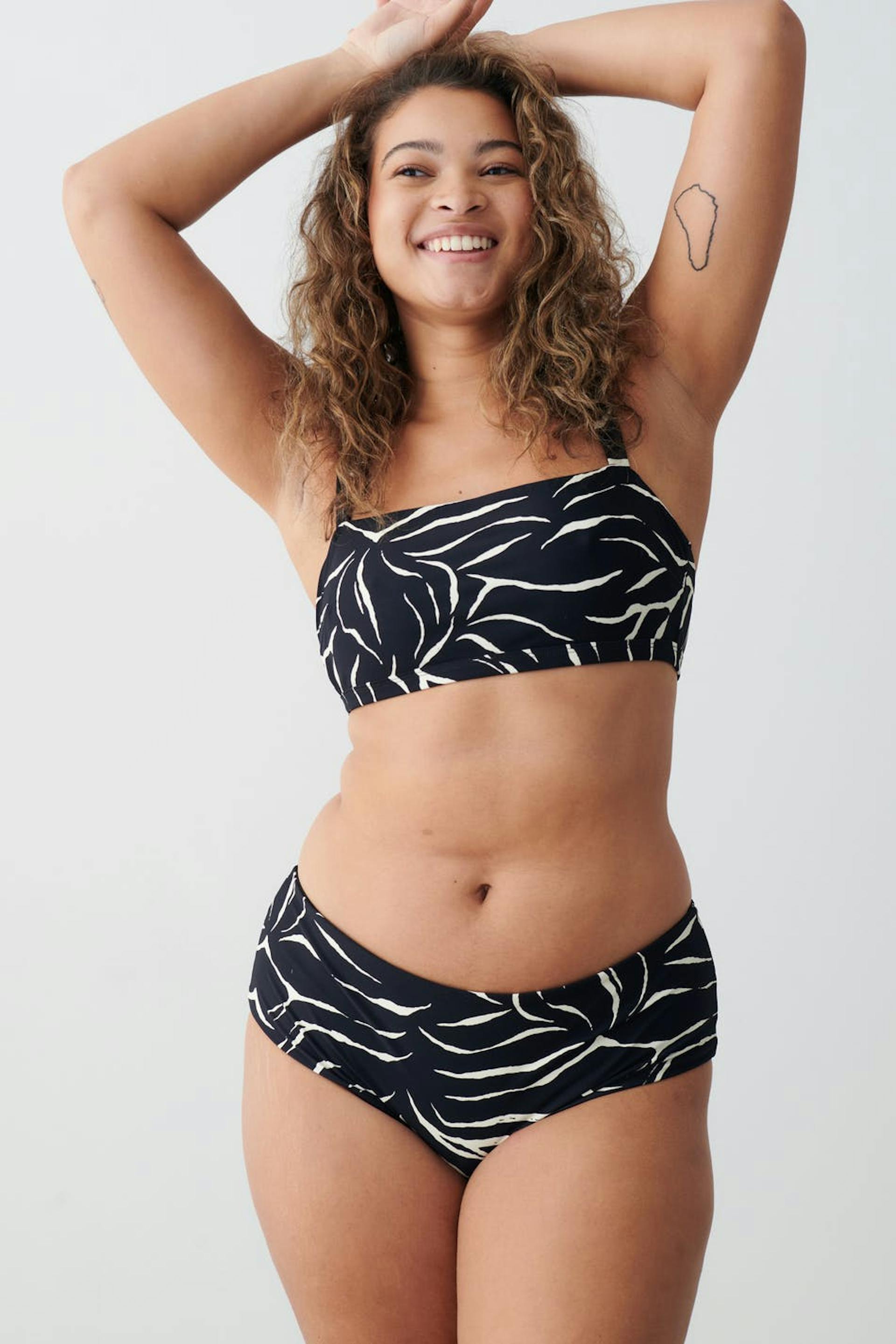 Seeprakuvioidut bikinin alaosat puolikiiltävällä uimapukumateriaalilla. Pikkuhousut ovat mustia.