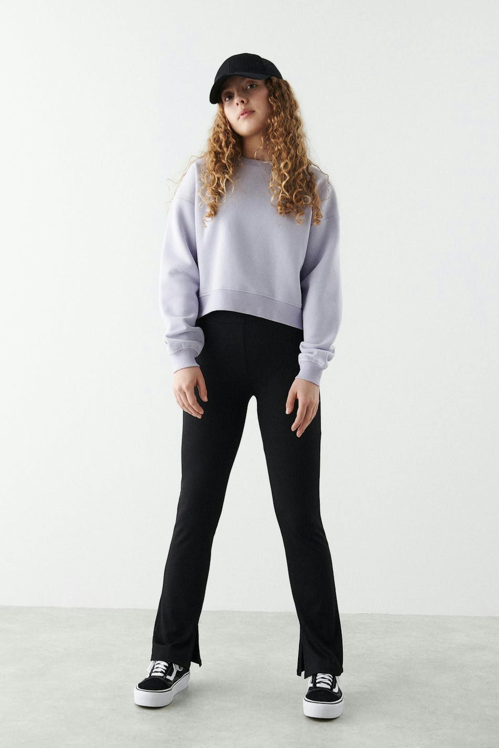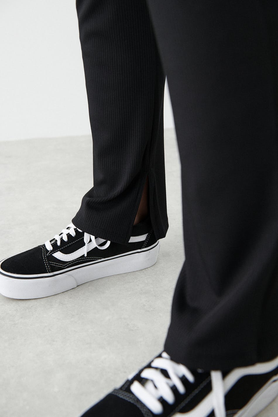 Joustavat leggingsit Young Gina-tuotemerkiltä vartalonmyötäisellä istuvuudella. Leggingsit ovat mustia ja niissä on suorat lahkeet. Niissä on kuminauha vyötäröllä ja halkio lahkeiden lopuissa.