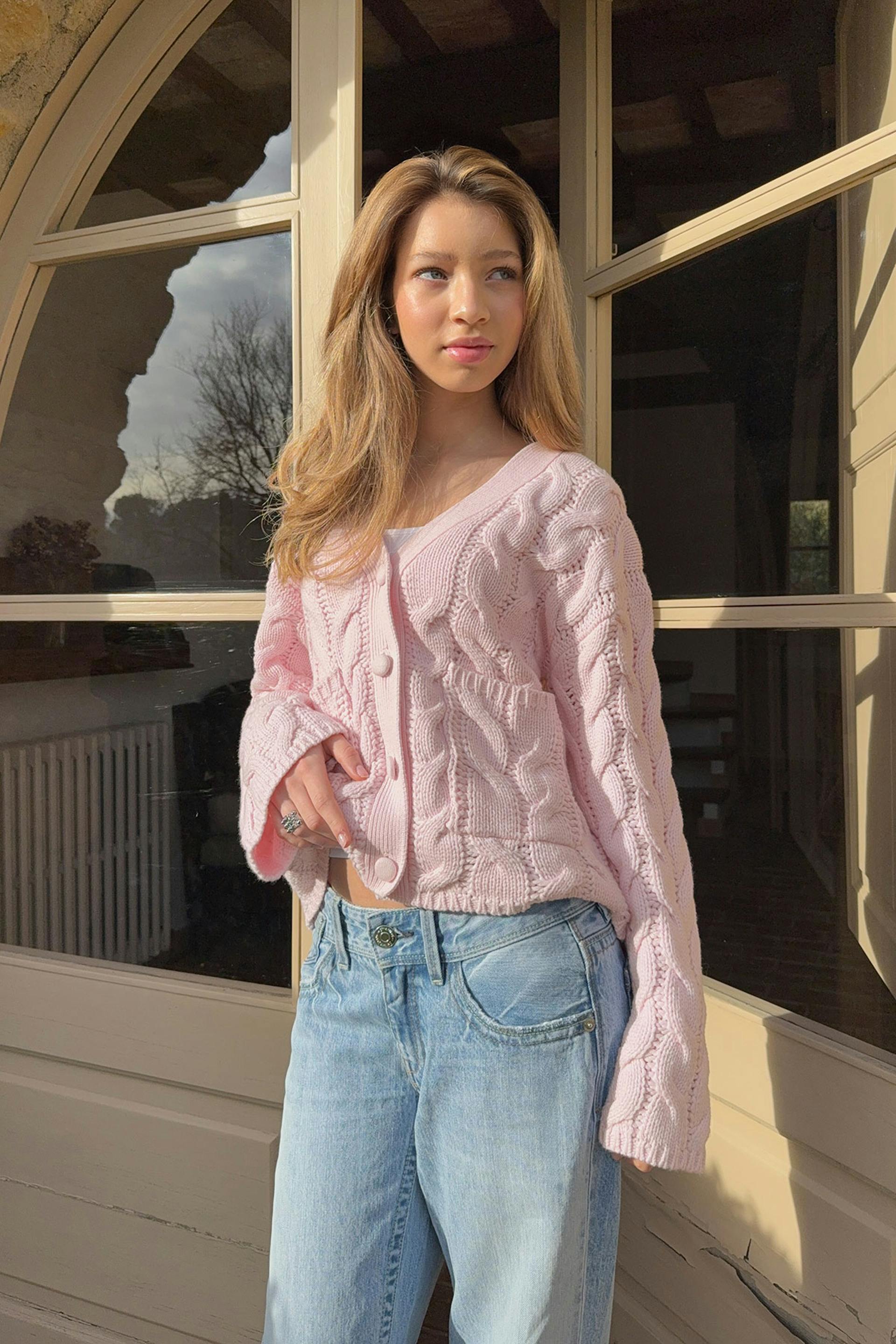 Y cable knitted cardigan