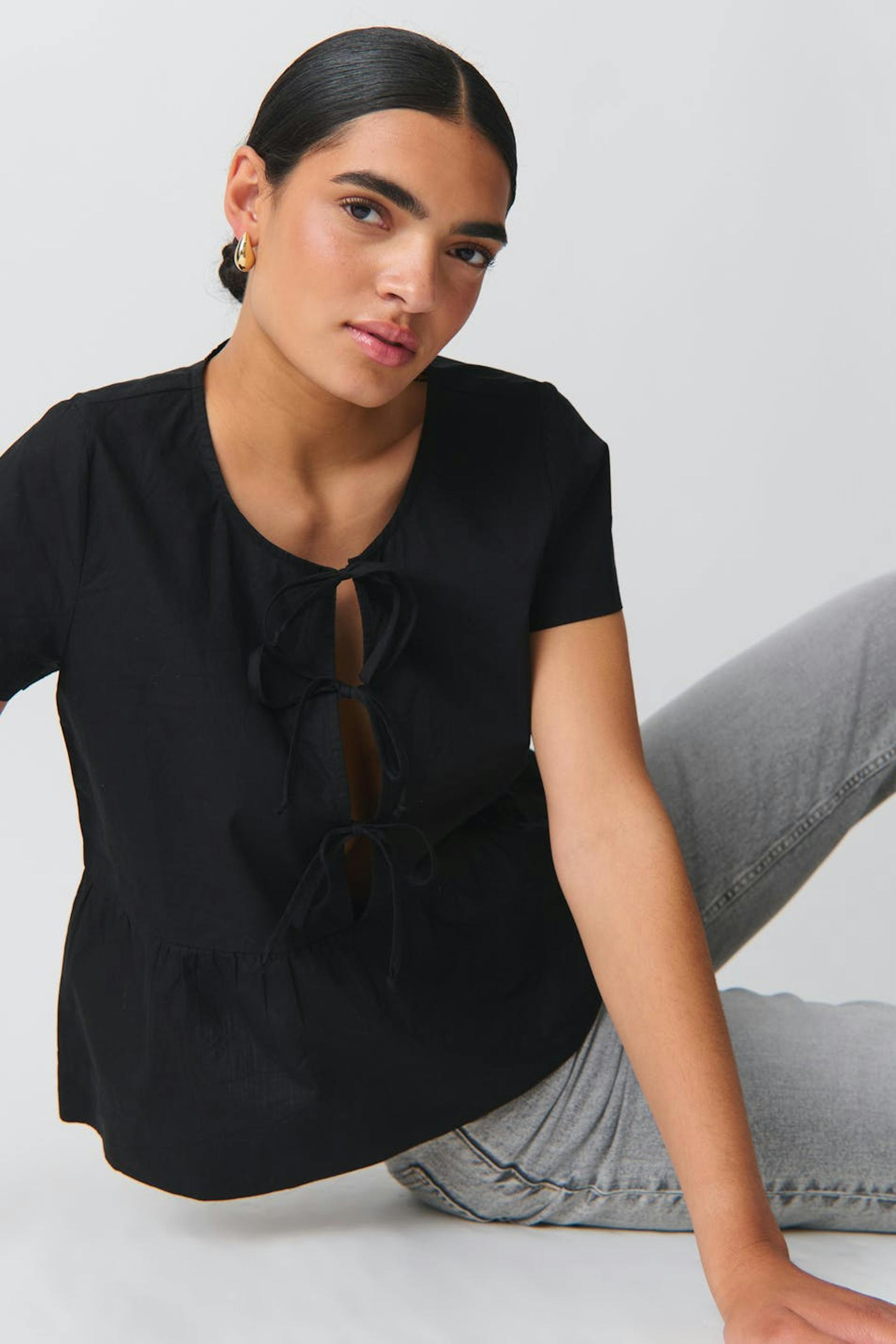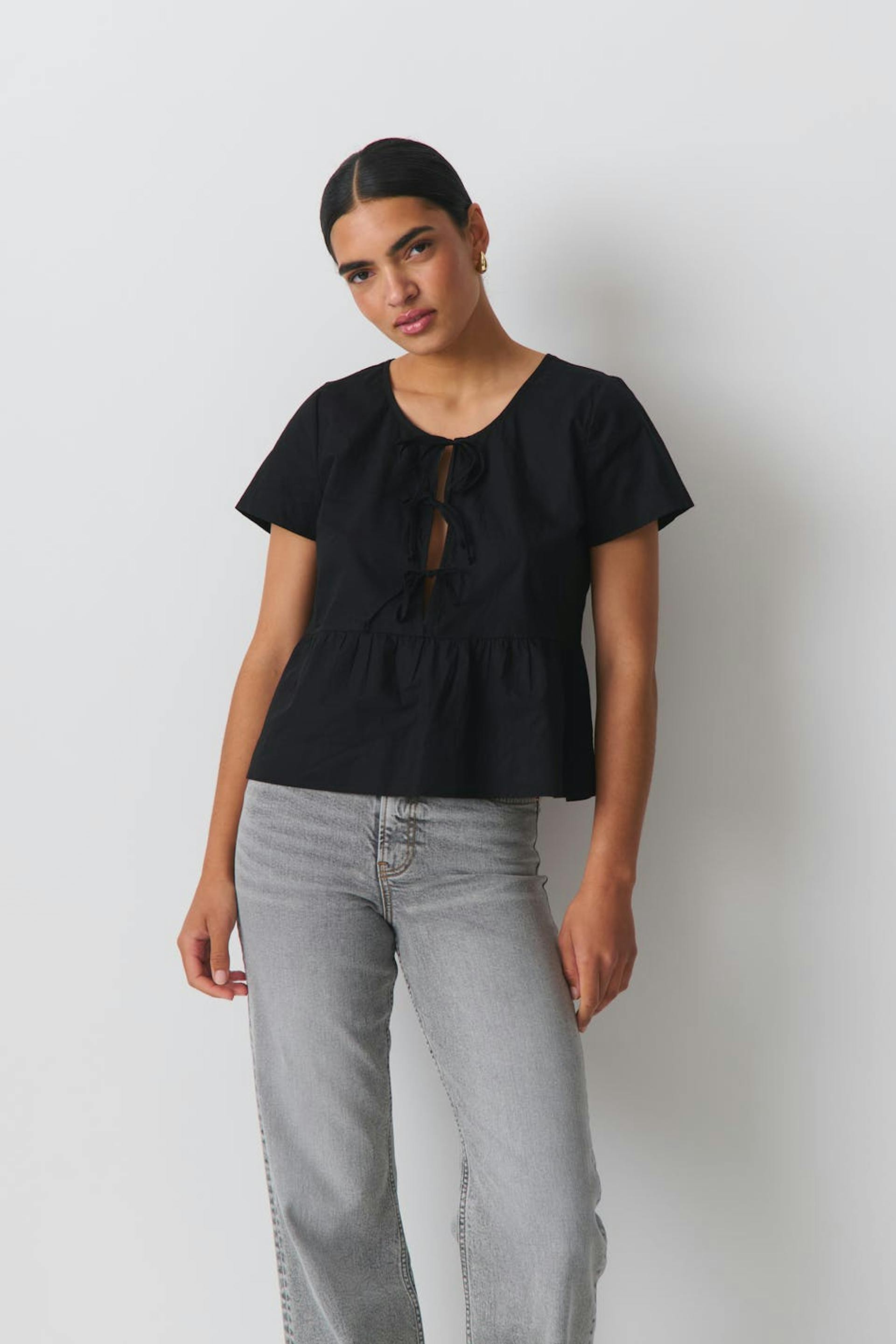 peplum tie blouse