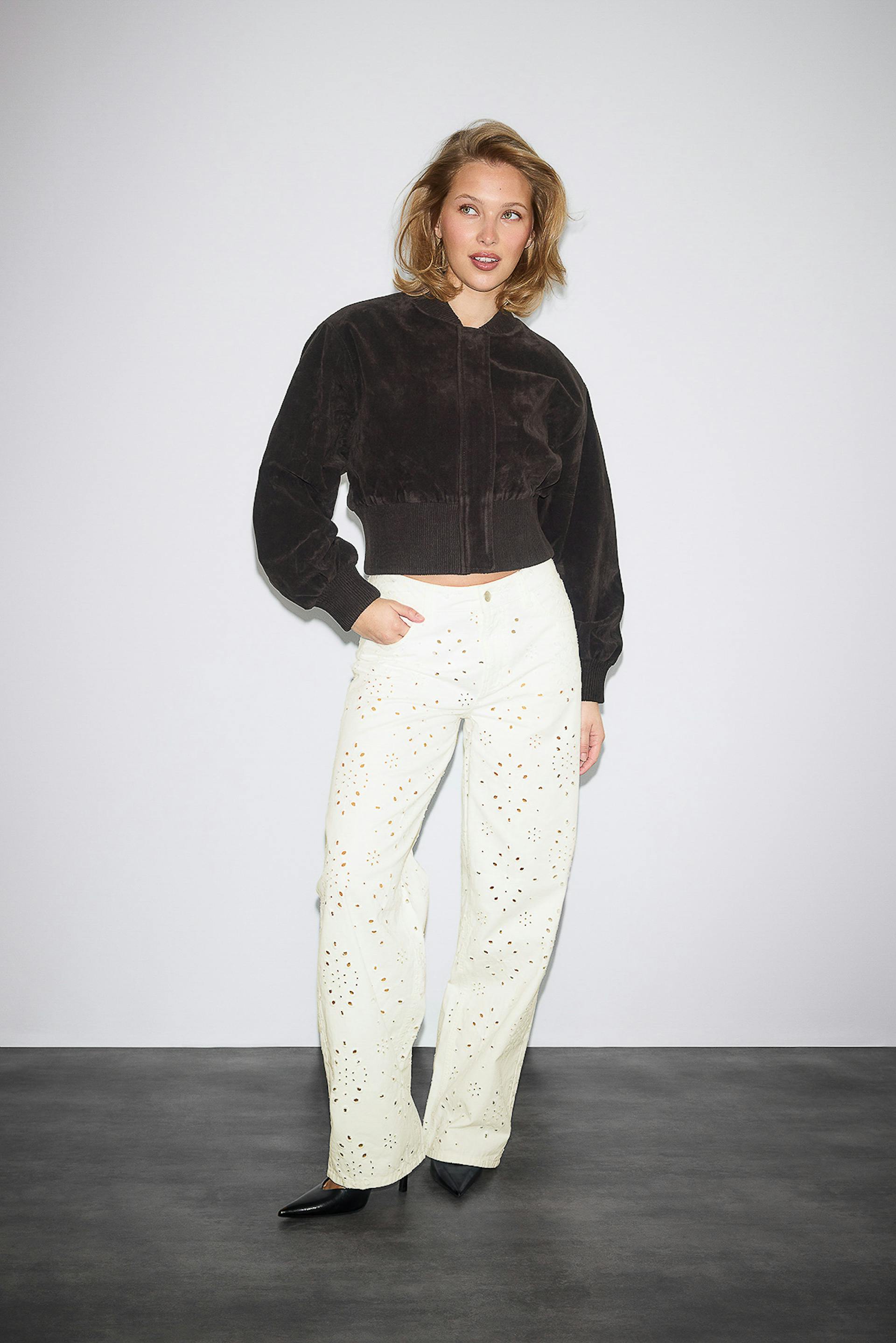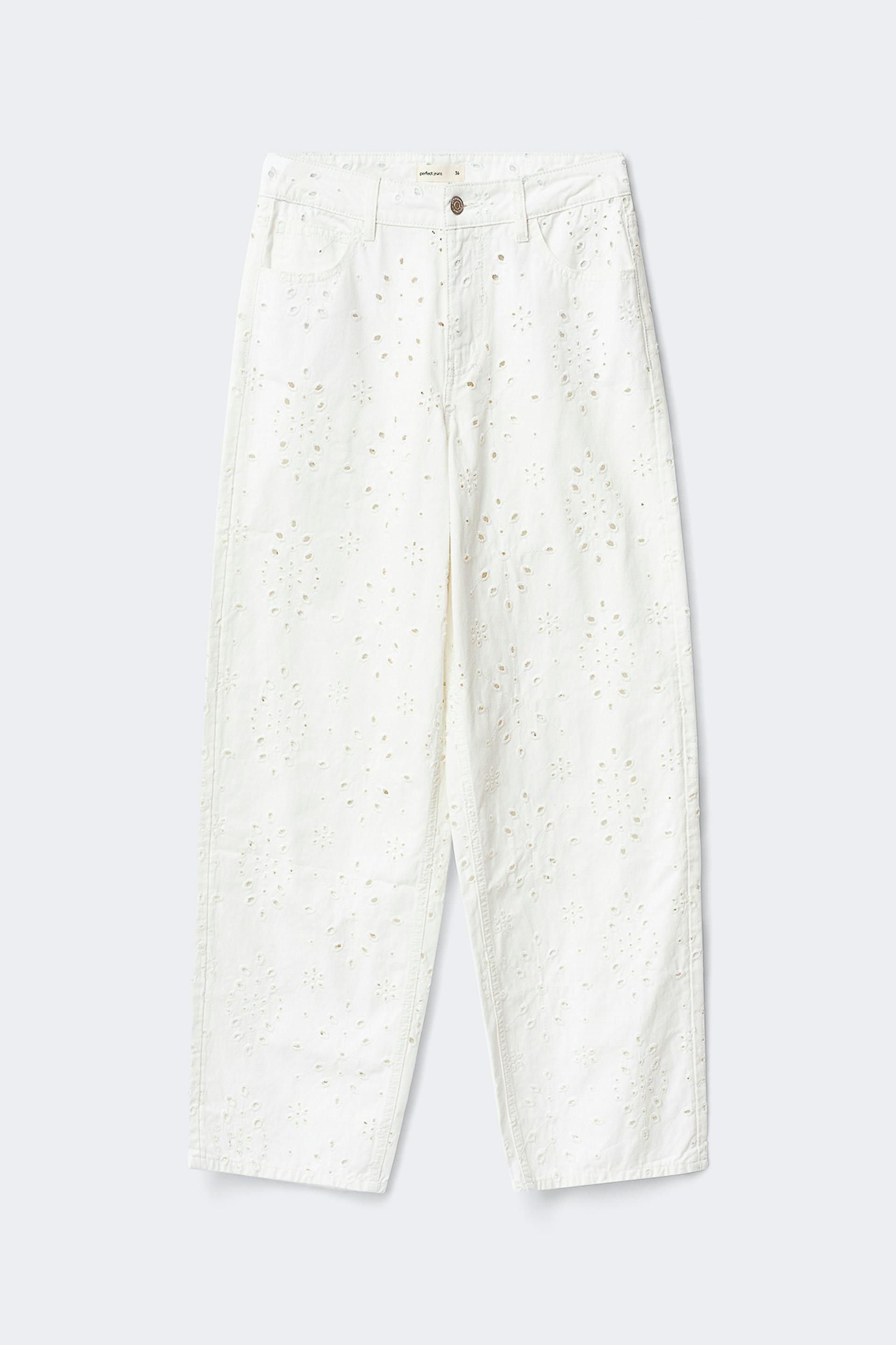 Broderie denim jeans