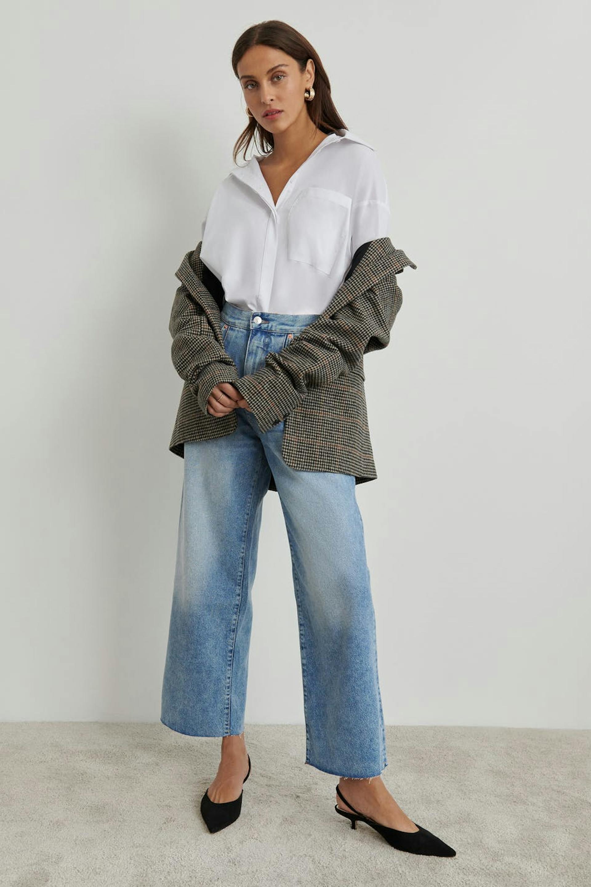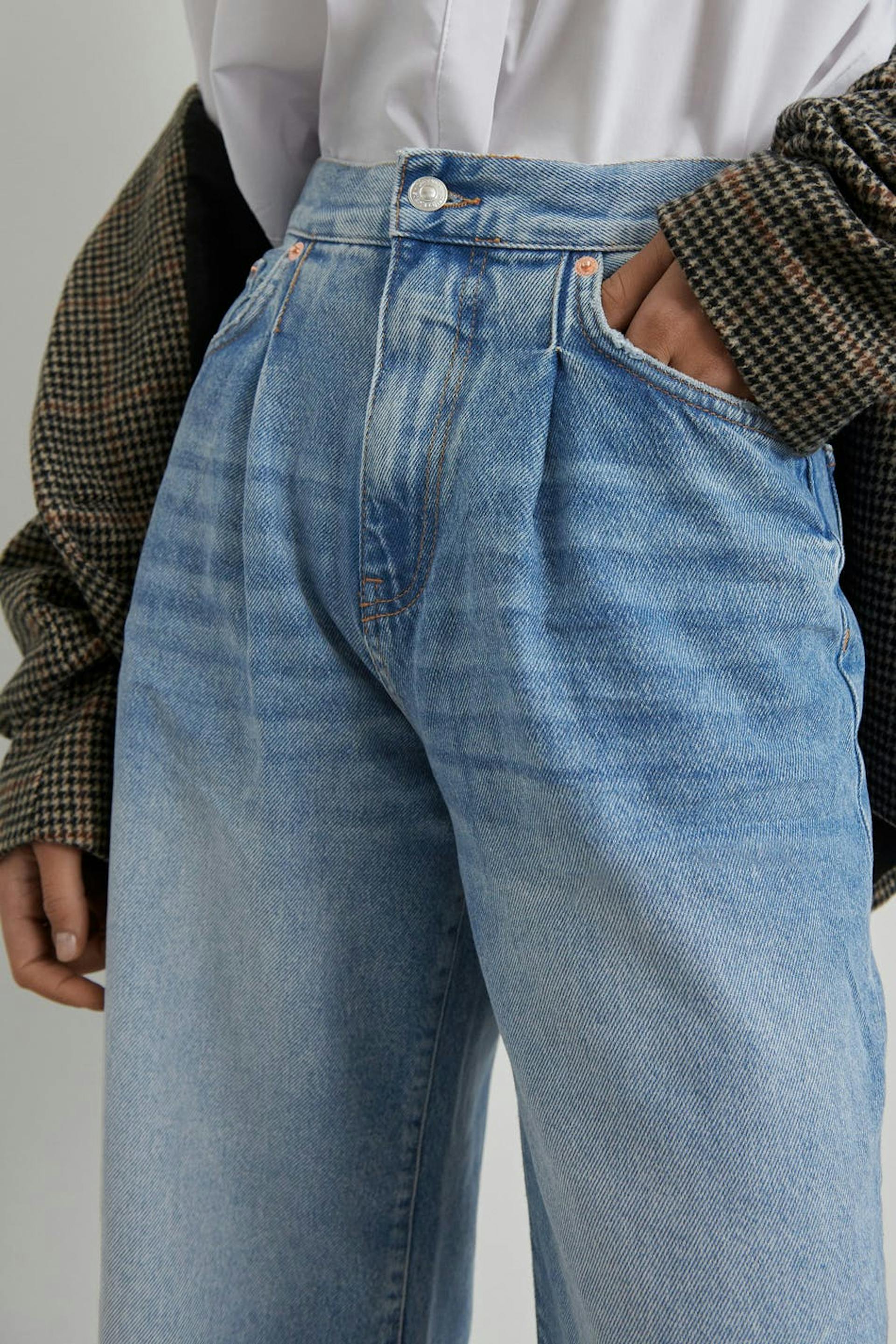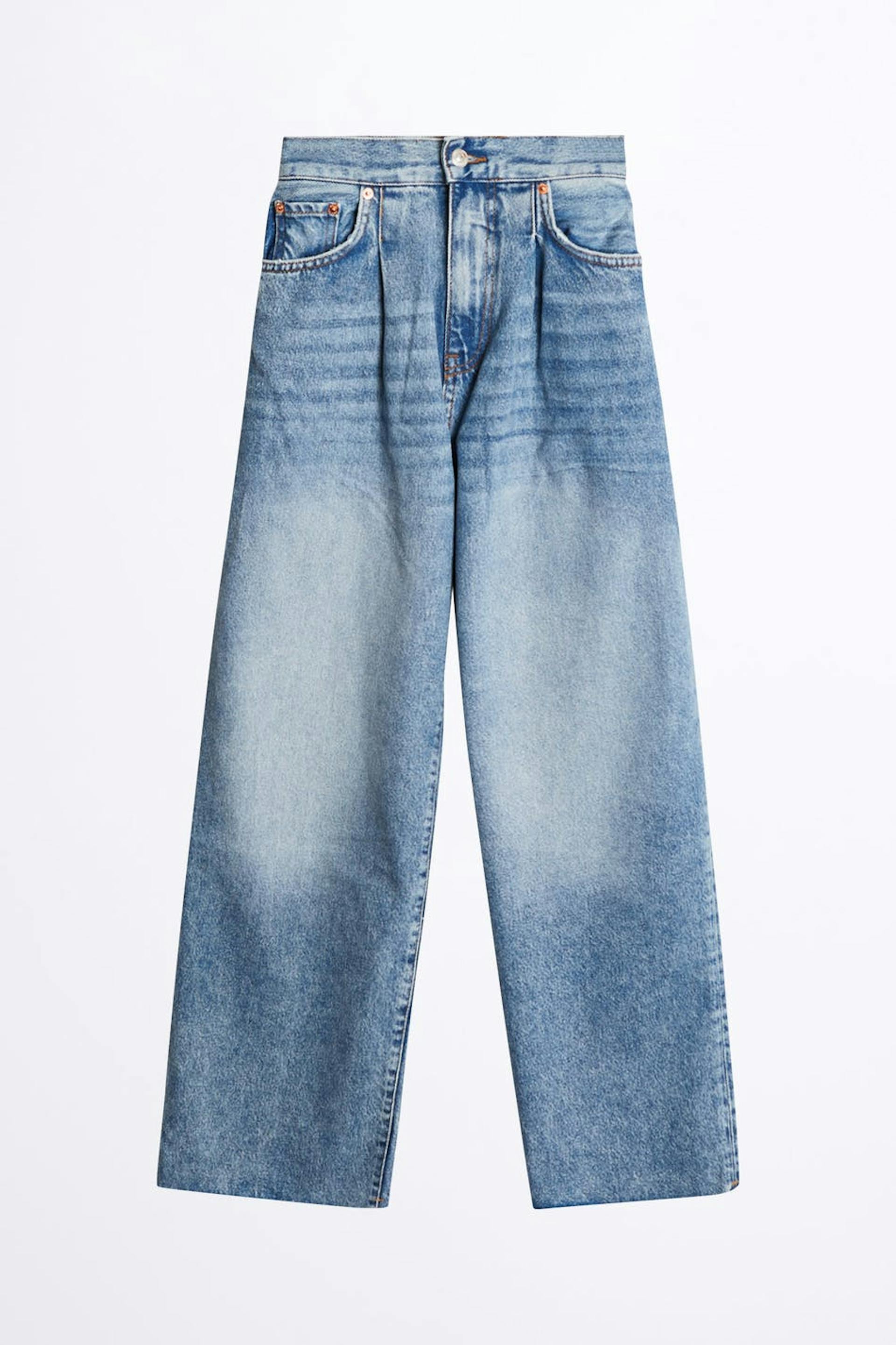 Pleated wide jeans