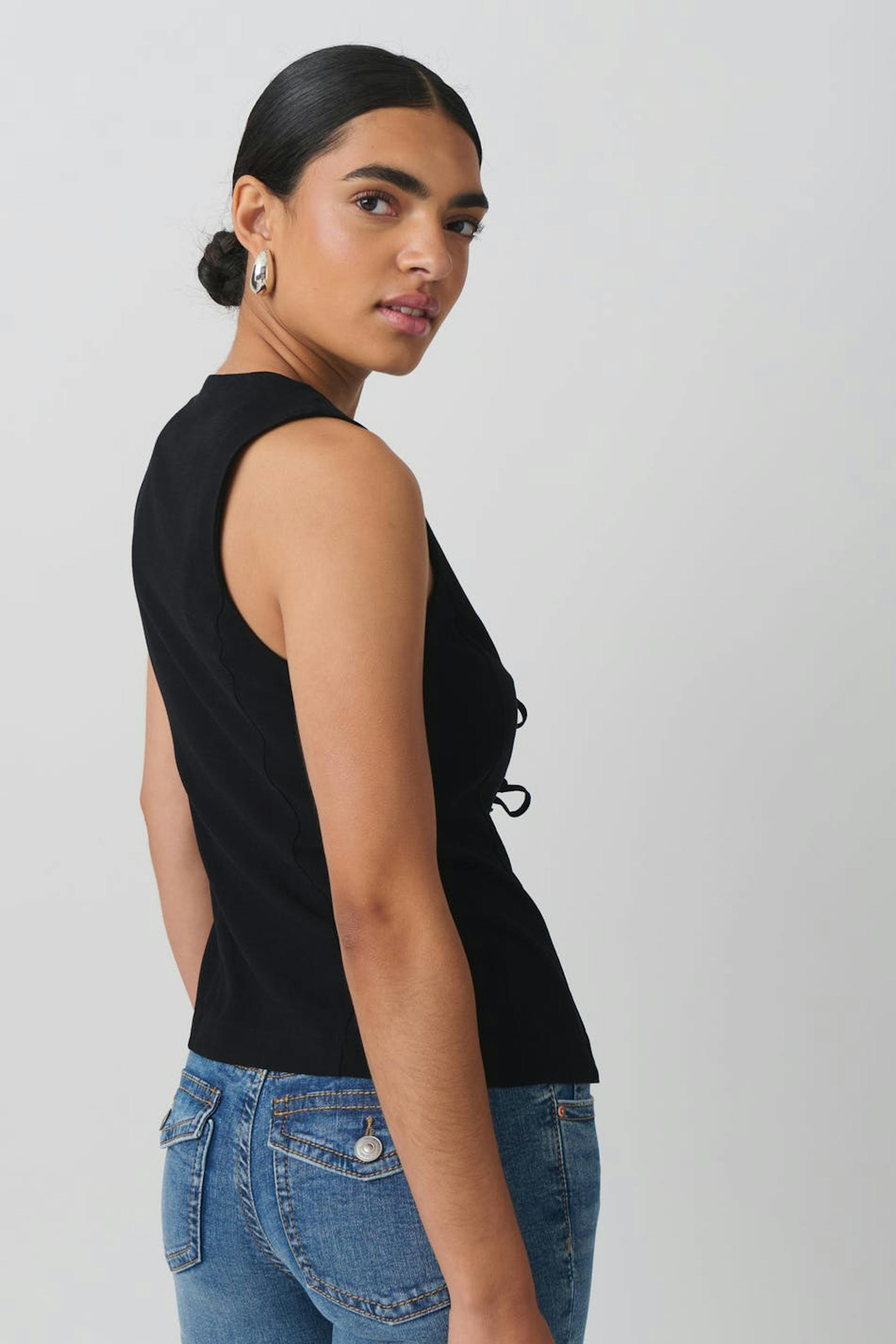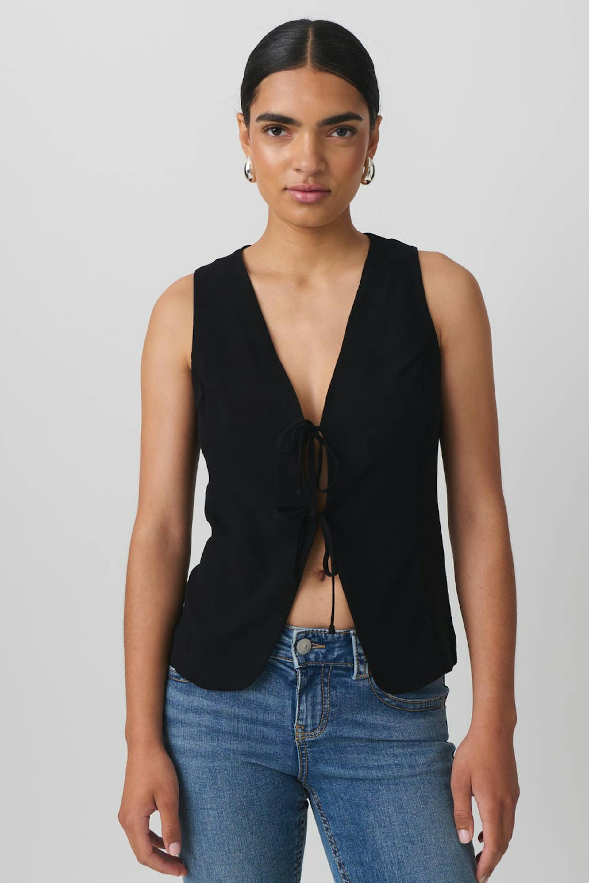 Linen blend tie vest