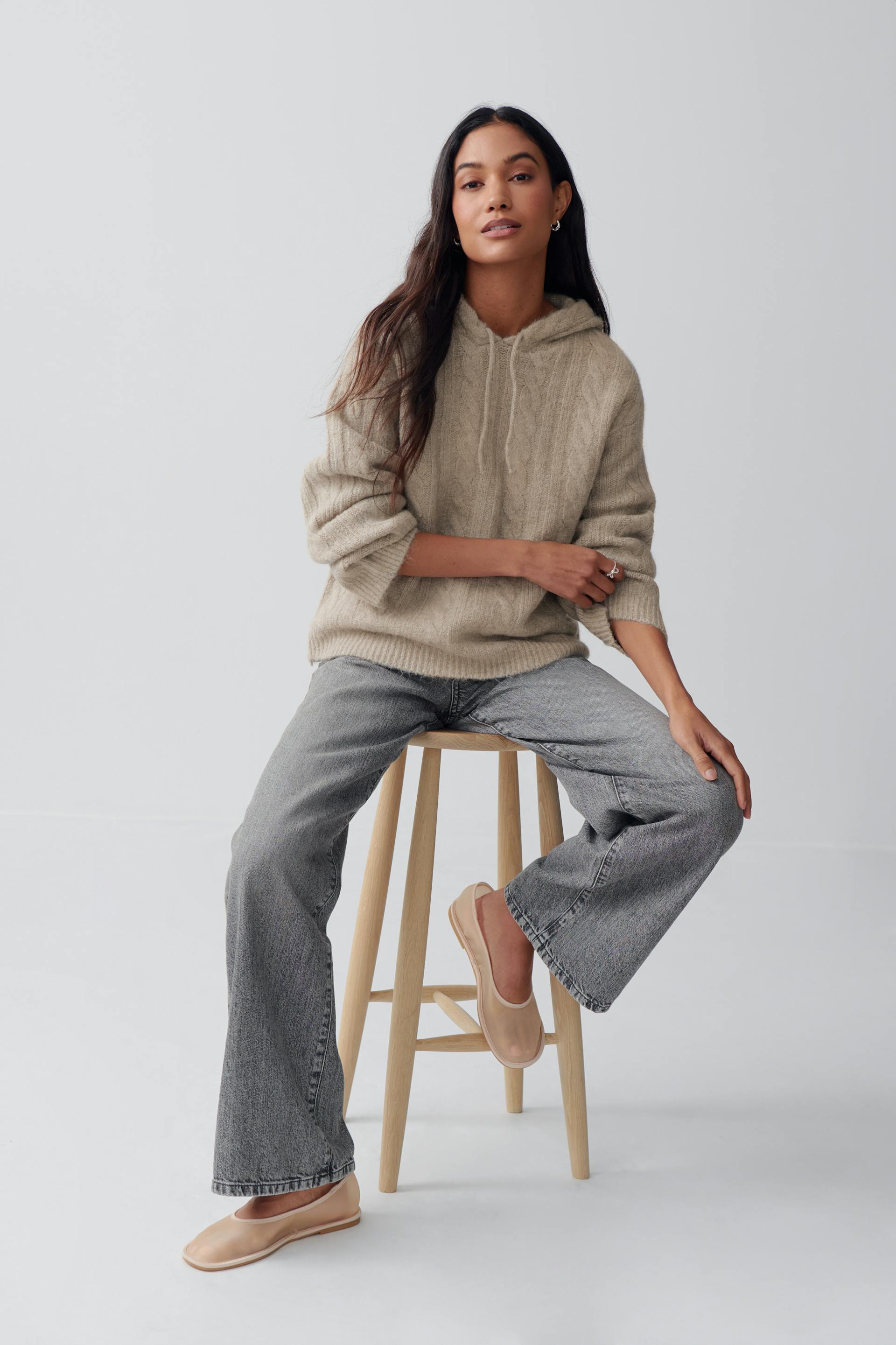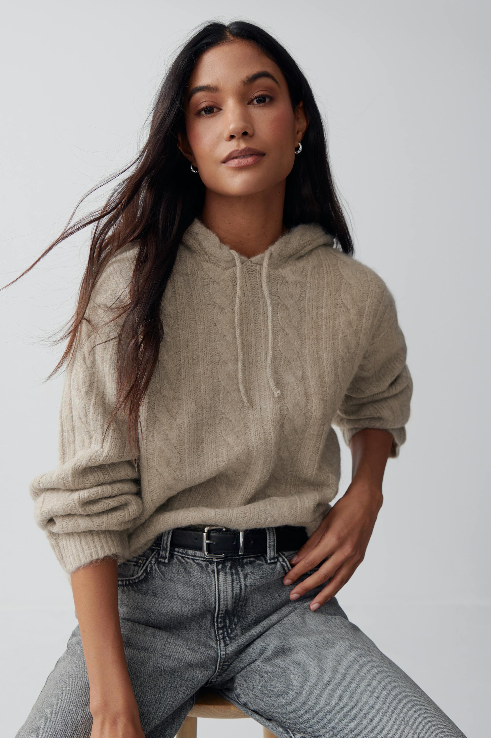 Knitted cable hoodie