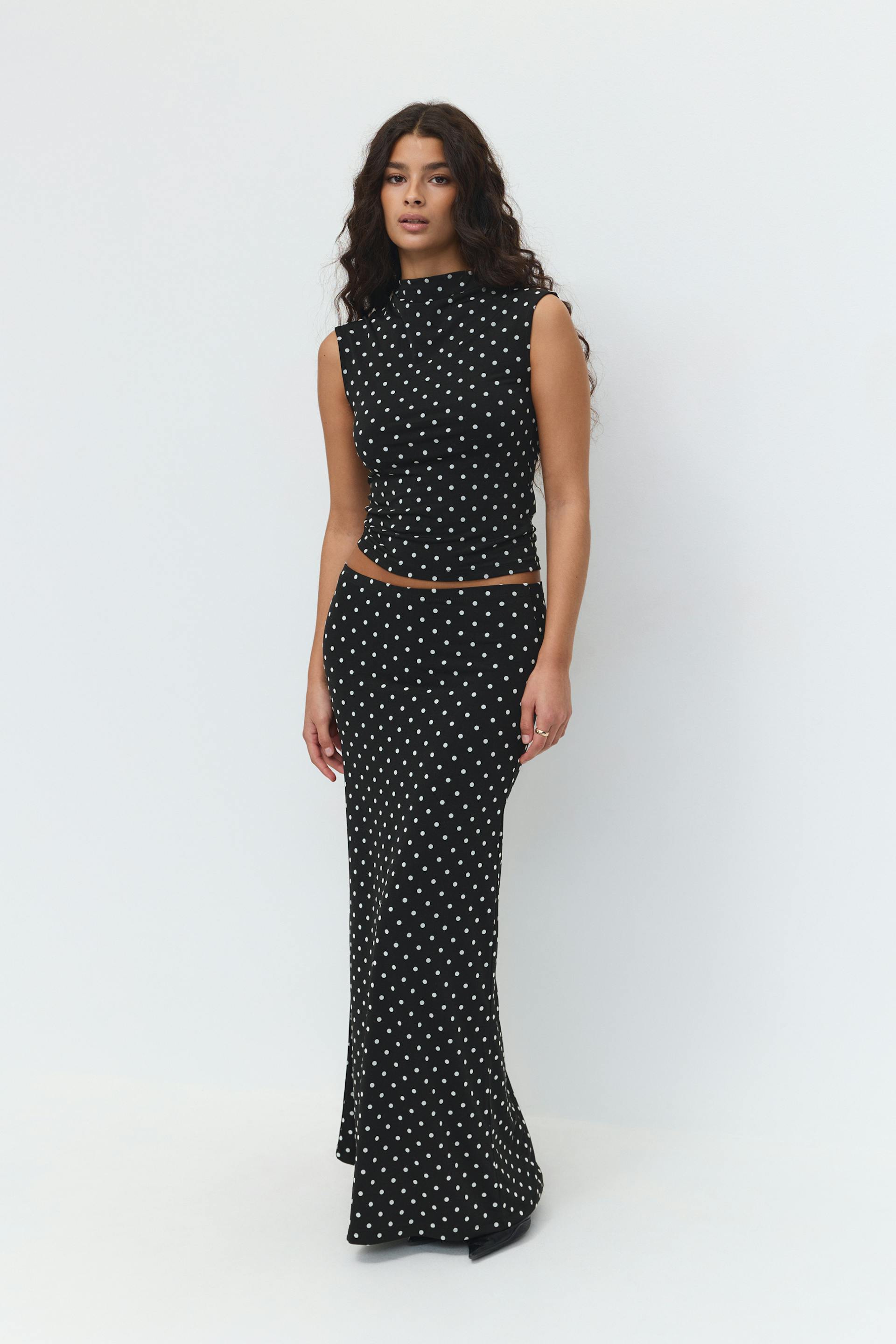 Dot funnel neck top