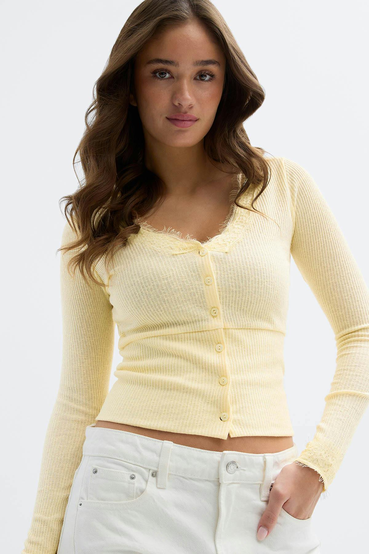 Lace detail button top