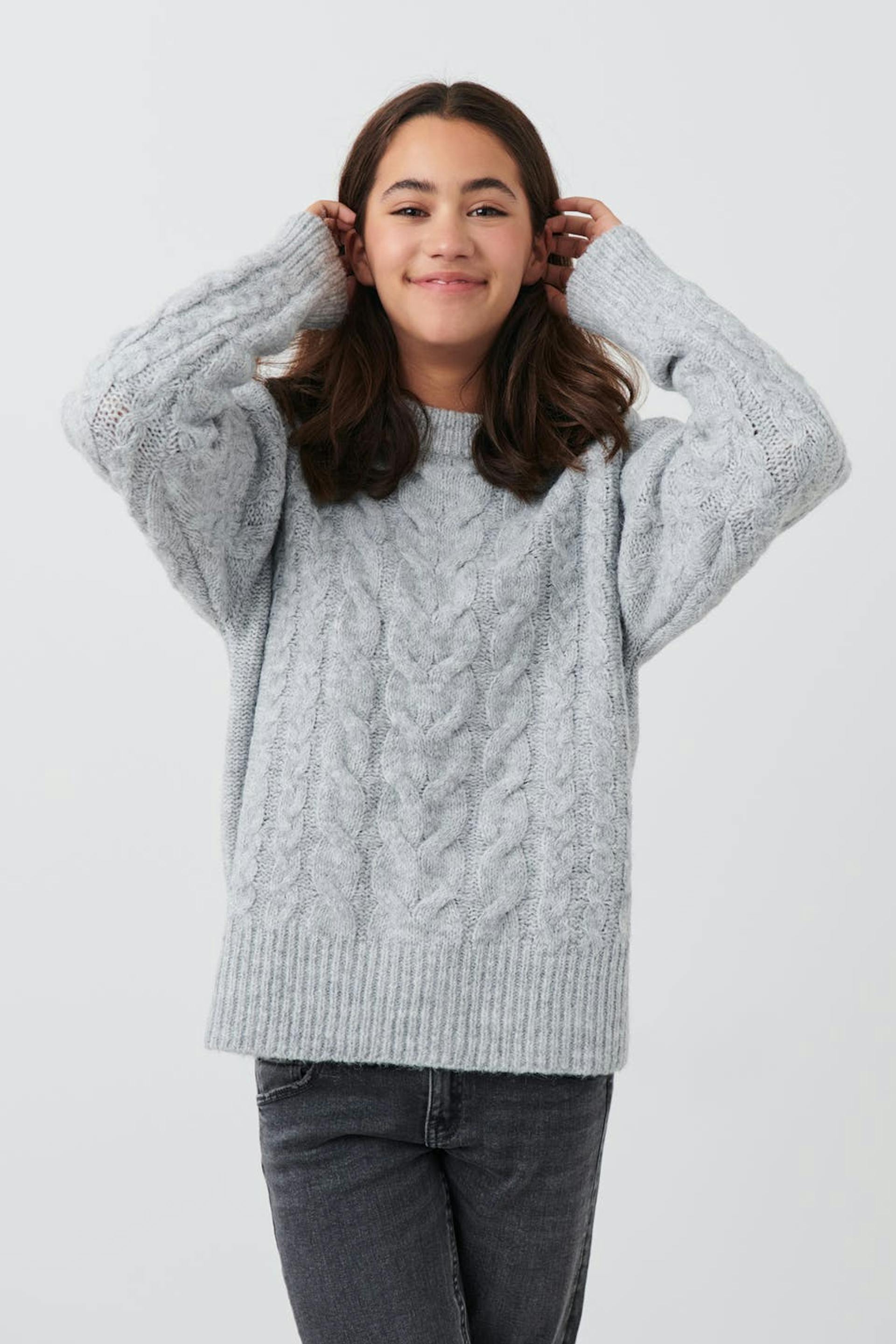 Y knitted cable sweater