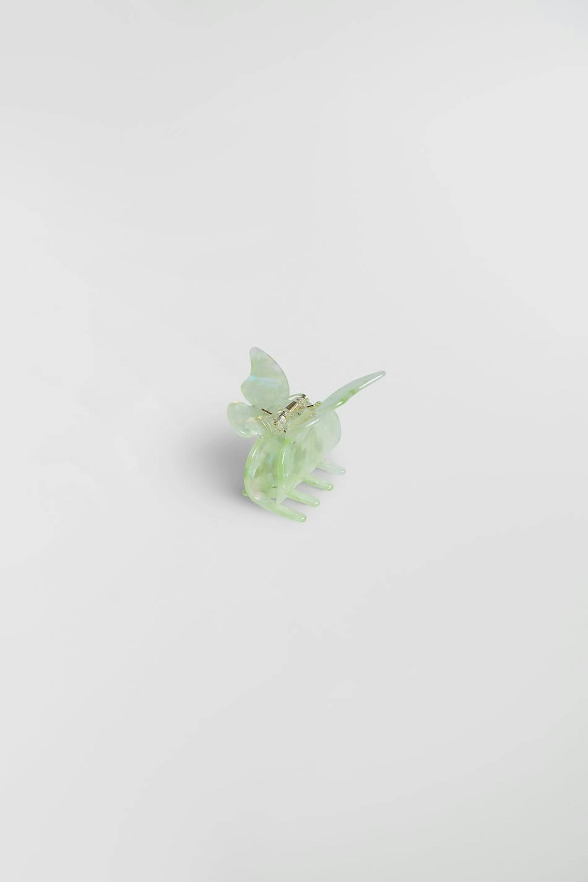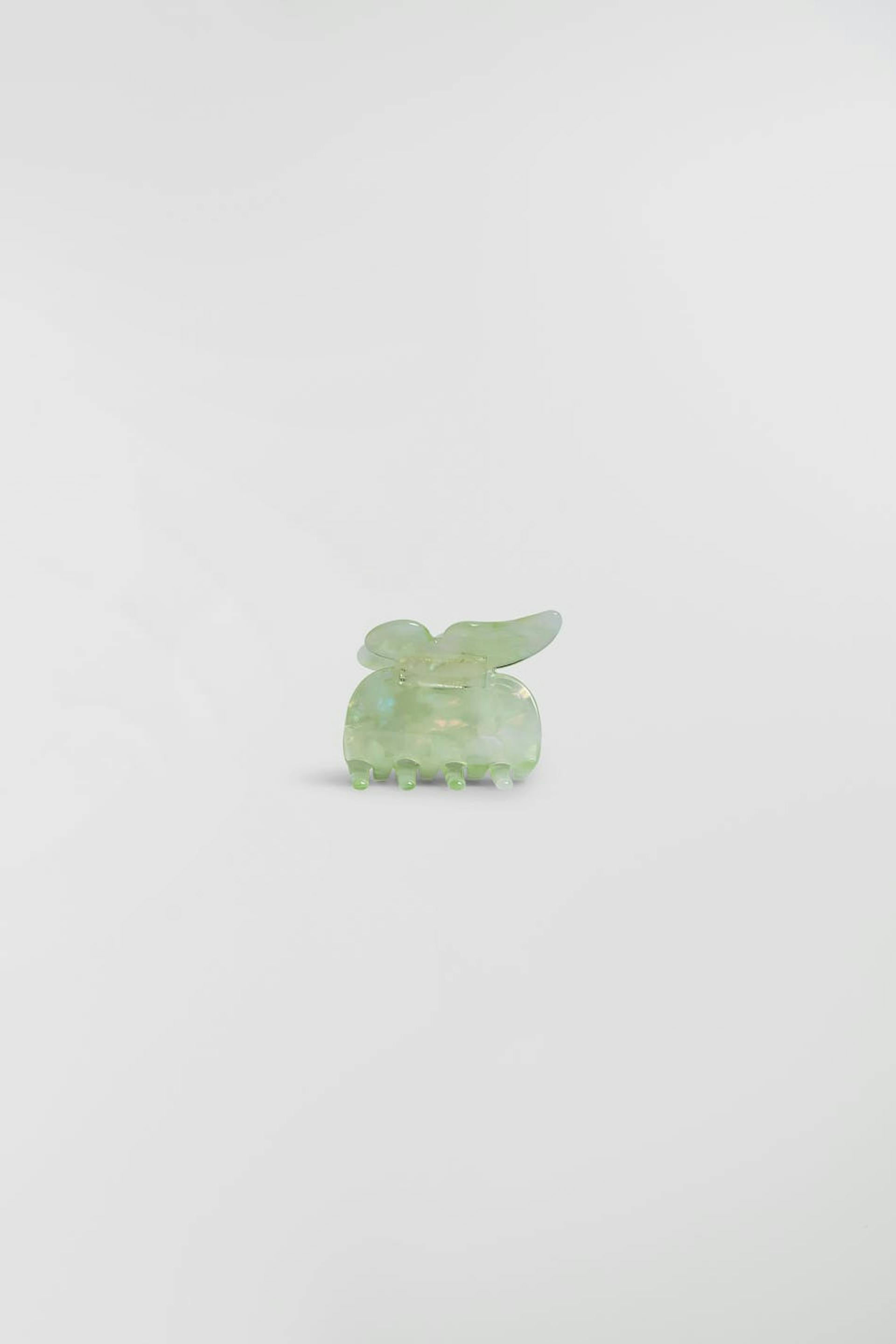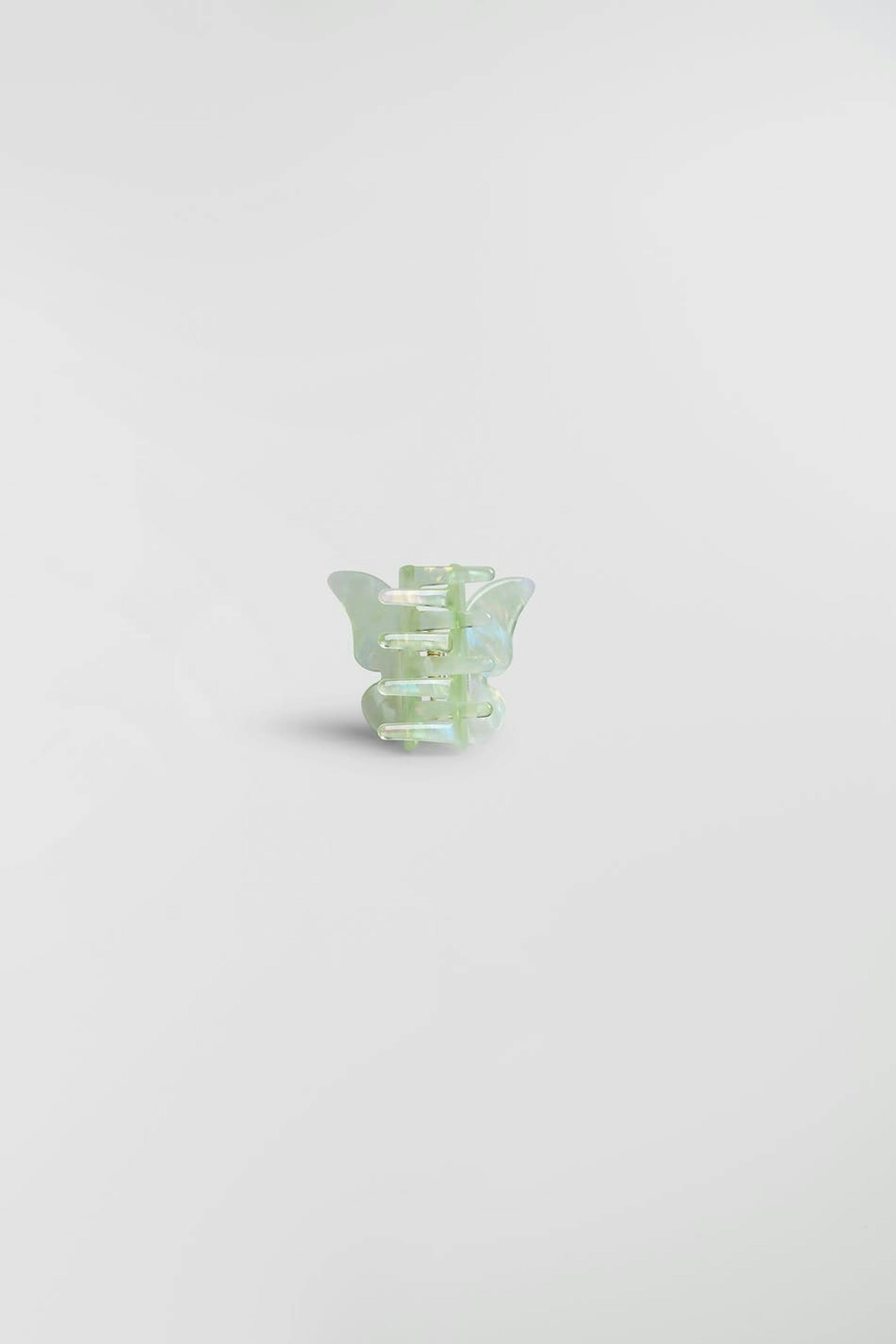Haarspeld met een vlindervormig ontwerp. De accessoire is licht groen.