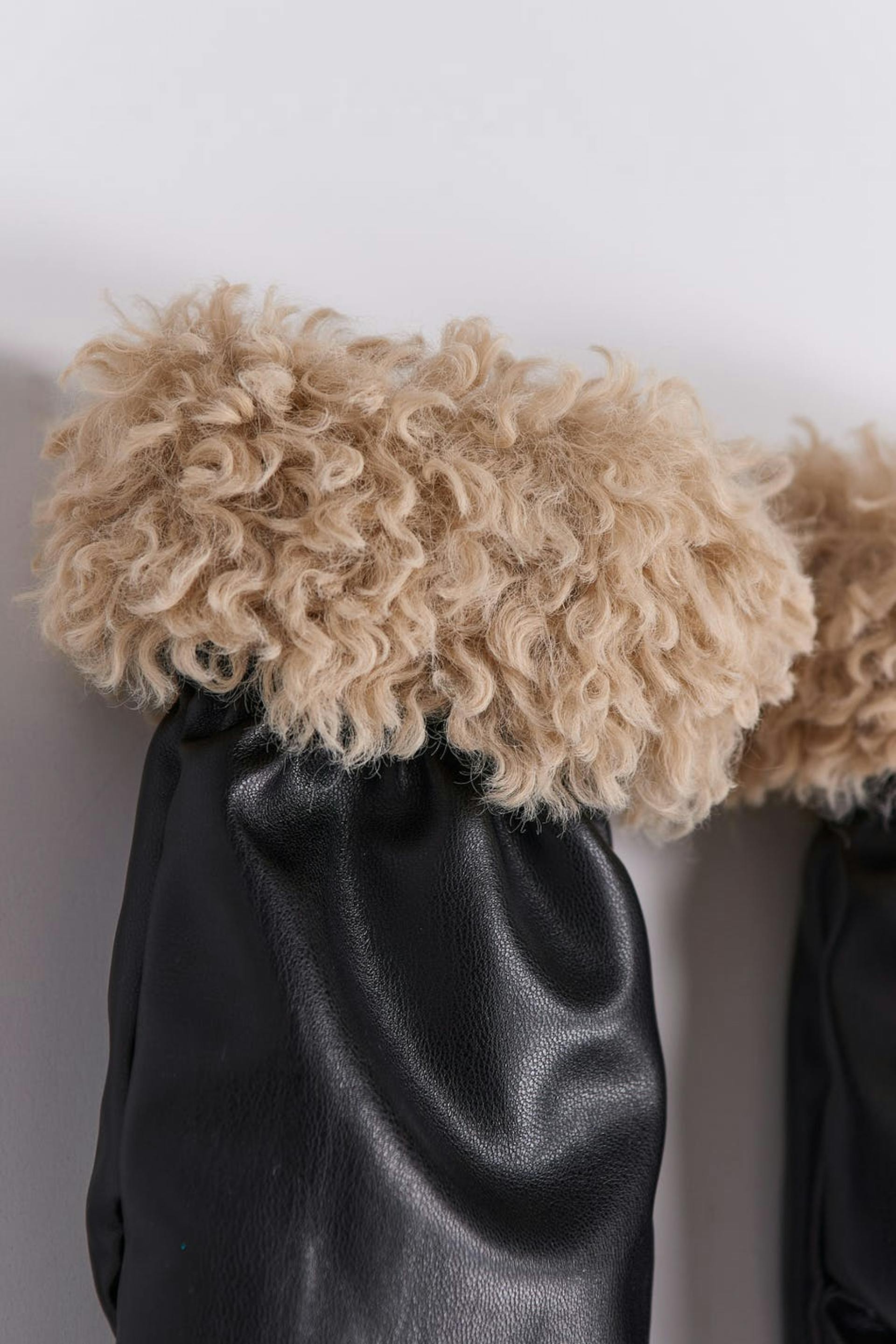 Gevoerde handschoenen van imitatieleer met afwerking van namaakbont.