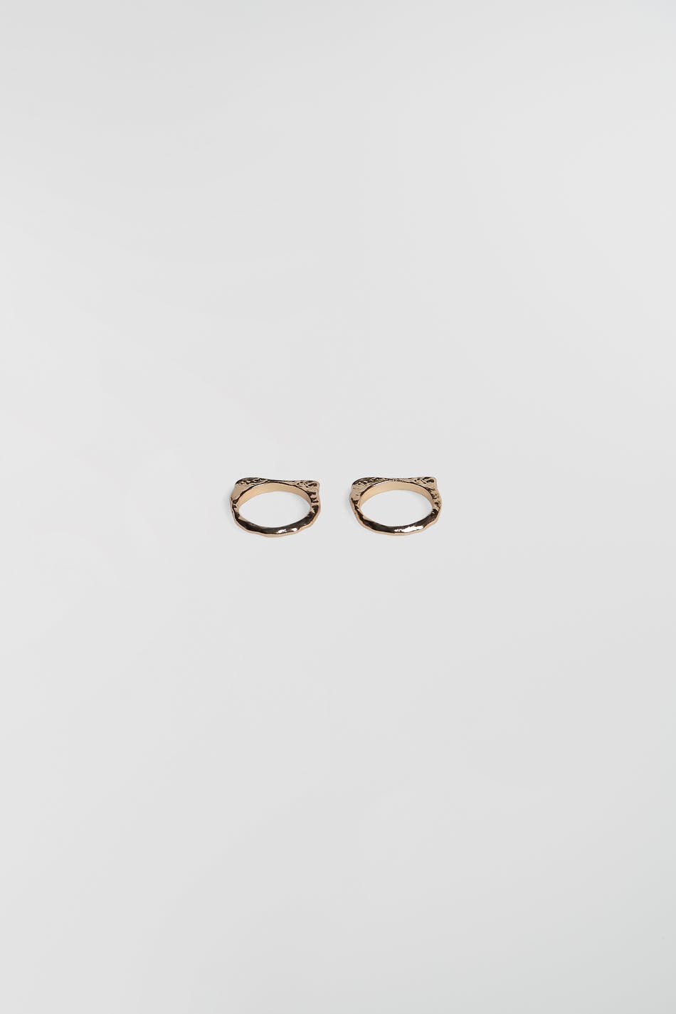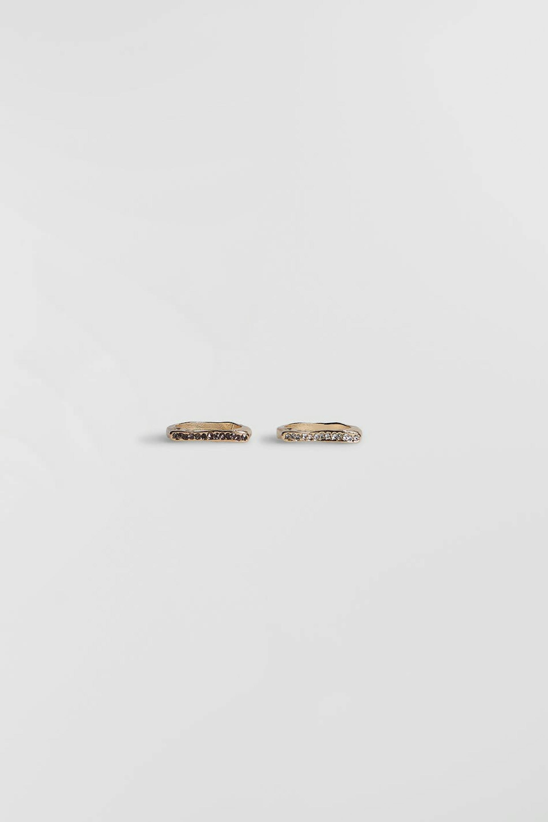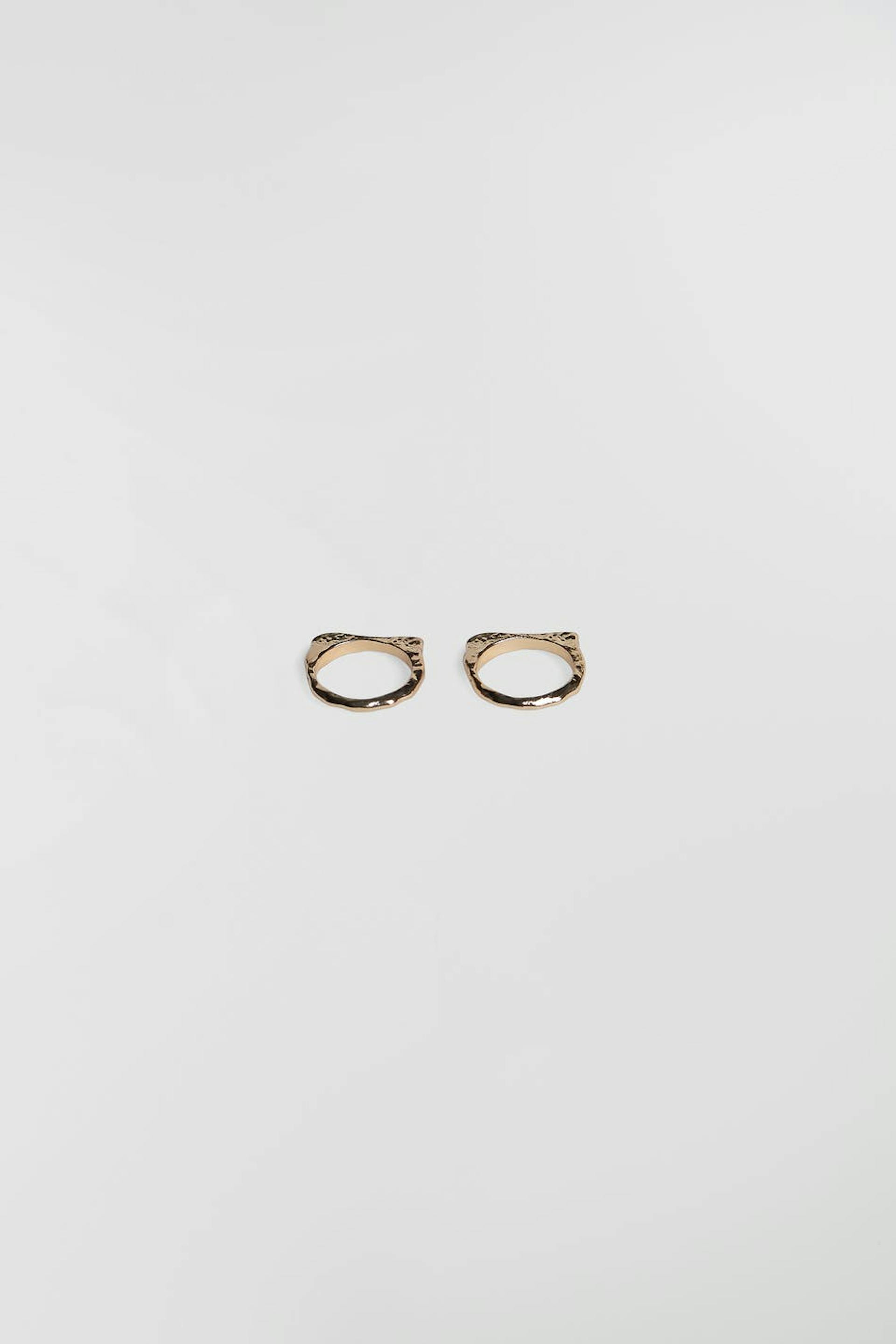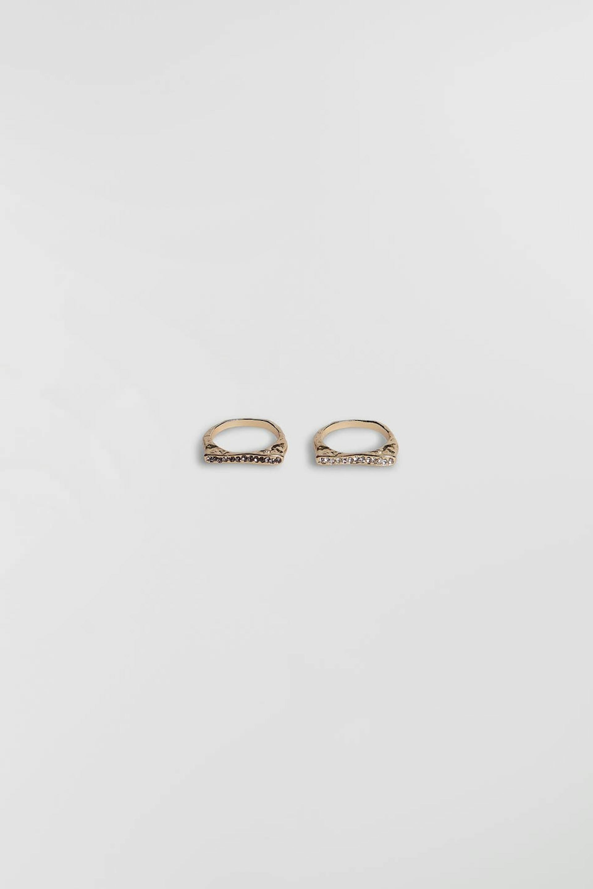 Ringen in een pak van 2 met smalle stenen. De ringen zijn gouden.
