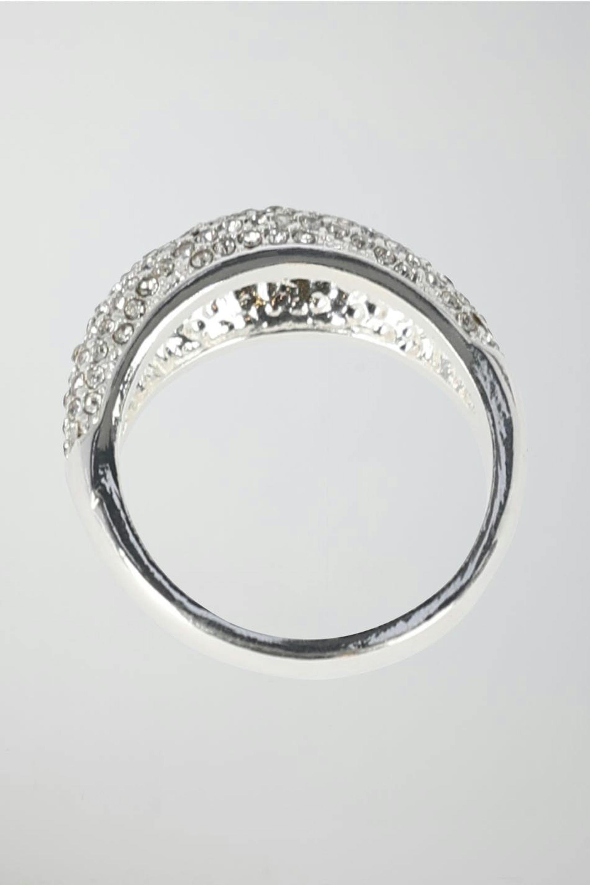 Ring met bergkristallen. De ring is zilverkleurig en heeft chunky pasvorm.