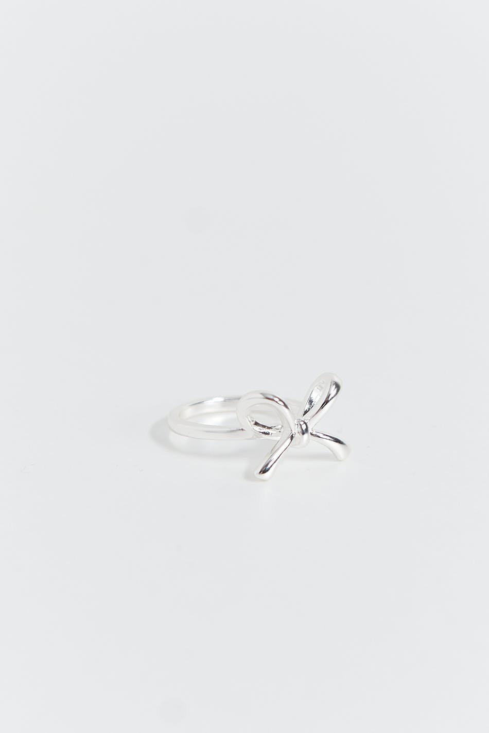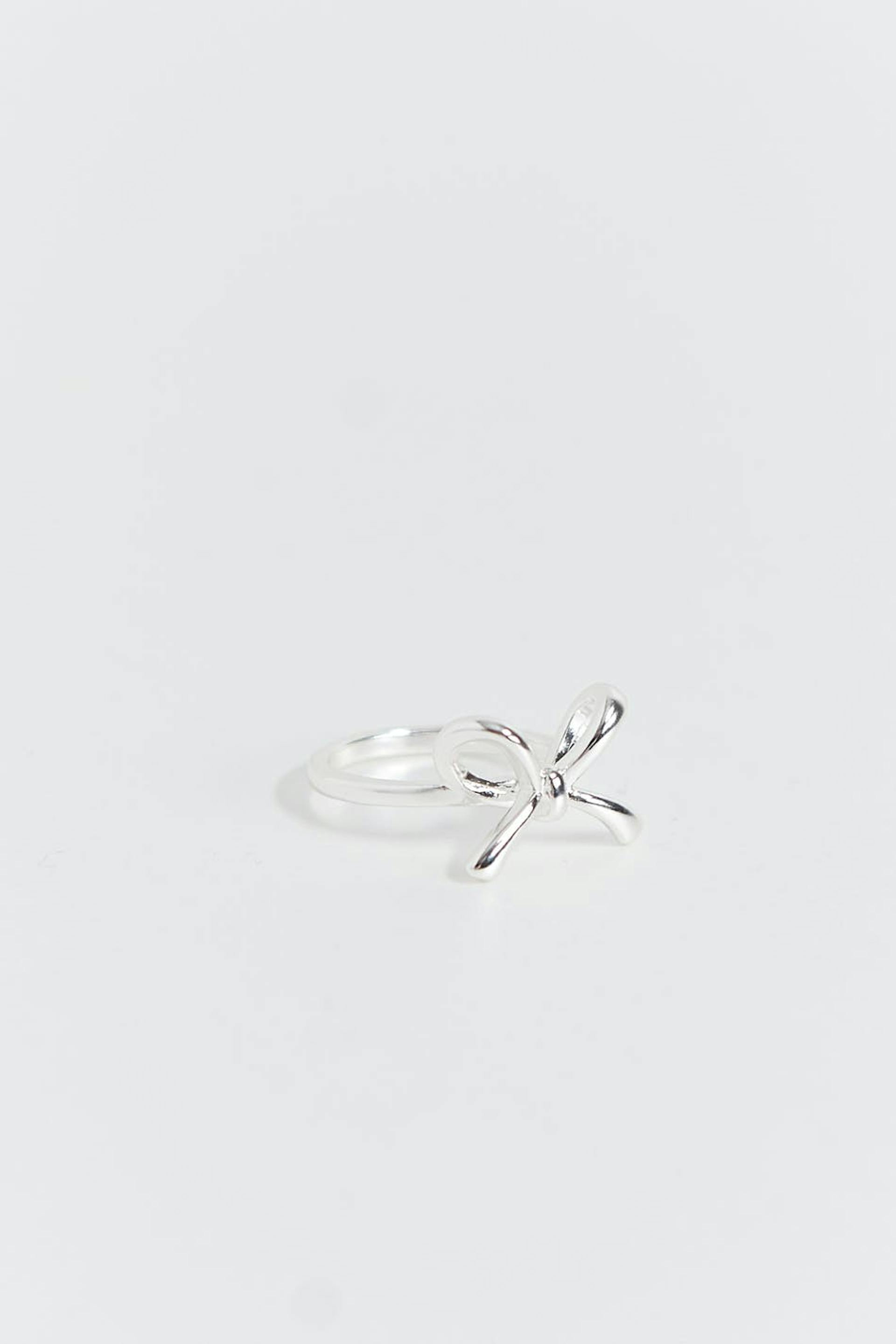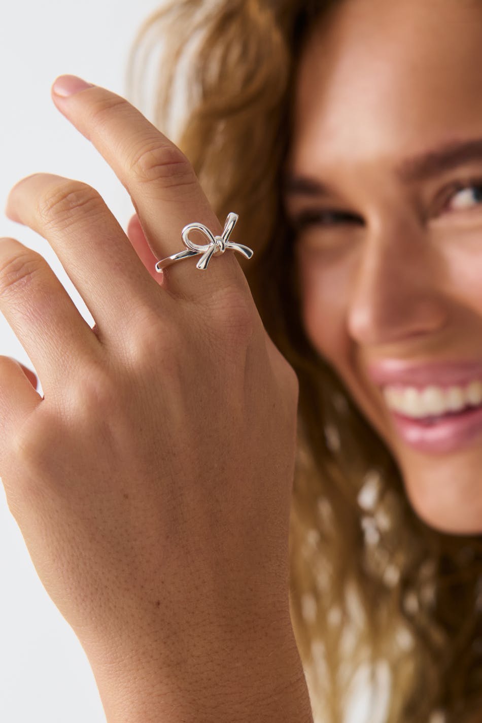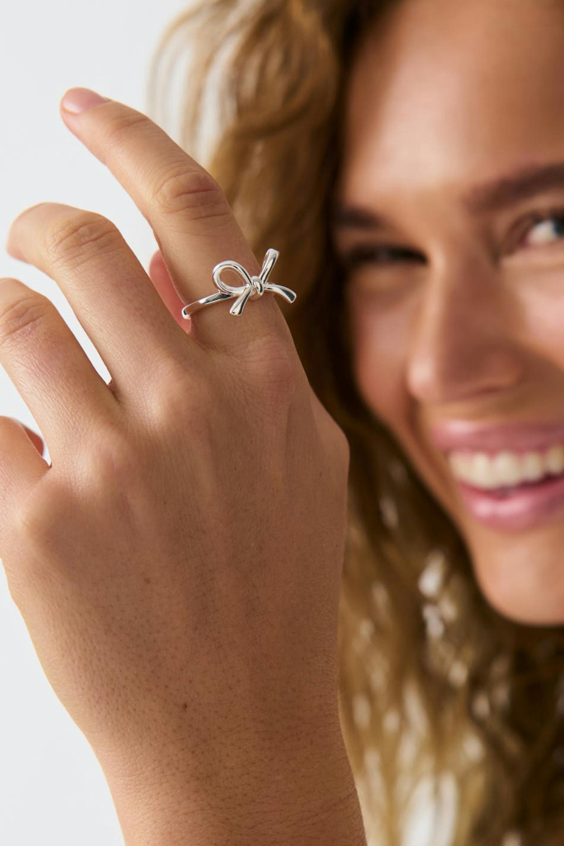 Keurige ring met strik. De ring is zilverkleurig en heeft glimmende finish.