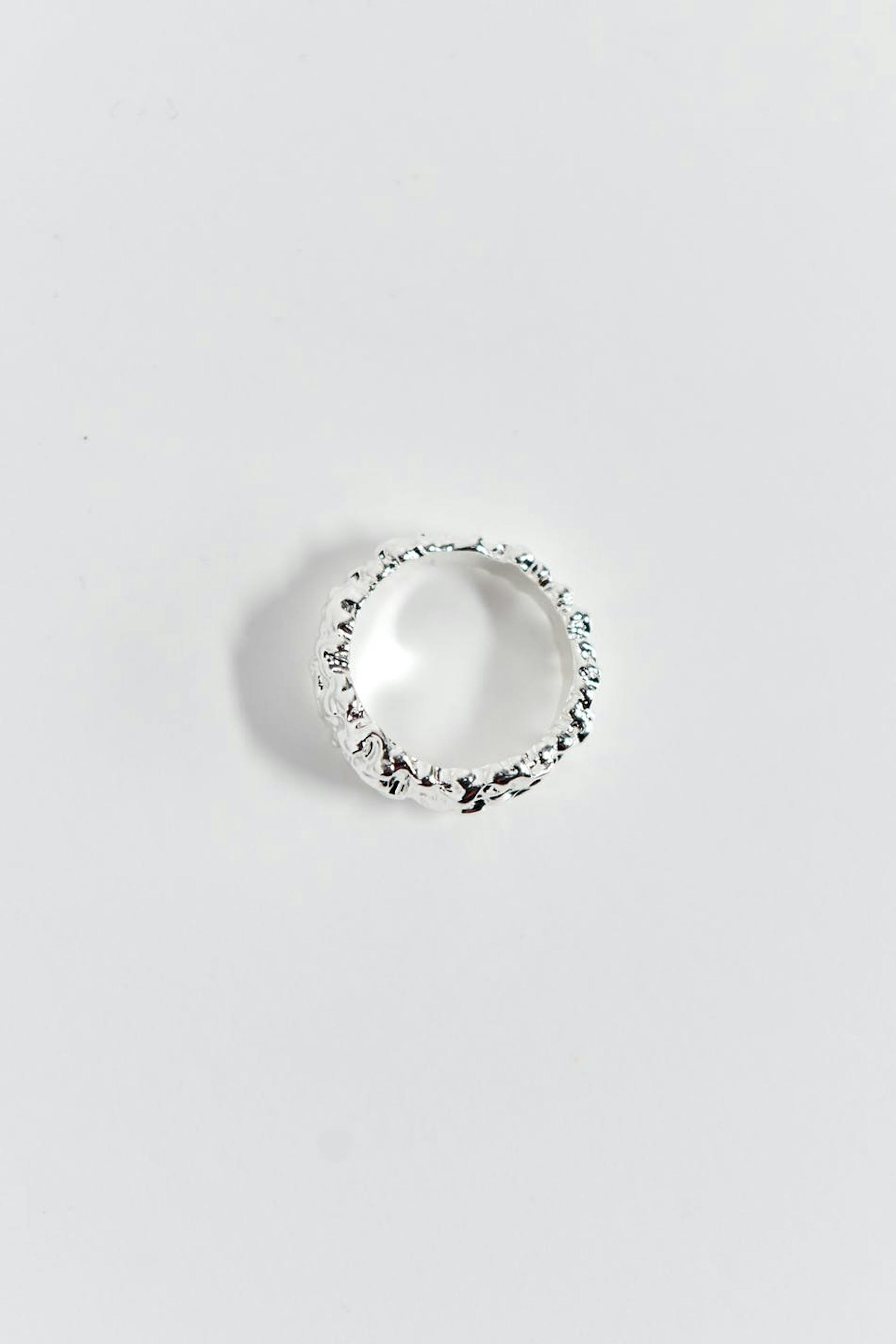 Ring met getextureerde finish. De ring is zilverkleurig.