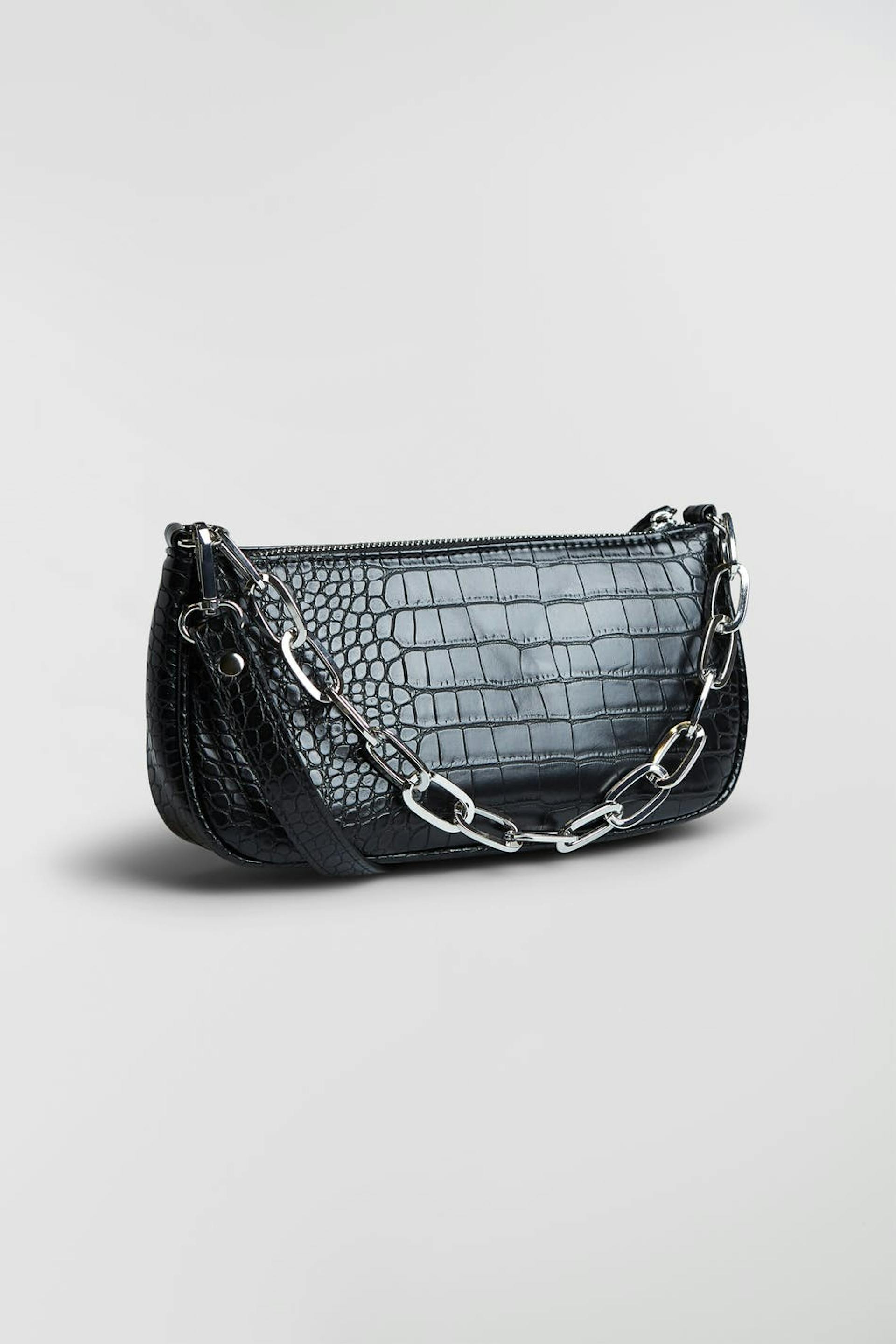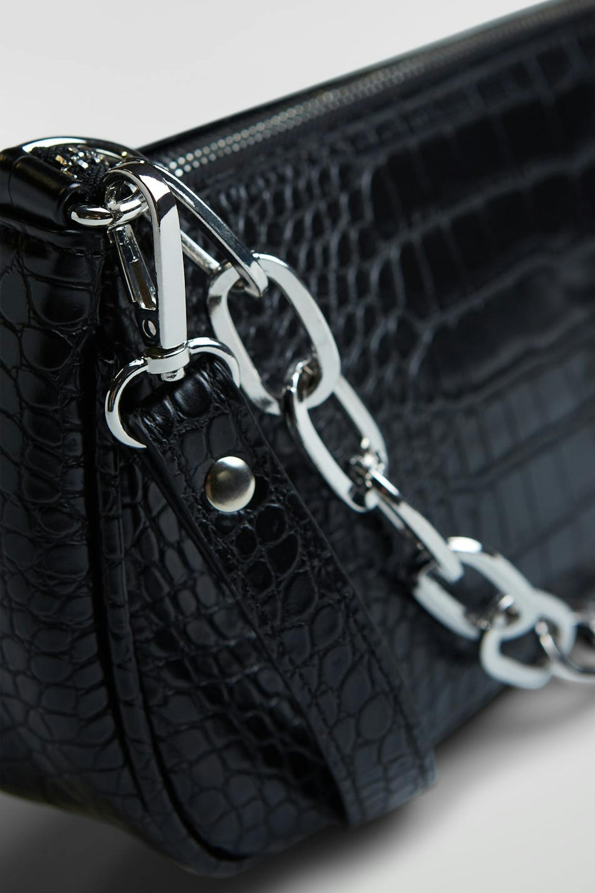 Baguette bag in croco - with short strap and chain detail at front