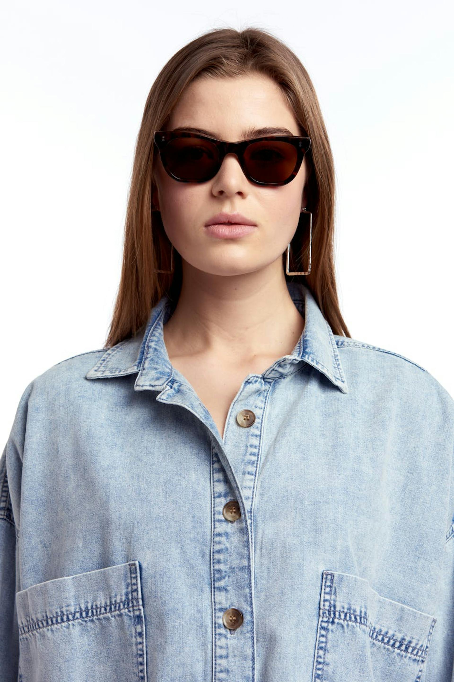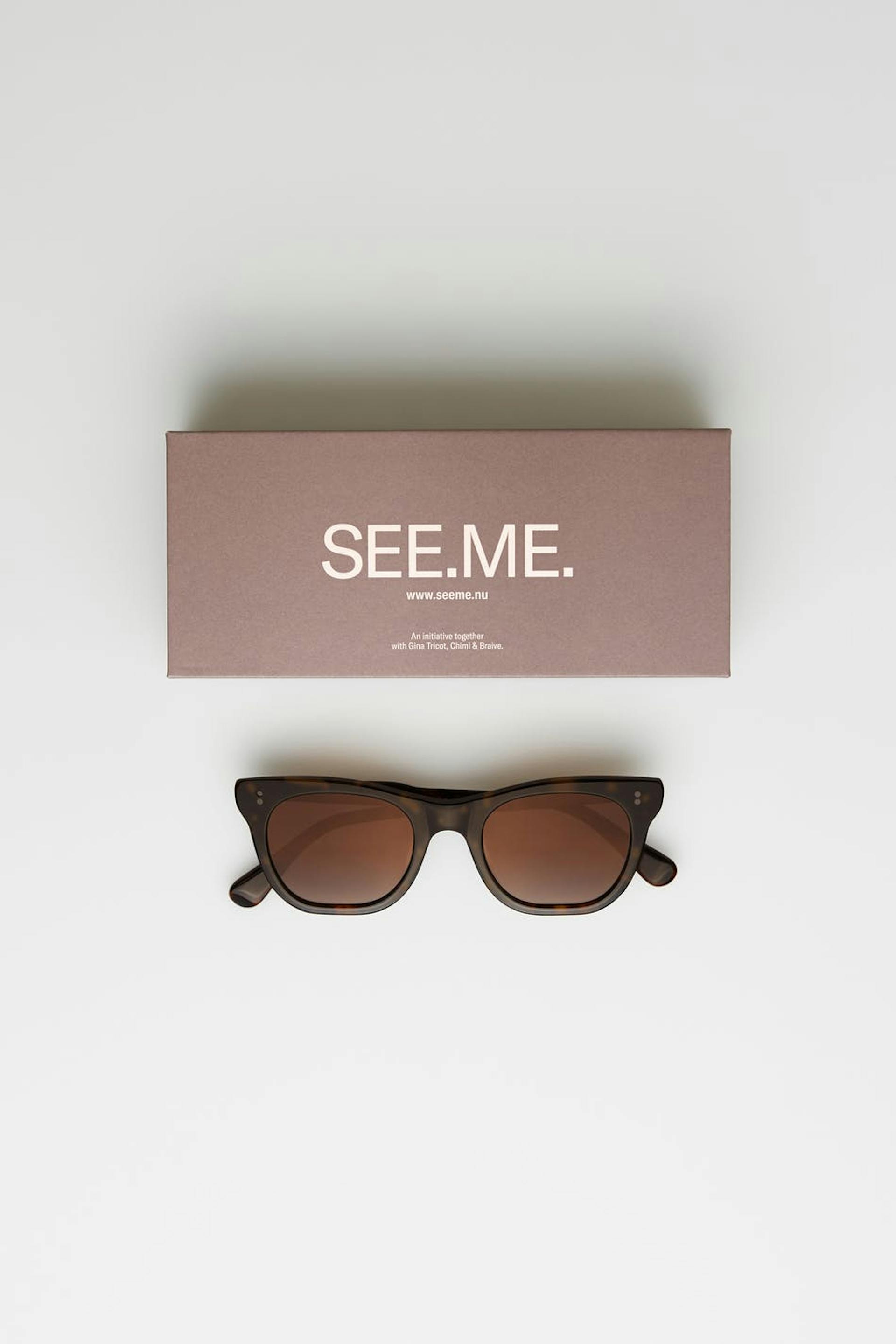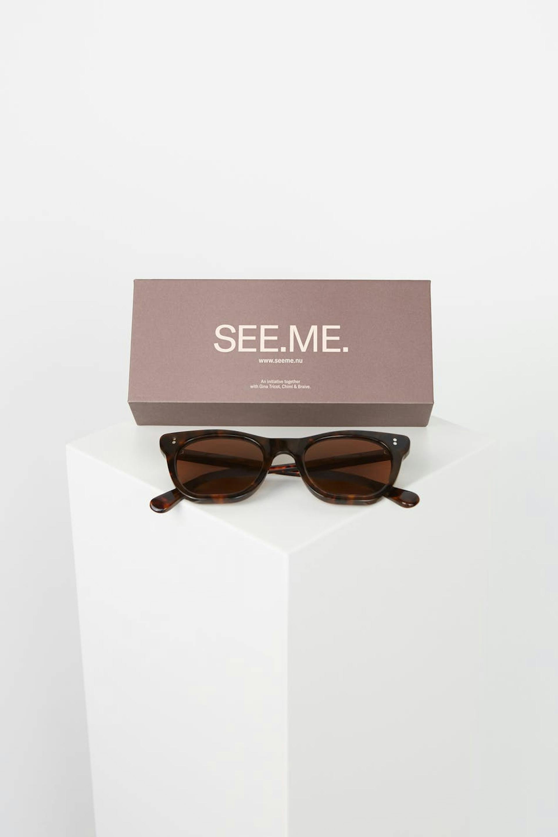 Chimi X Gina tricot. Zonnebrillen in samenwerking met Chimi & Braive. Fijne zonnebrillen. De zonnebrillen zijn bruin.