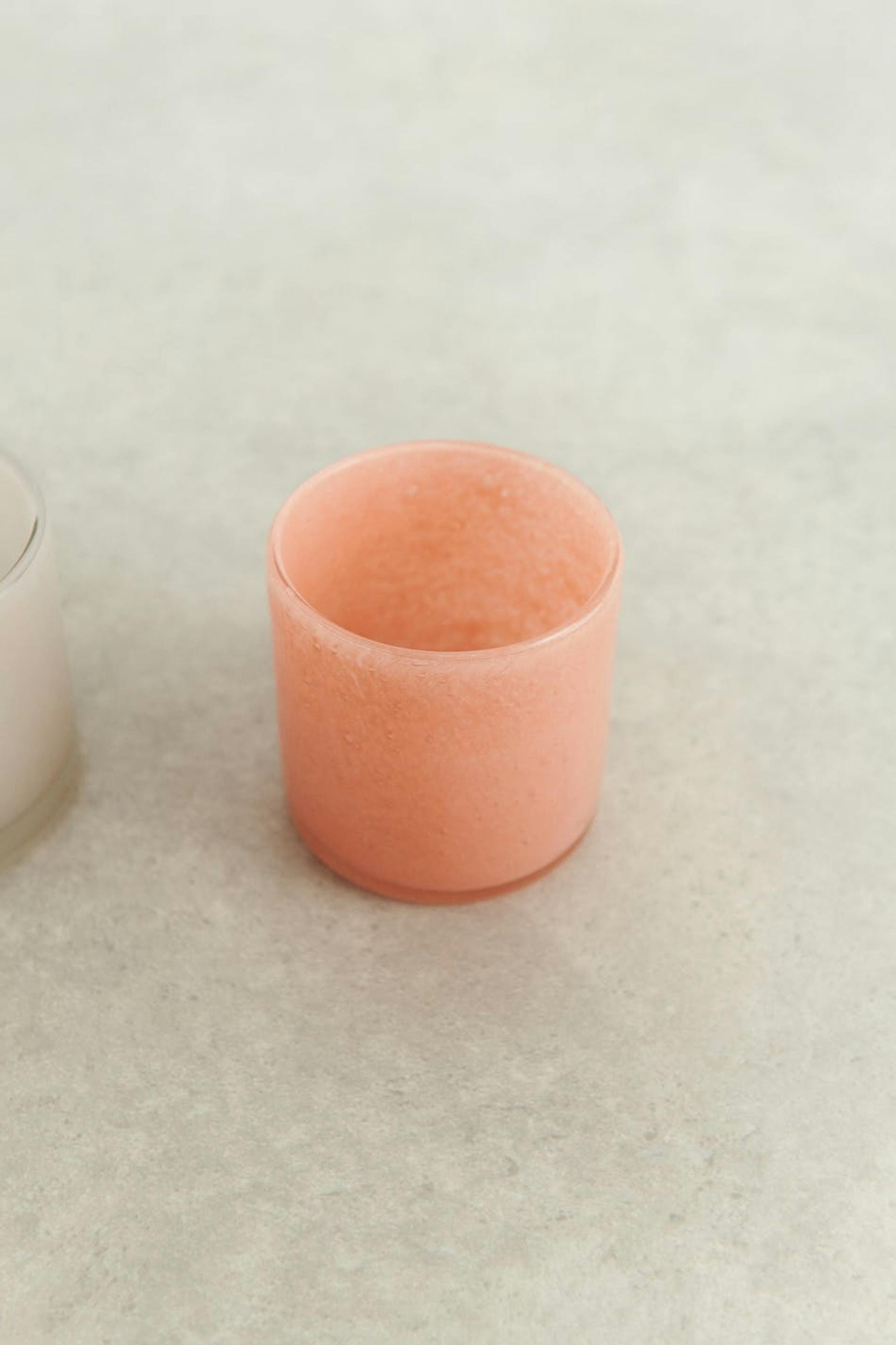 Kaarshouder van Gina Home met gekleurd glas. De kaarshouder is roze.