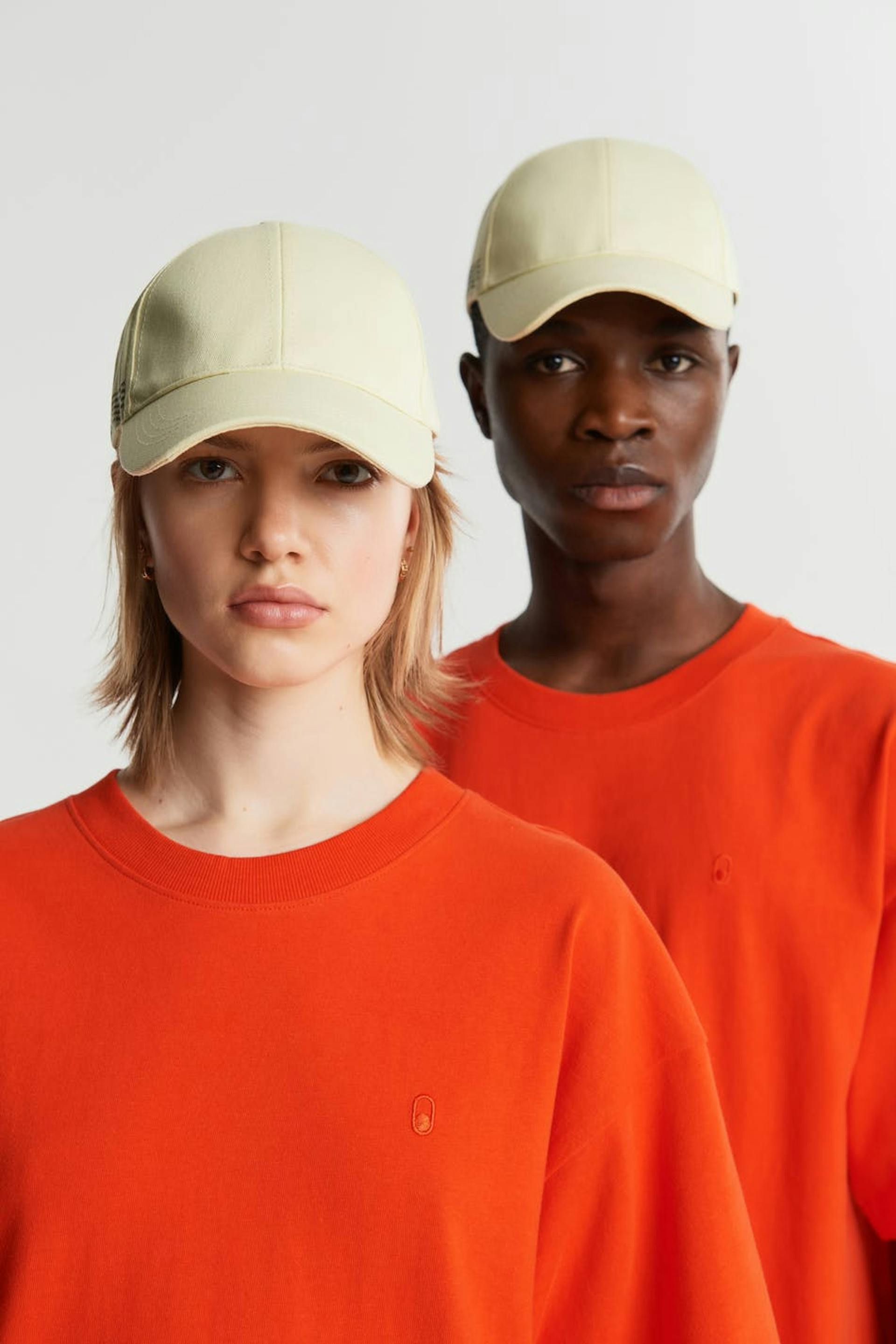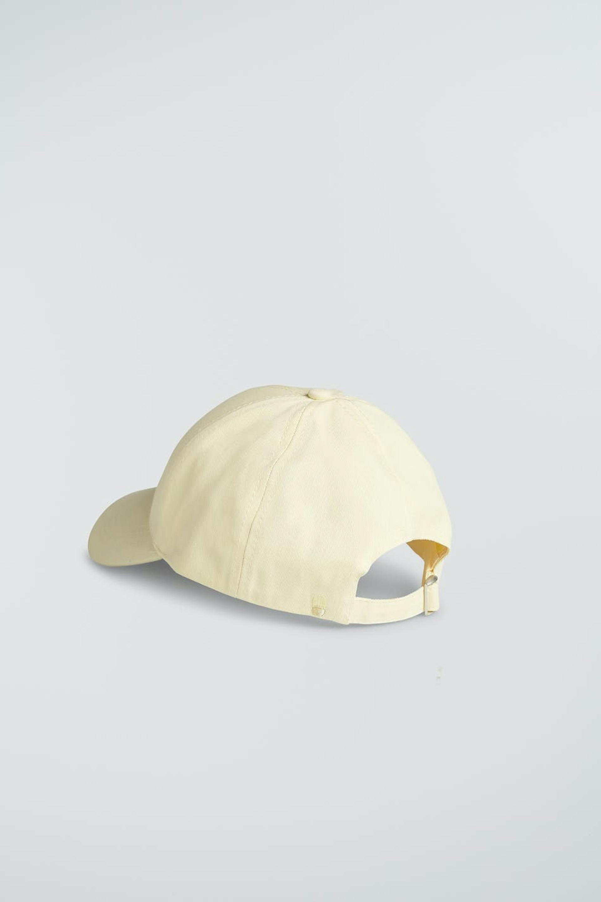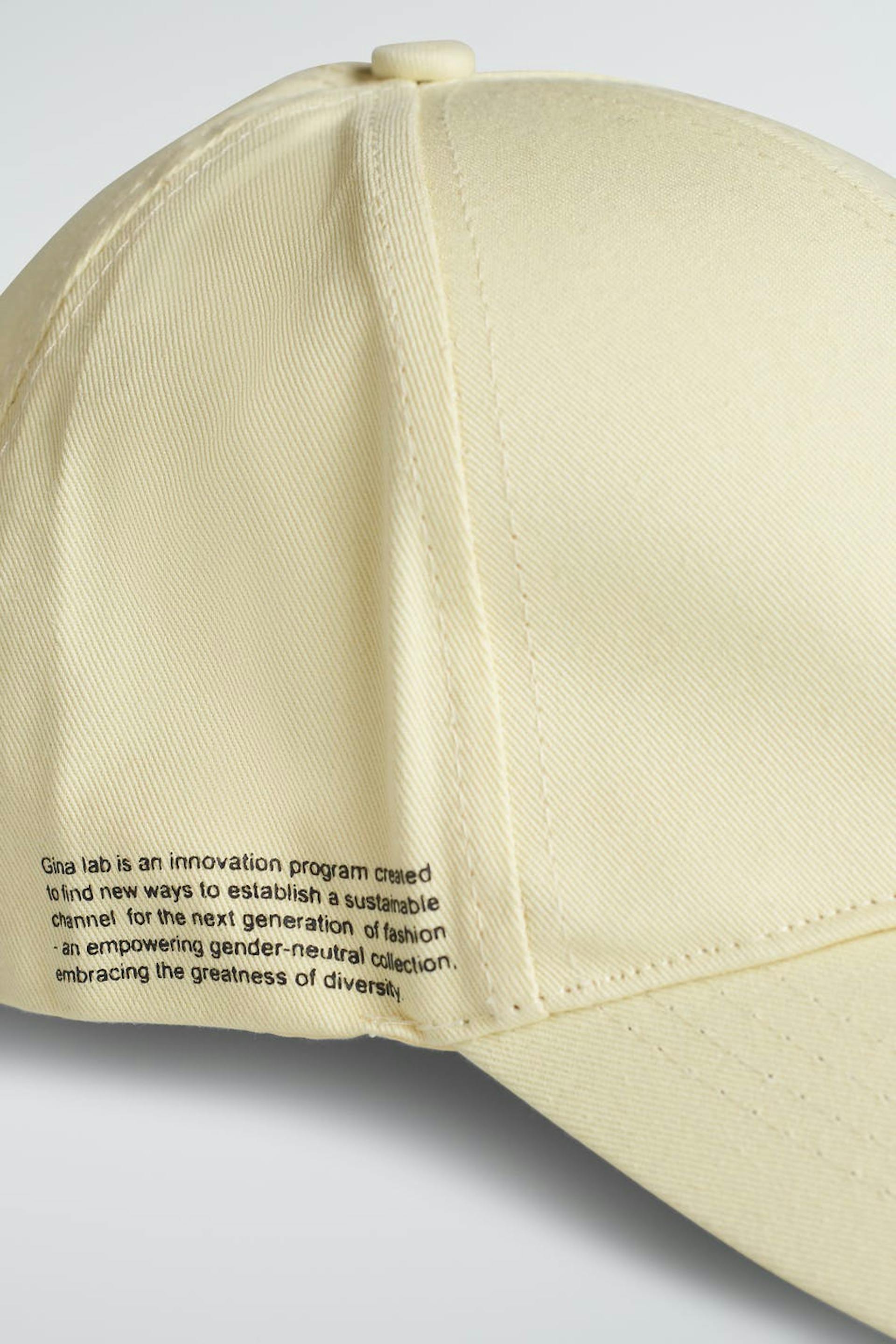 Cap van Gina Lab met een smalle print met een tekst aan een zijde. De cap is wit en heeft een verstelbare maat.