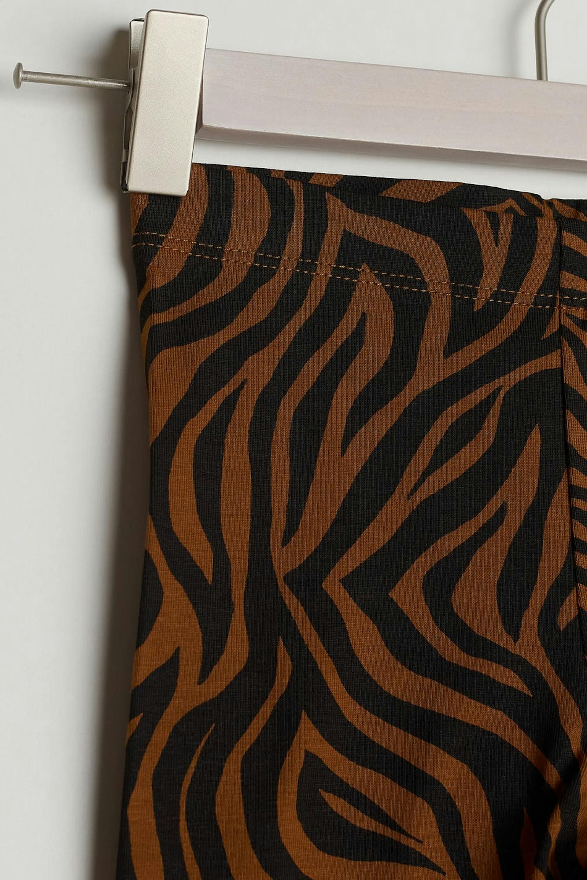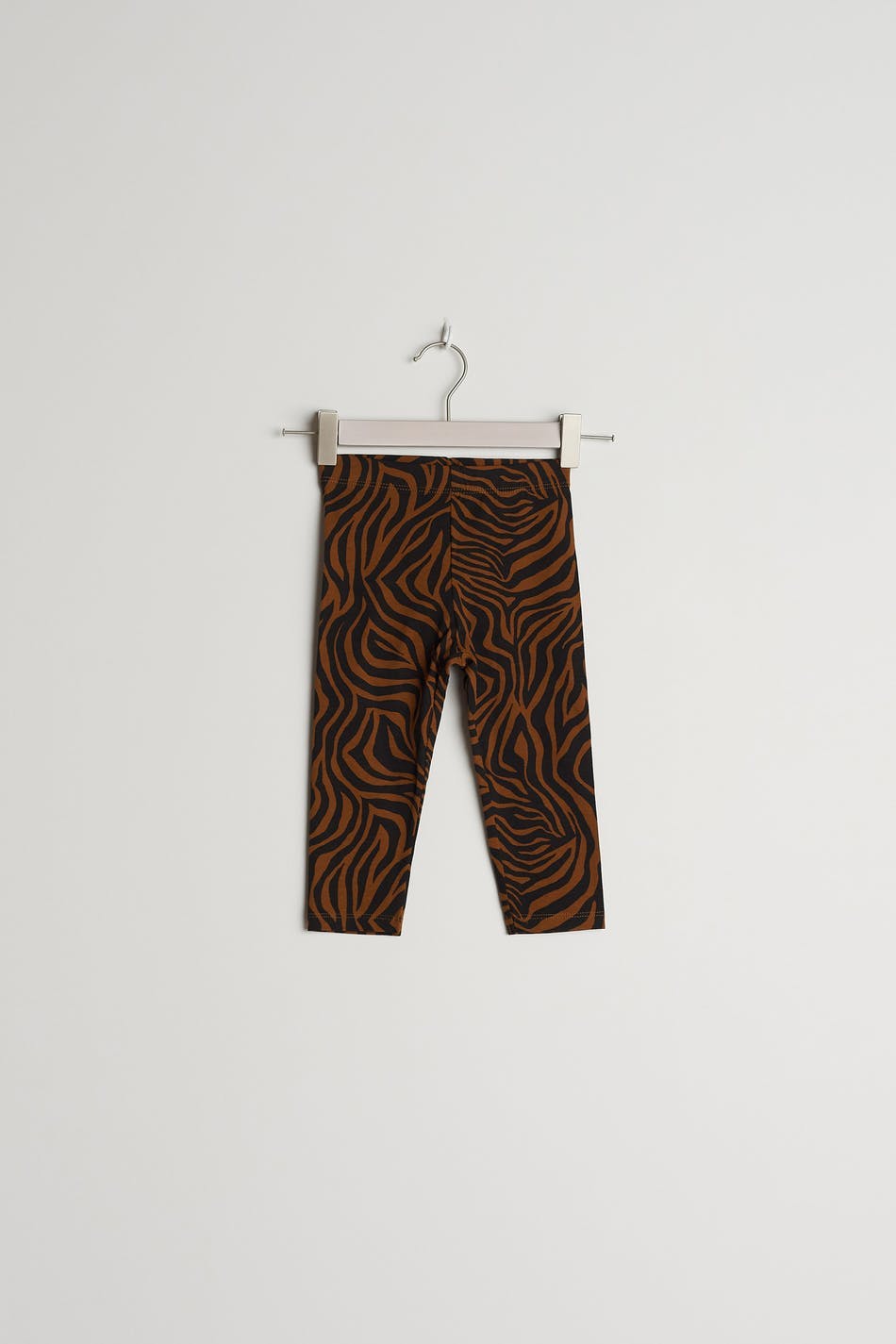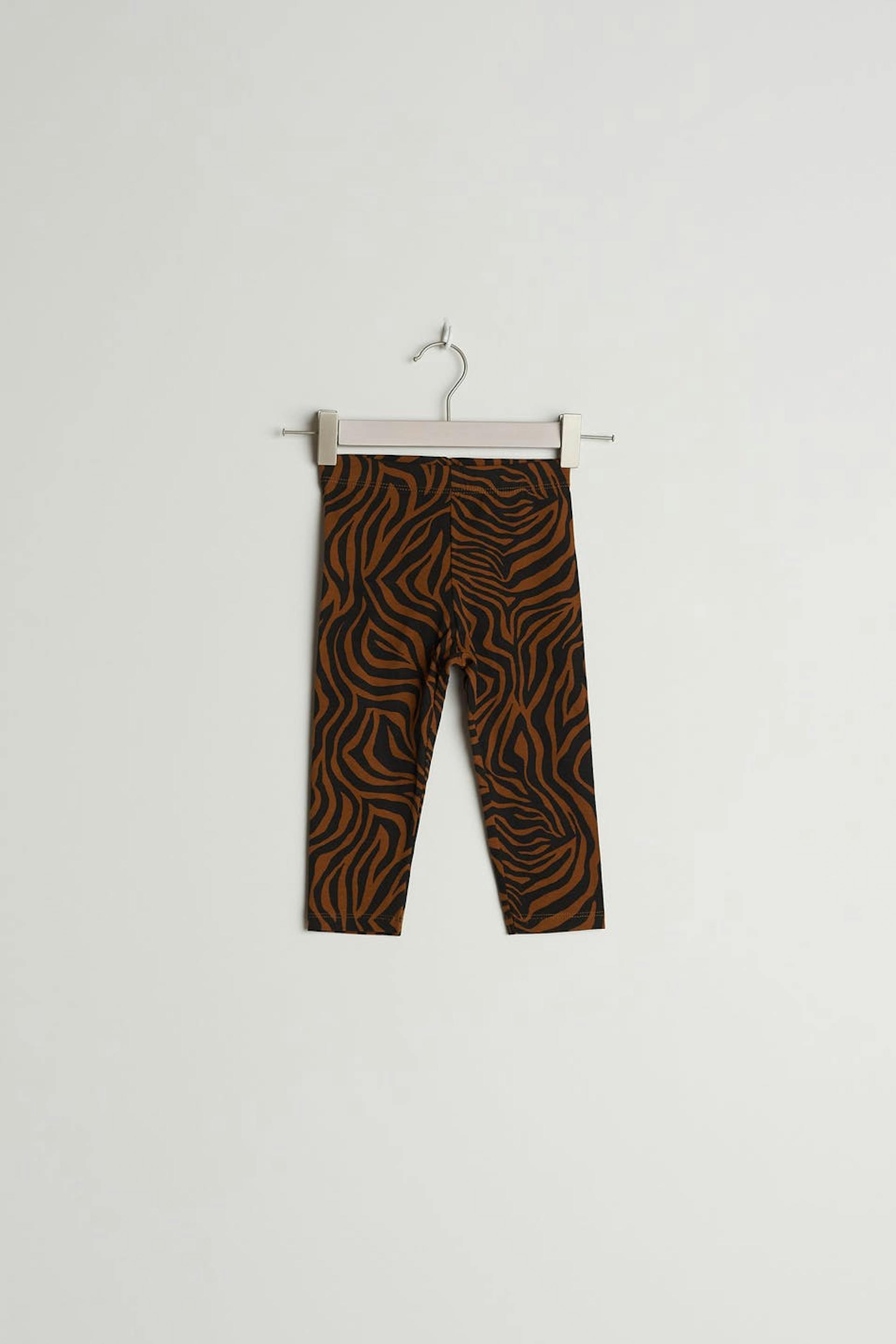 Legging voor baby's met een zebramotief. De legging is bruin, zwart en unisex.