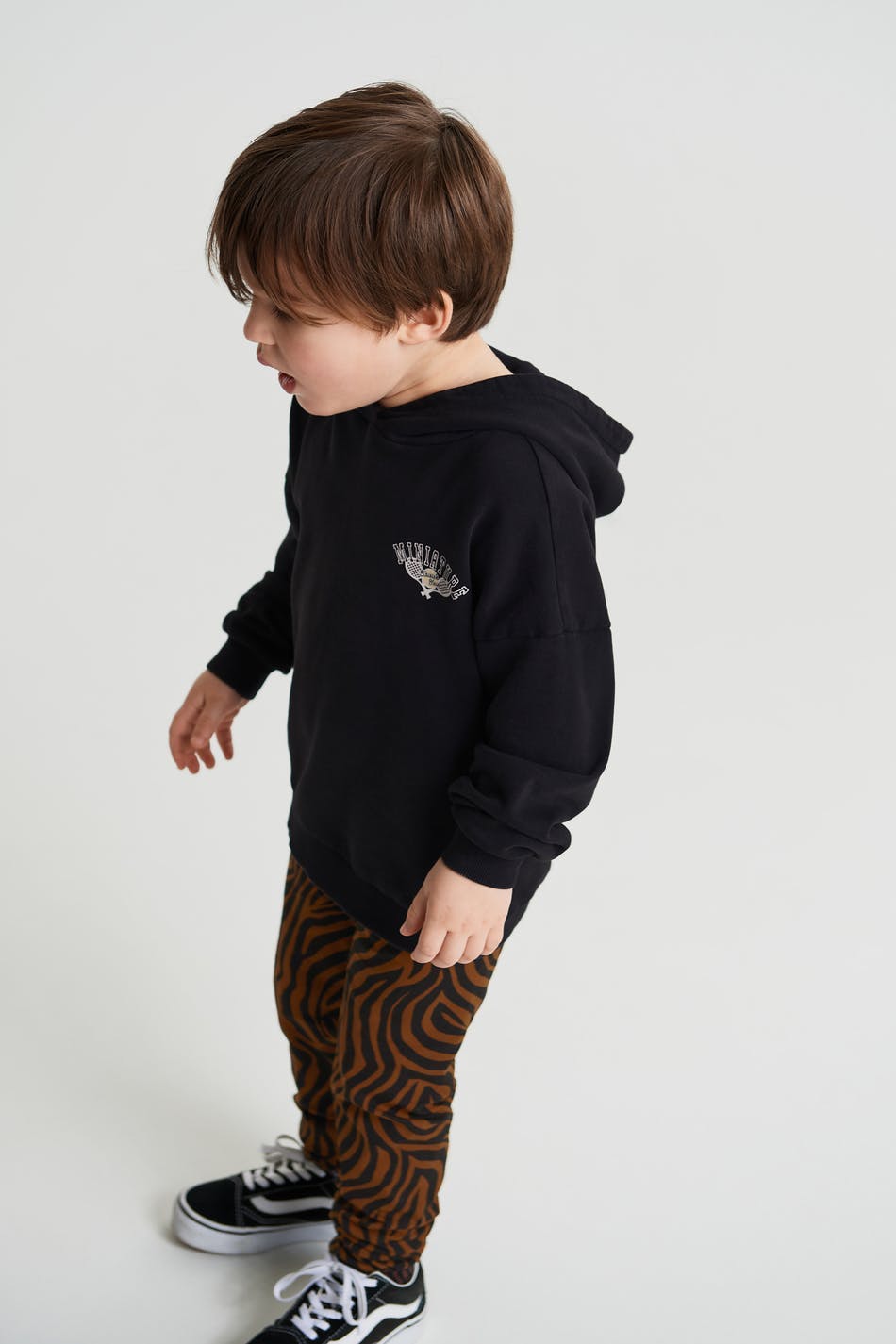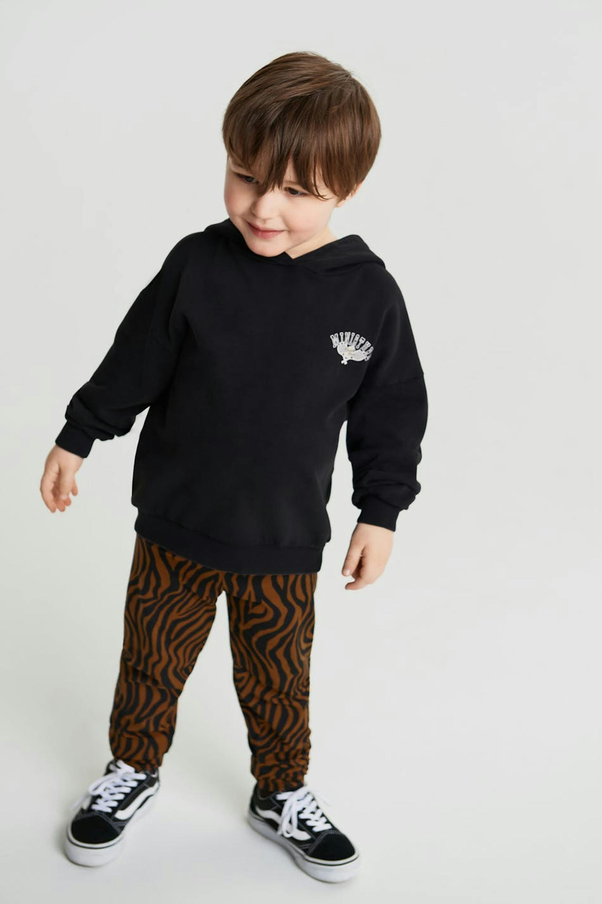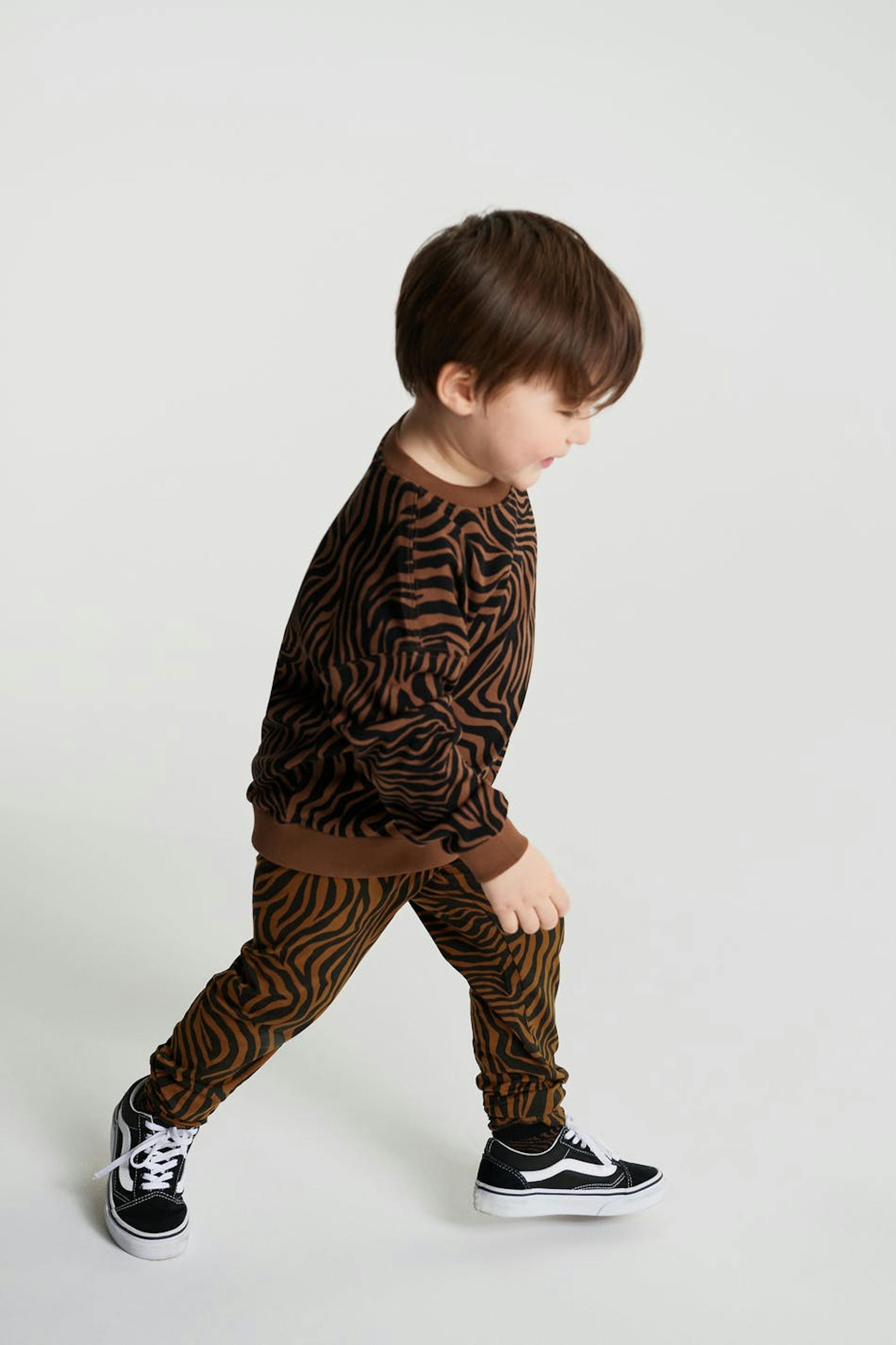 Legging voor baby's met een zebramotief. De legging is bruin, zwart en unisex.