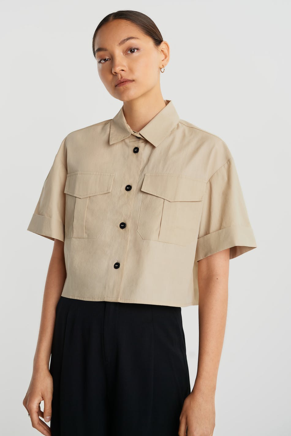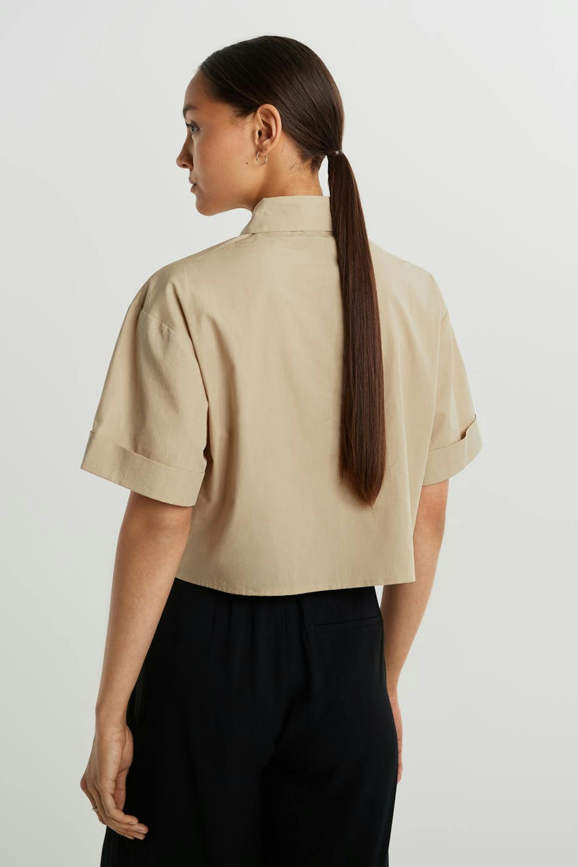 Woven cropped shirt. Thank you for supporting more sustainably grown cotton through the Better Cotton Initiative. Supplier: Paramount Products Pvt. Ltd Production Unit: Paramount Products Pvt. Ltd