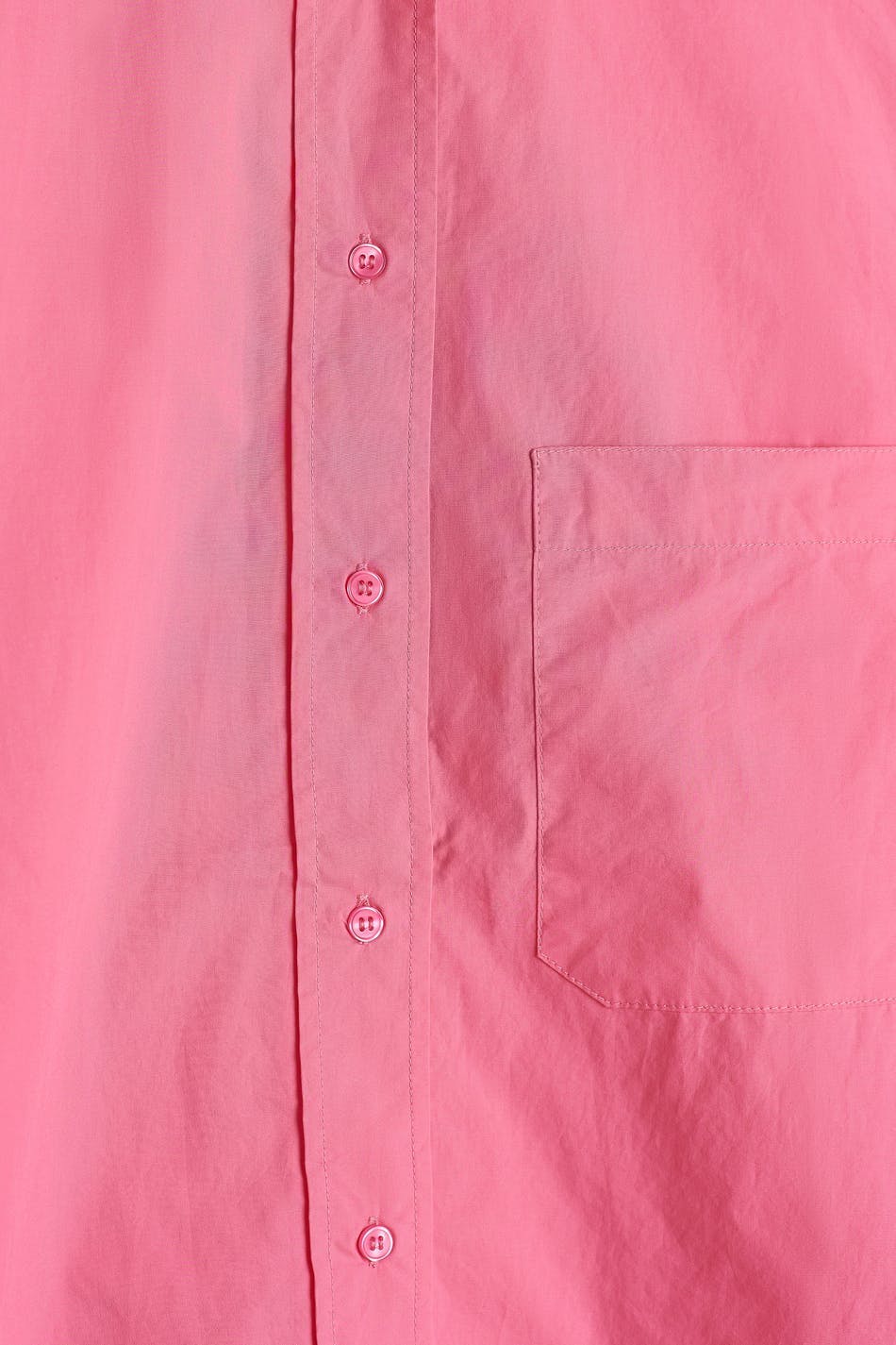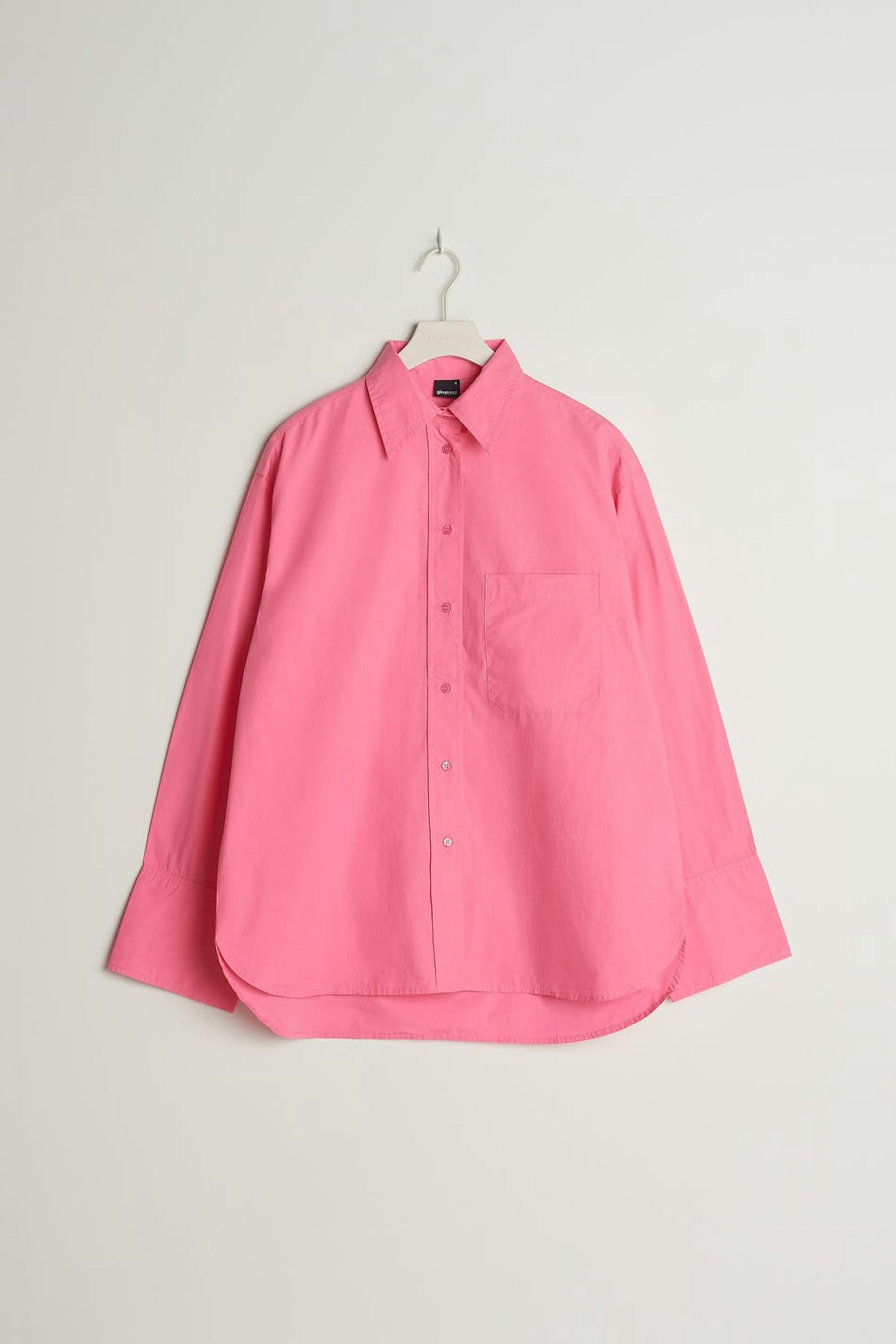 Hemd met een oversize pasvorm. Het hemd is roze en heeft knoppen aan de voorkant. Het is gemaakt van popeline en heeft een borstzak aan een zijde.