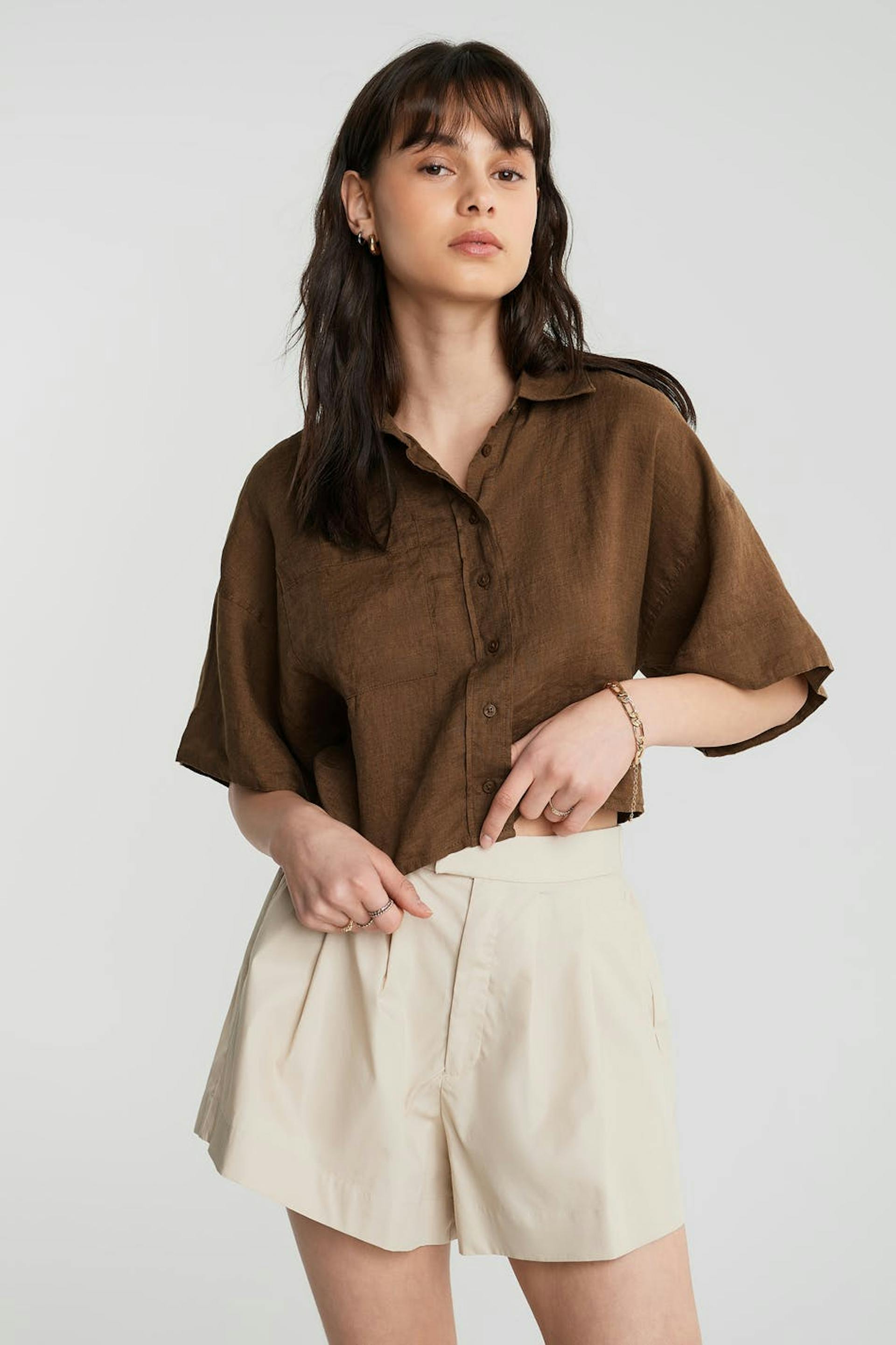 Linen button down shirt with short sleeves. Production unit: Globus Garments Ltd