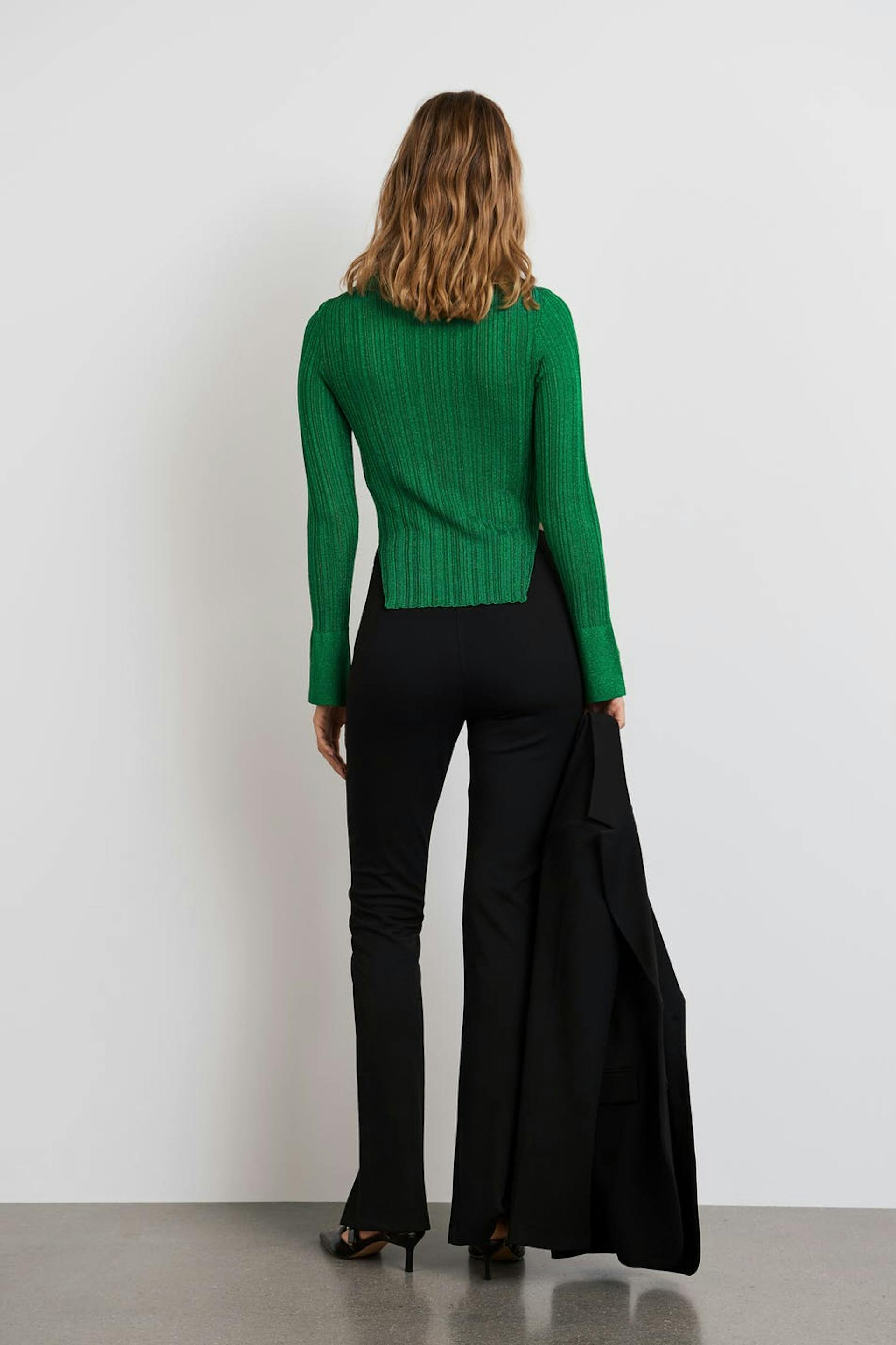 Het model draagt maat S en is 180cm groot