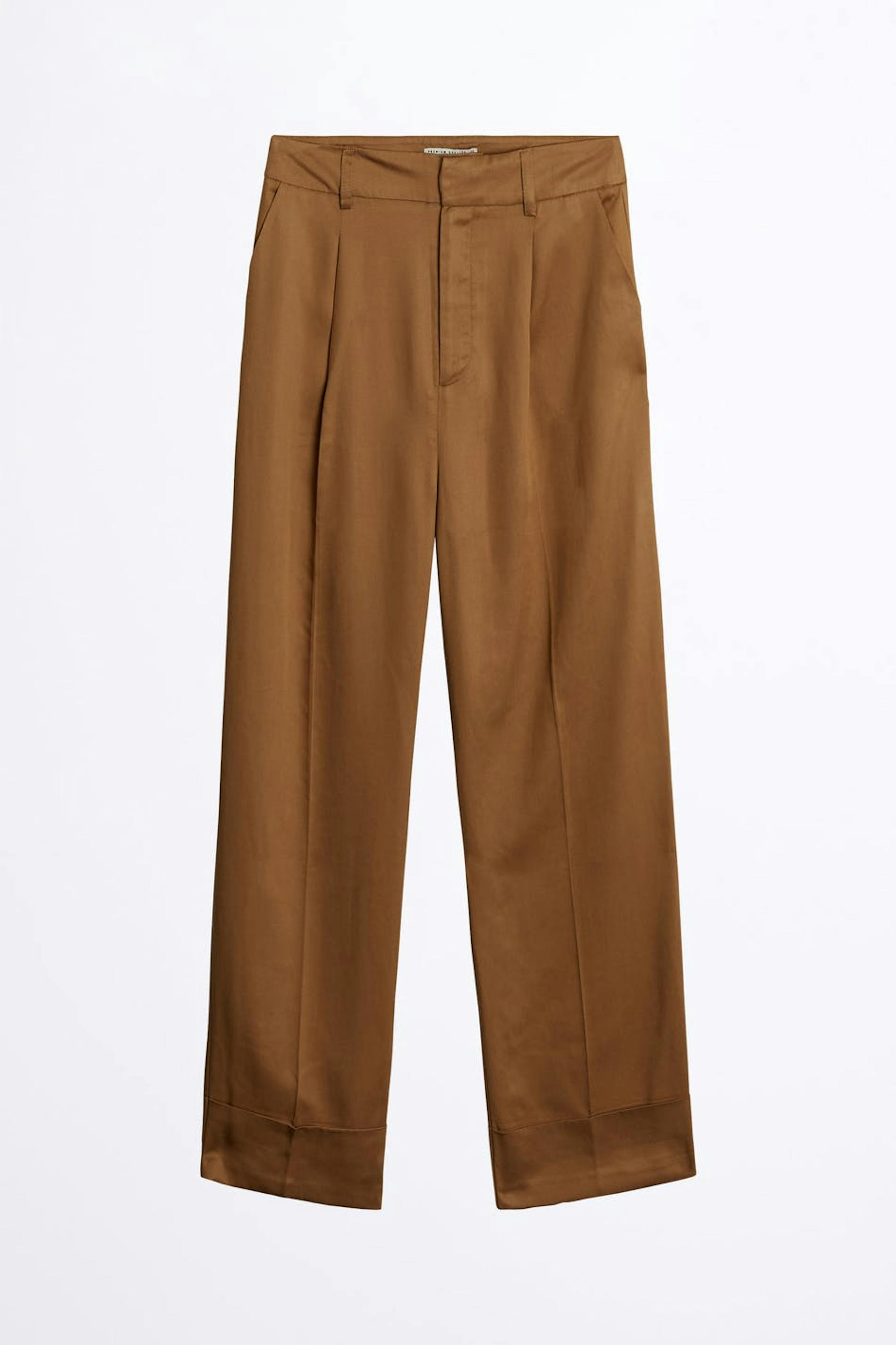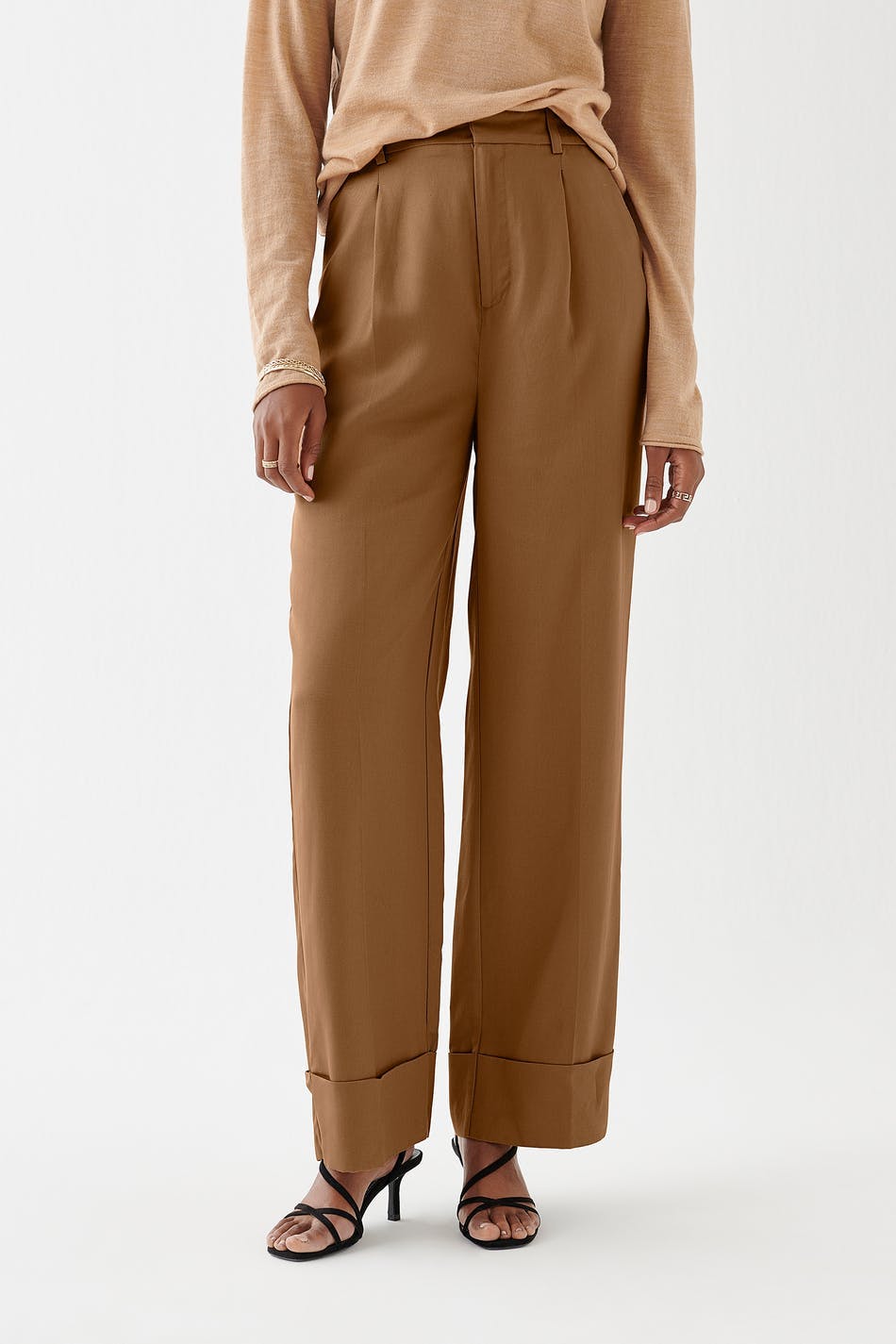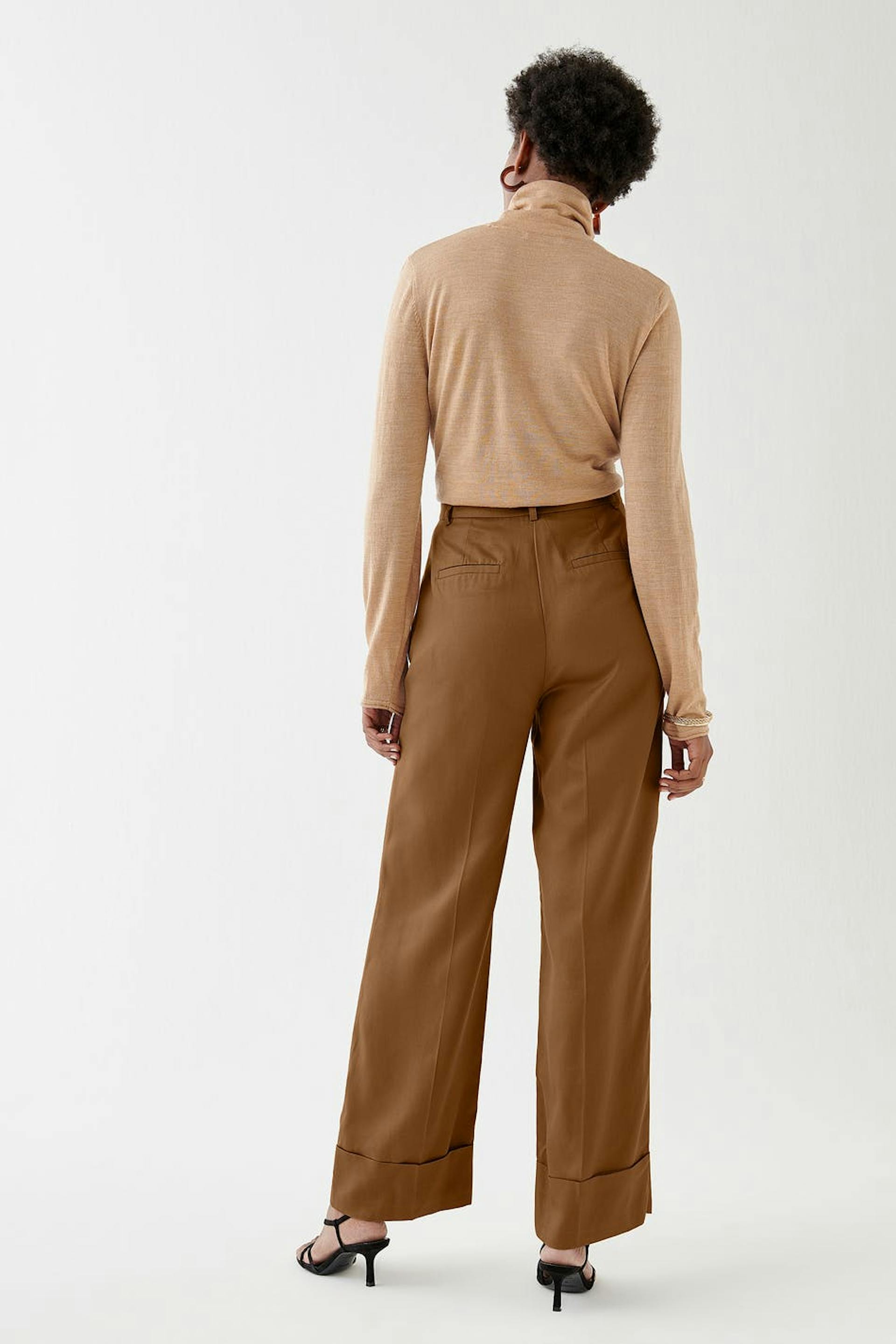 Wide long trousers in a premium soft tencel quality. Double wide folded at endings for a cooler look and fake welt pocket at back.