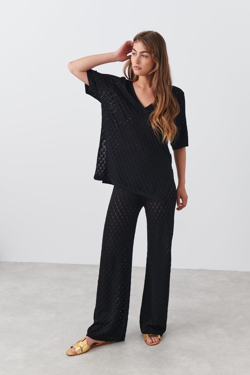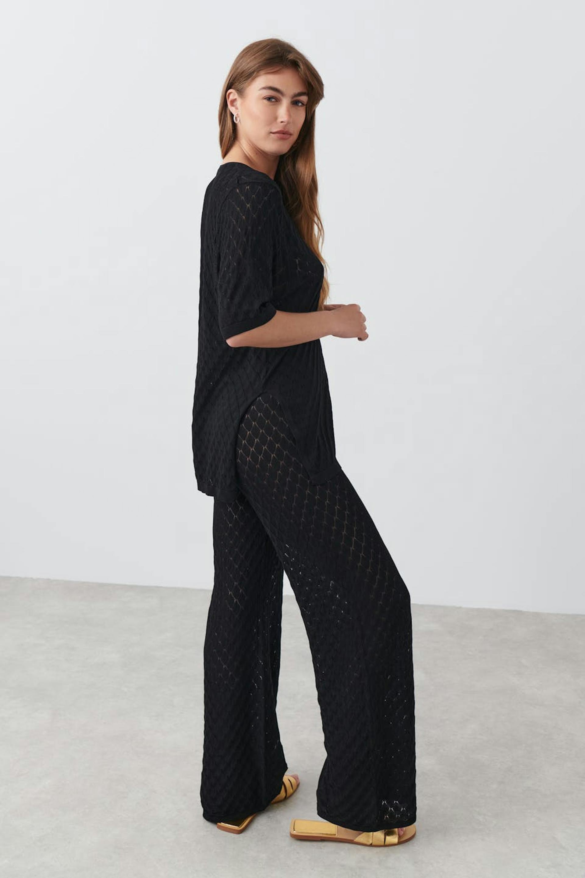 Pointelle knit trousers