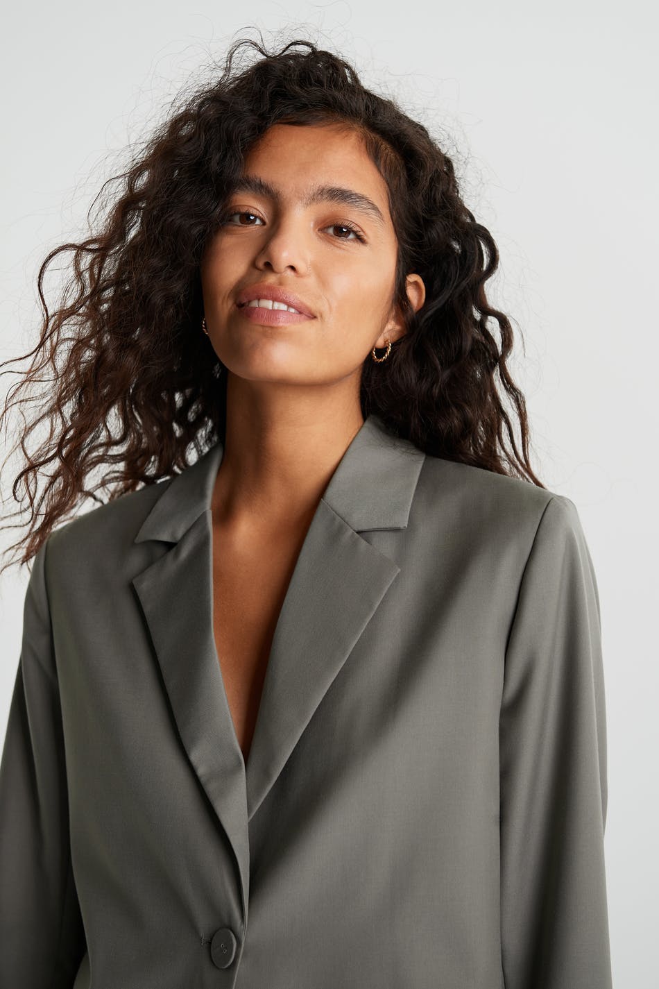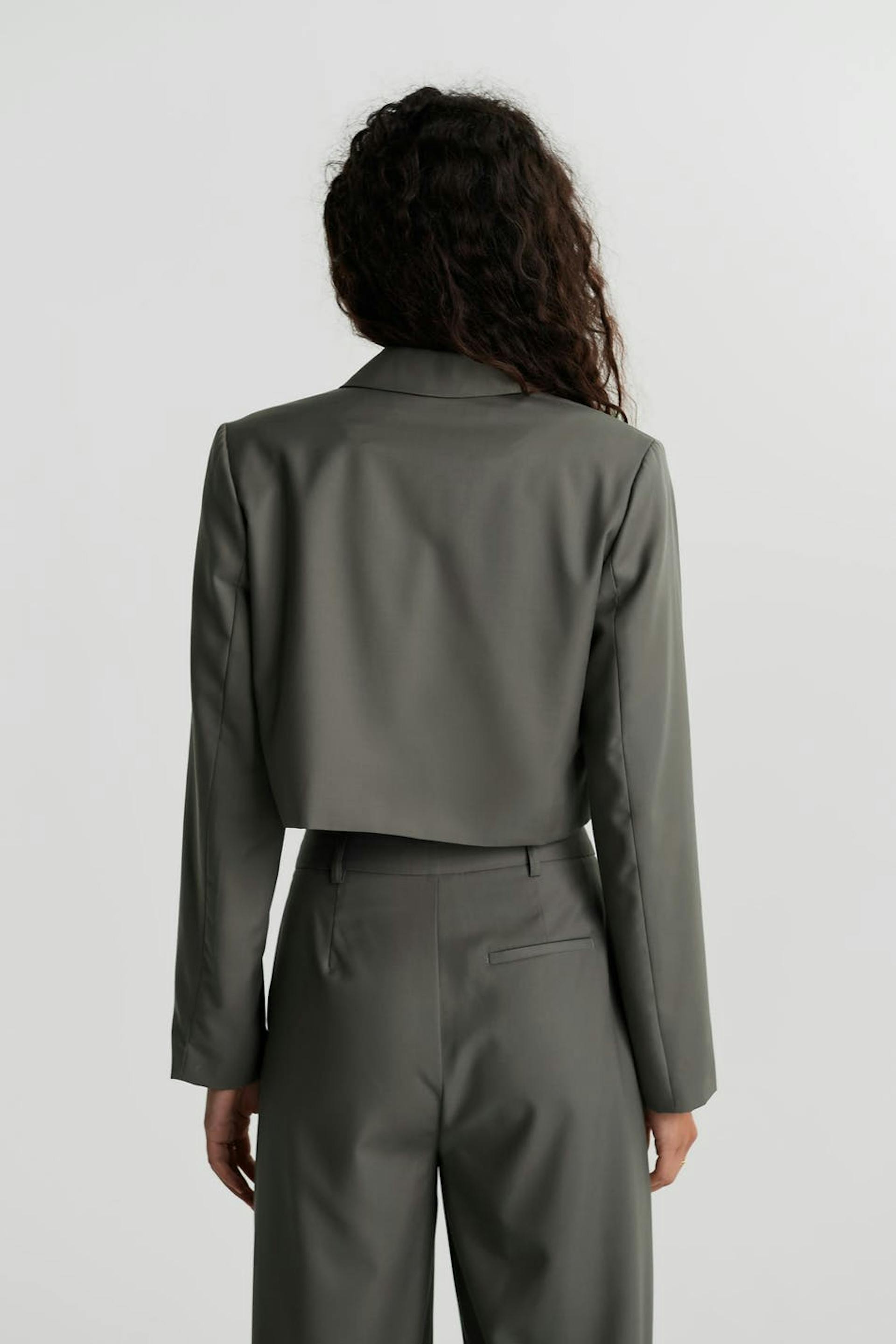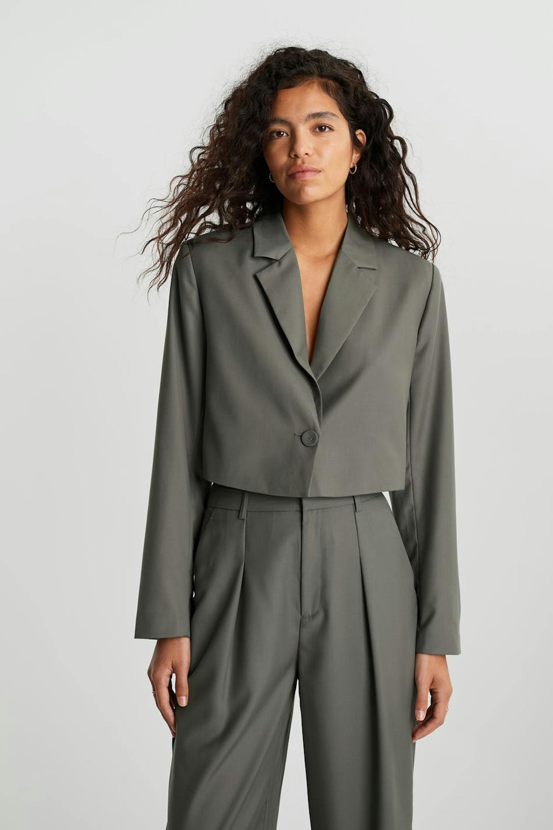 Cropped blazer with one button in front. Match with a high waisted trousers or a pair of shorts to compleate the look!