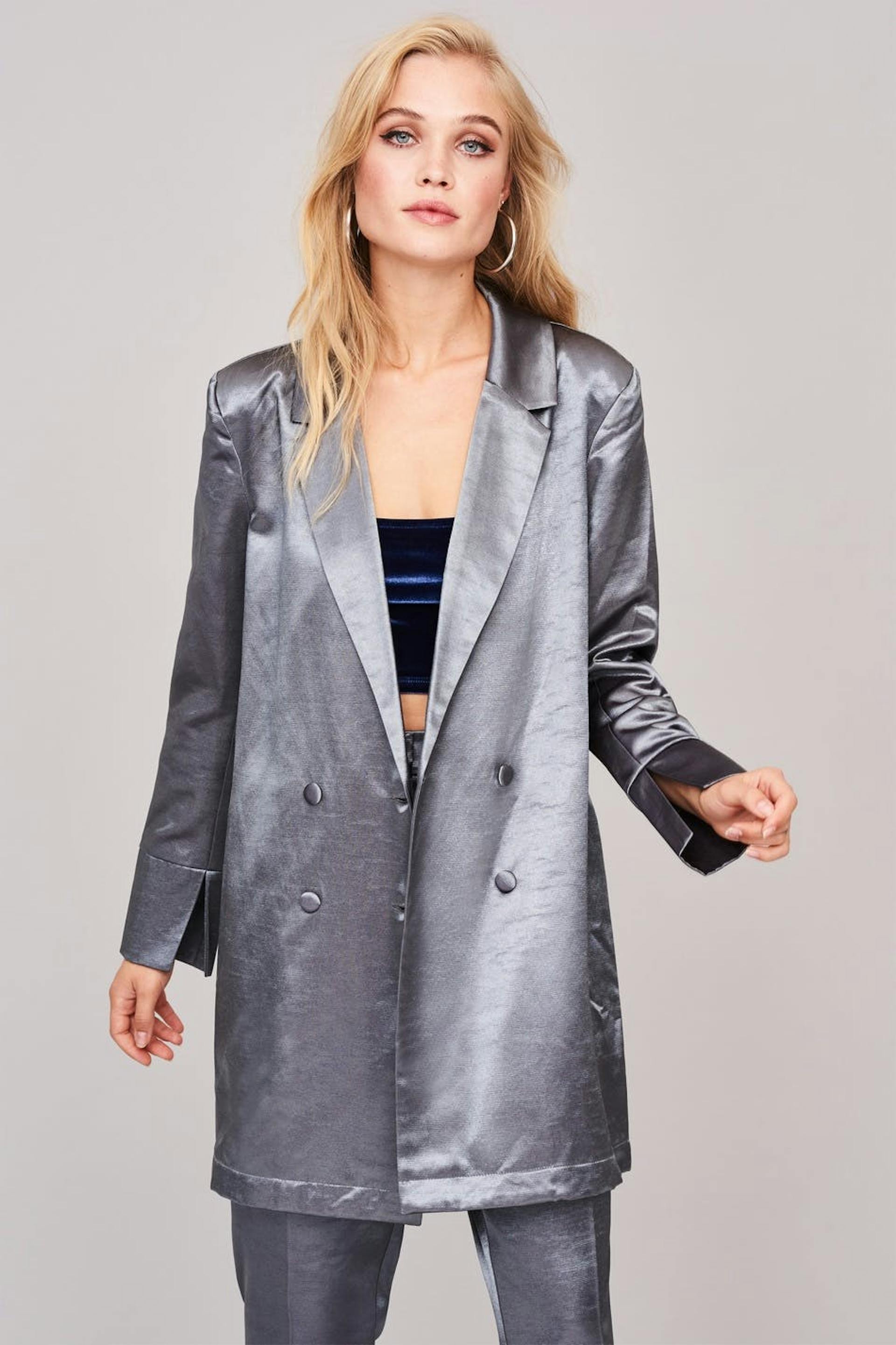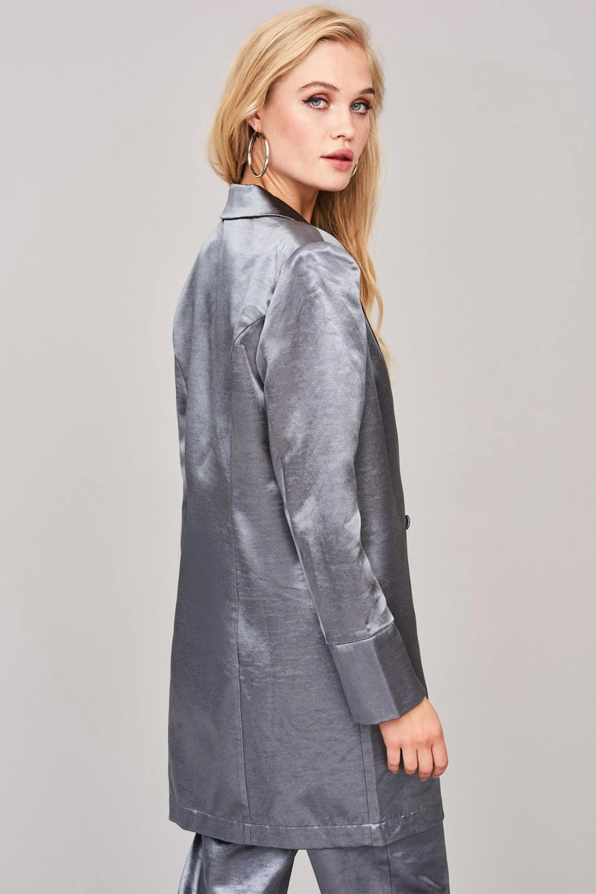 Dubbel-borstige colbert met een normale pasvorm. De colbert is perfect voor het feest en zilverkleurig.