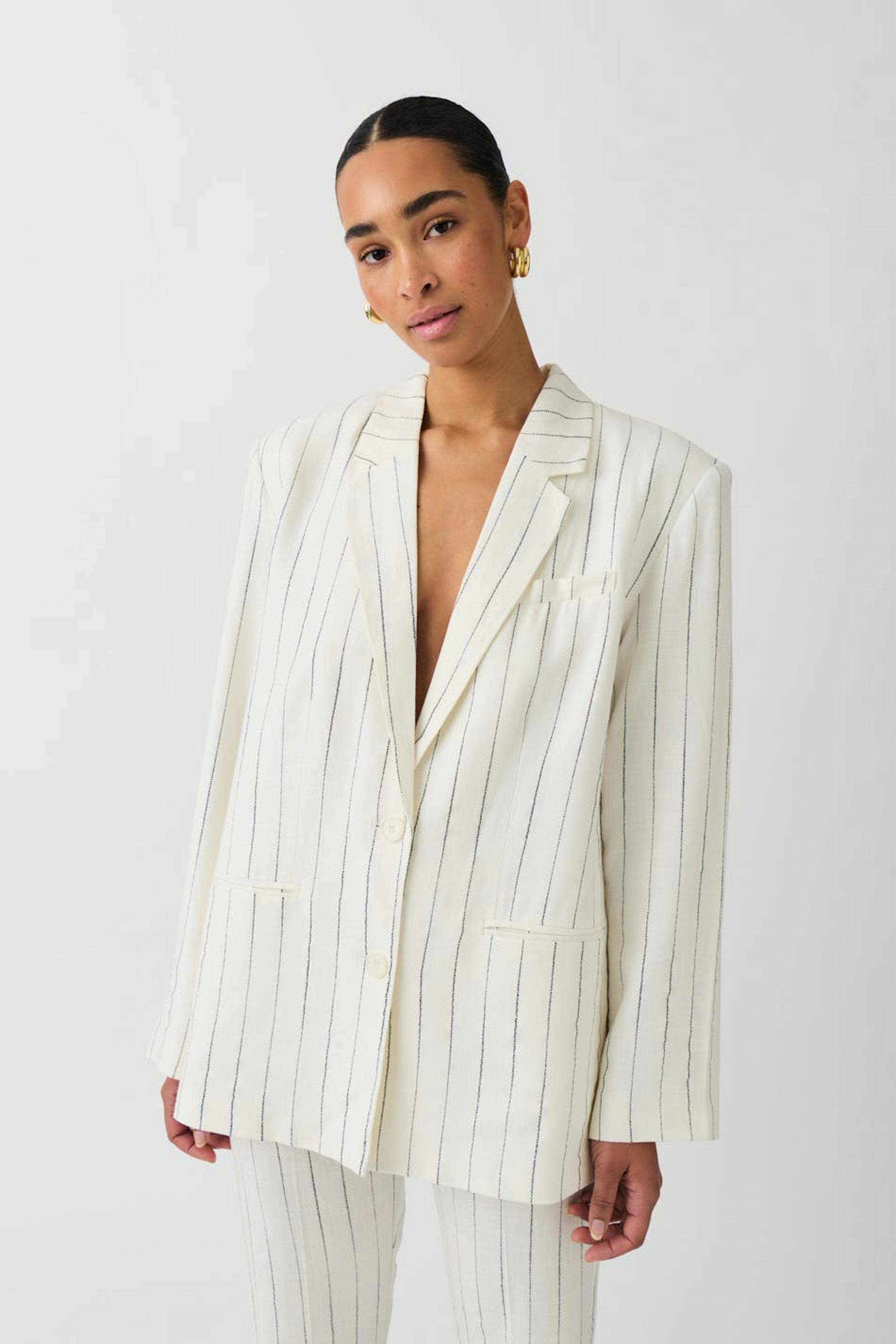 Texture linen blend blazer