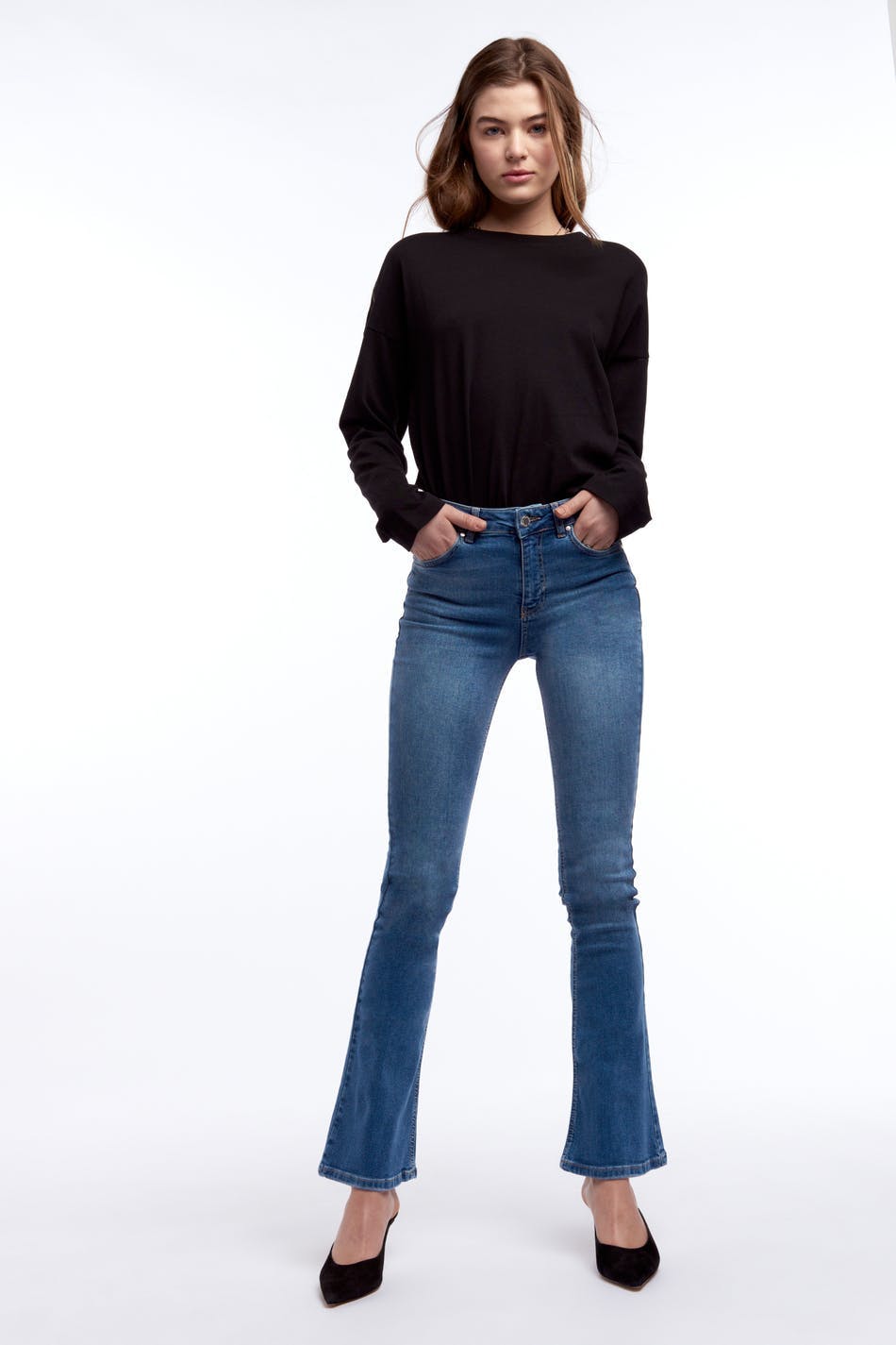 Trendy bootcut jeans for all occasions. High waist. Some stretch. 5-pockets. Supplier: Maydenim Tekstil San Ve Dis Ticaret A.S Production unit: ORDU MAYDENIM