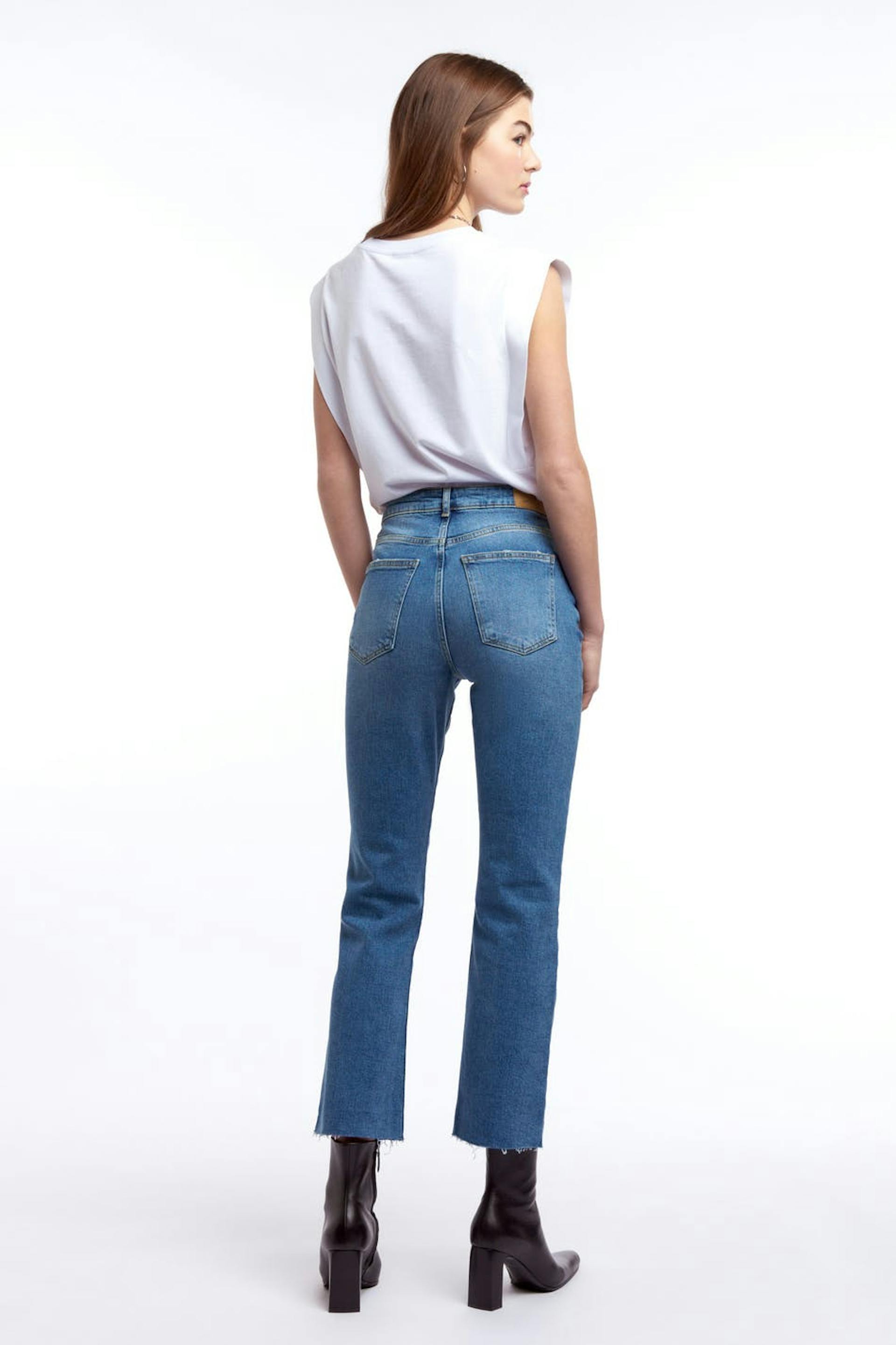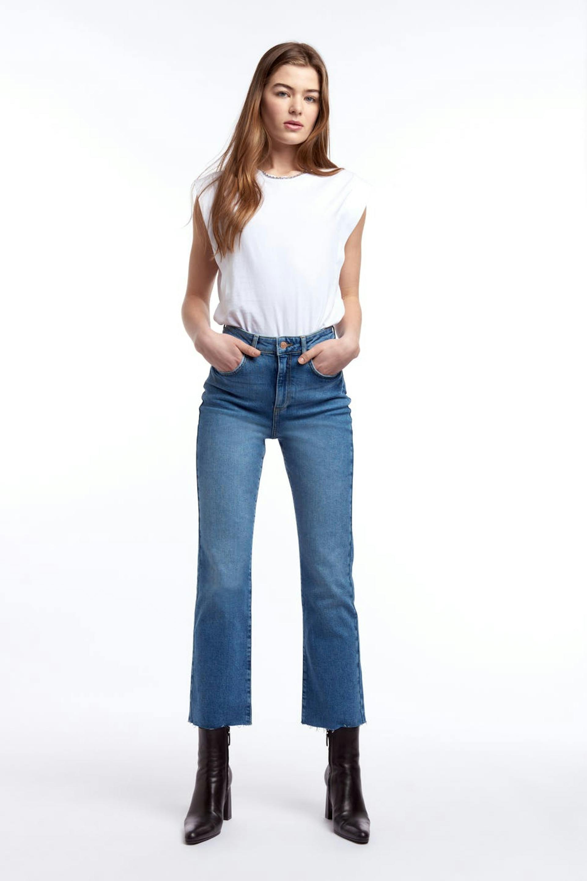 5-pocket jeans with midwaist, zip fly and cropped flare leg in denim with low stretch. Supplier: Baykanlar Tekstil Sanayi Ve Ticaret Anonim Sirketi Prod.unit: BAYKANLAR TEKSTIL