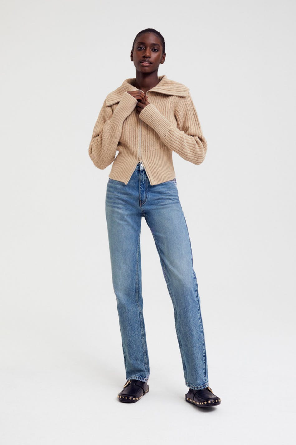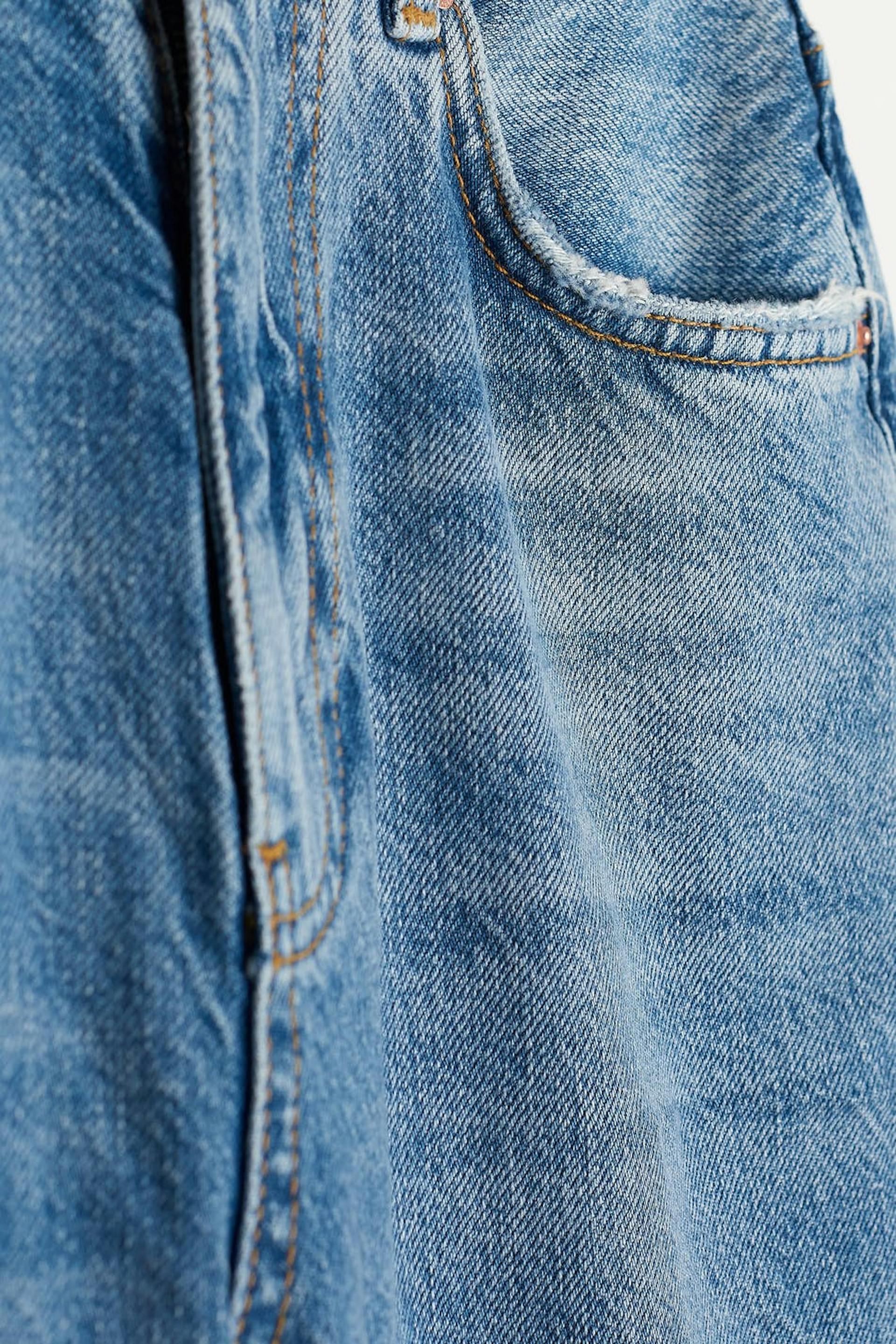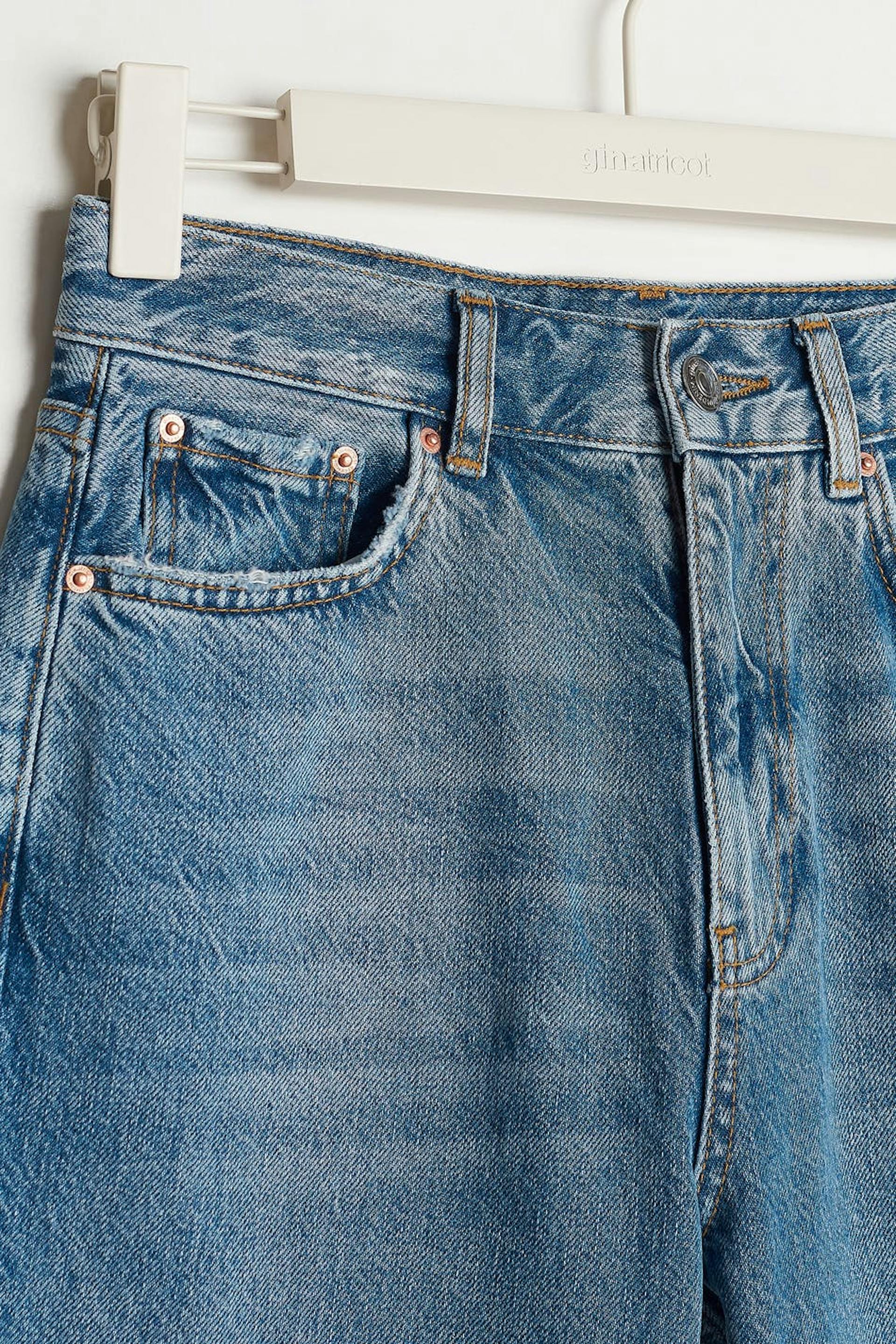 Rekvrije spijkerbroek met een nauwsluitende en rechte pasvorm. De spijkerbroek is blauw en heeft een midden taille. Het heeft een gulp, rechte broekspijpen met volledige lengte en zakken aan de voor- en achterzijde. Gebruik onze maattabel om je maat te vinden.