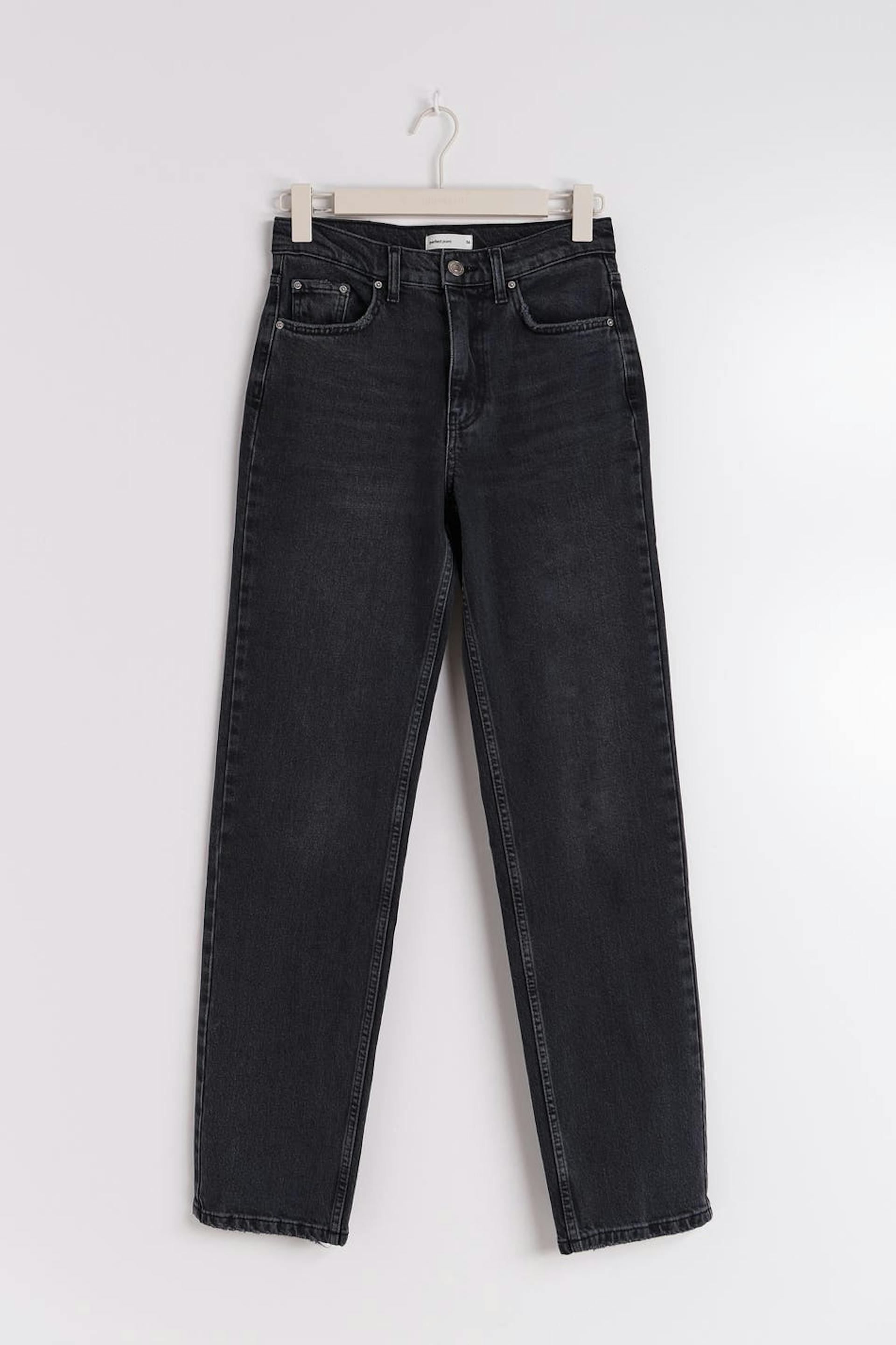 Rechte spijkerbroek met midden taille. De spijkerbroek is zwartgrijs en heeft rechte en comfortabele pasvorm met rek. Het heeft gulp, extra-lange broekspijpen en zakken aan de voor- en achterzijde. Perfect voor personen die 175 cm (5 ft 9 in.) of groter zijn. Gebruik onze maattabel om je maat te vinden.