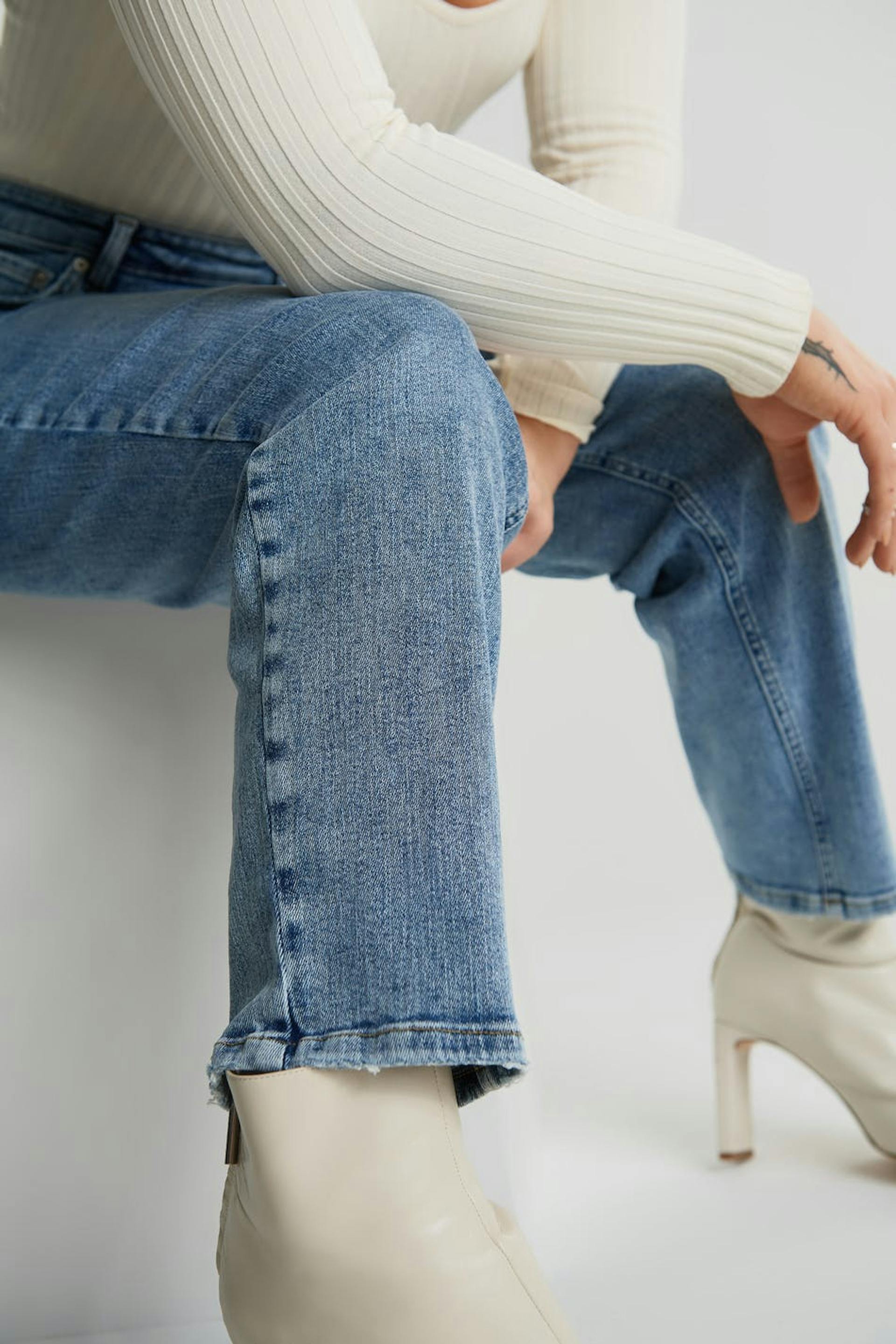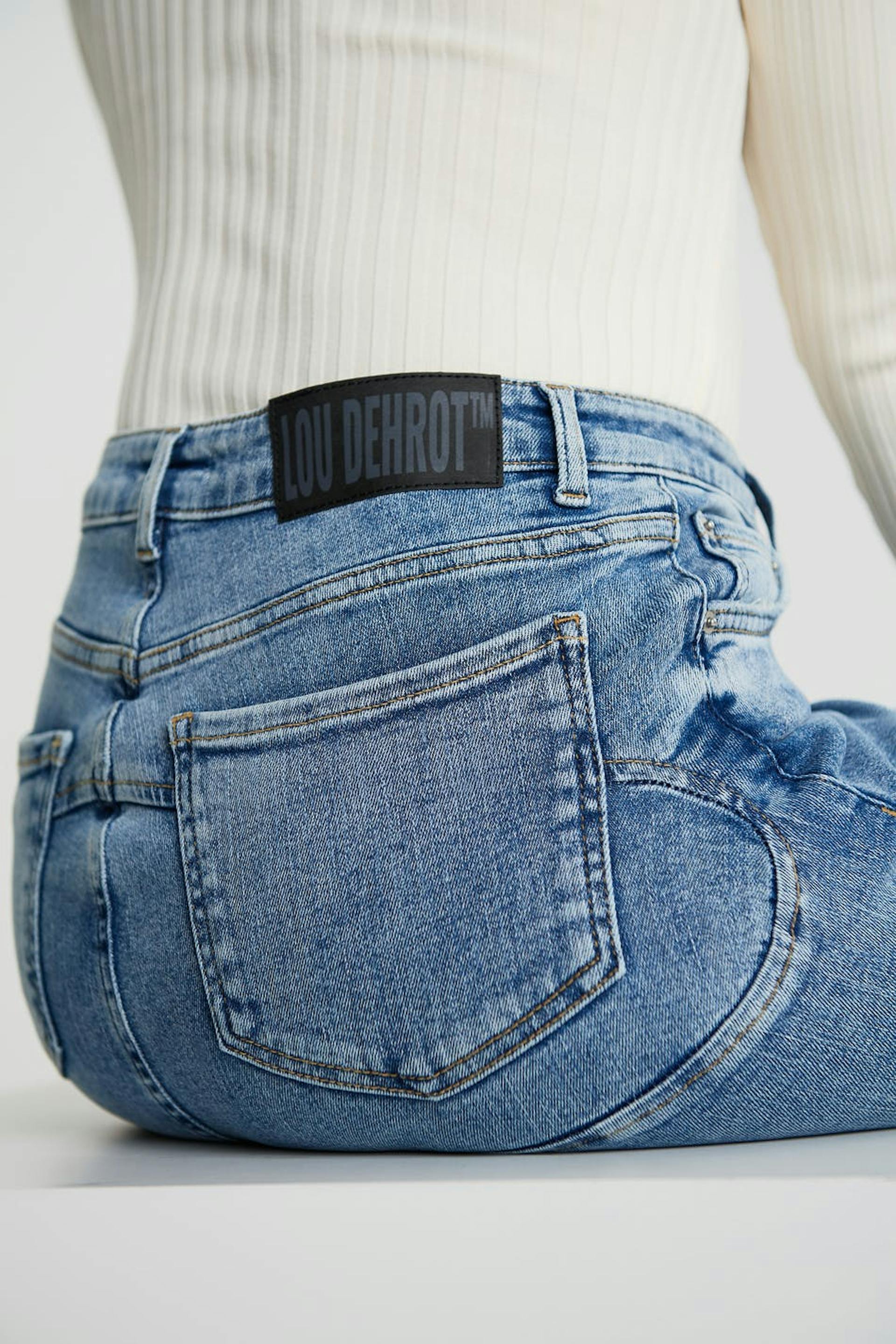Dehrot Mom Jeans van Lou Dehrot Seated Jeans, in samenwerking met Lou Dehrot. De jeans is zo ontworpen dat hij je lichaam volgt als je zit. Hoog gepositioneerde achterzakken, versterkte lussen, heerlijke comfortstretch en een authentieke denimlook. Hoge en gelijkmatige taille, wat betekent dat de jeans aan de voorkant niet insnijdt en aan de achterkant niet afzakt. Losser op de bovenbenen en taps toelopende pijpen. Het kan aanvoelen alsof je veel stof aan de achterkant hebt als je staat. Geschikt voor het zitten in een rolstoel, scootmobiel, bureaustoel, windsorstoel en andere stoelen. Binnenbeenlengte 88 cm. Supplier: Maydenim Tekstil San Ve Dis Ticaret A.S
