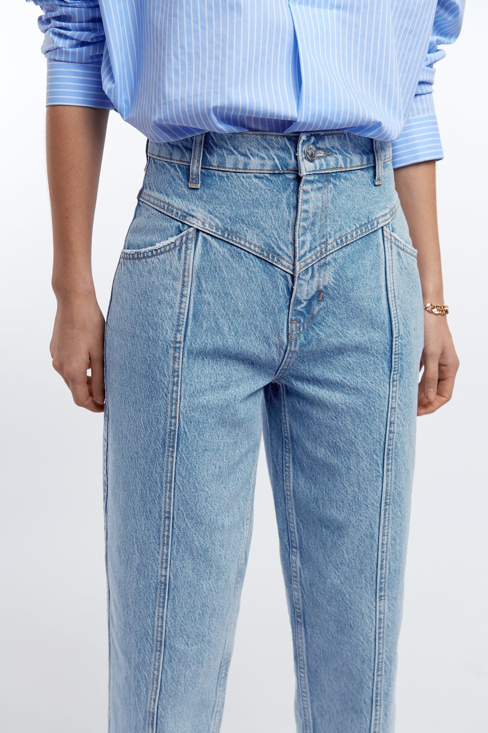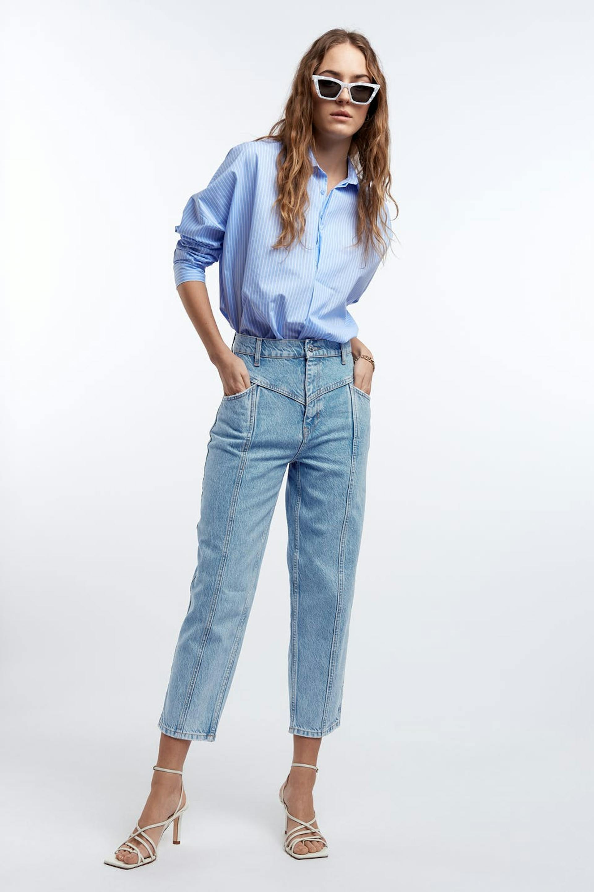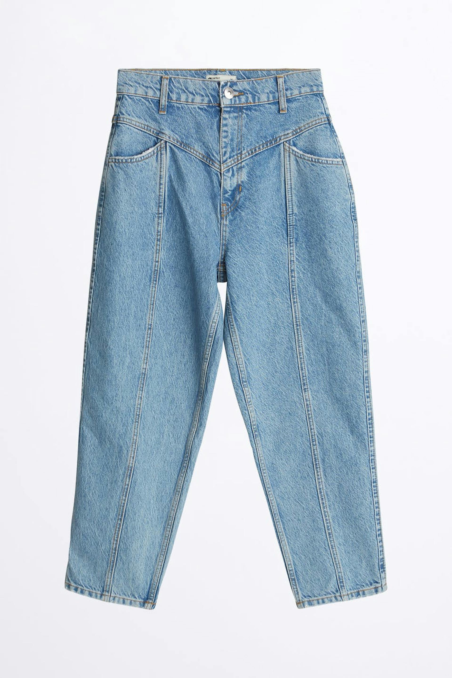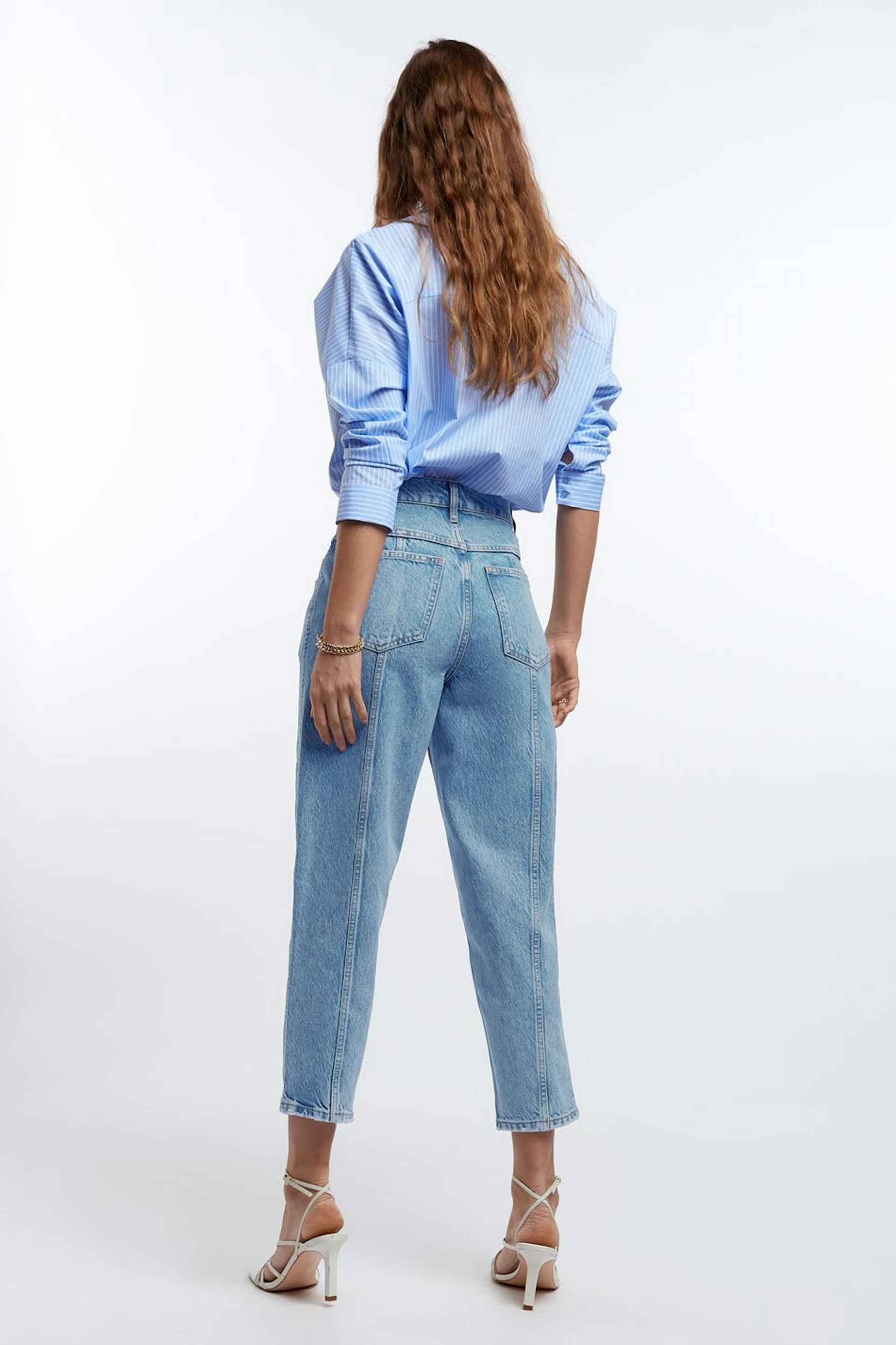 Slouchy mom jeans with high waist, yoke front, zip fly and cropped lenght. 100% authentic denim with no stretch in blue 80´s snow wash. Thanks for supporting more sustainably grown cotton through the Better Cotton Initiative. Supplier: Baykanlar Tekstil Sanayi Ve Ticaret Anonim Sirketi. Production Unit: Baykanlar Tekstil.