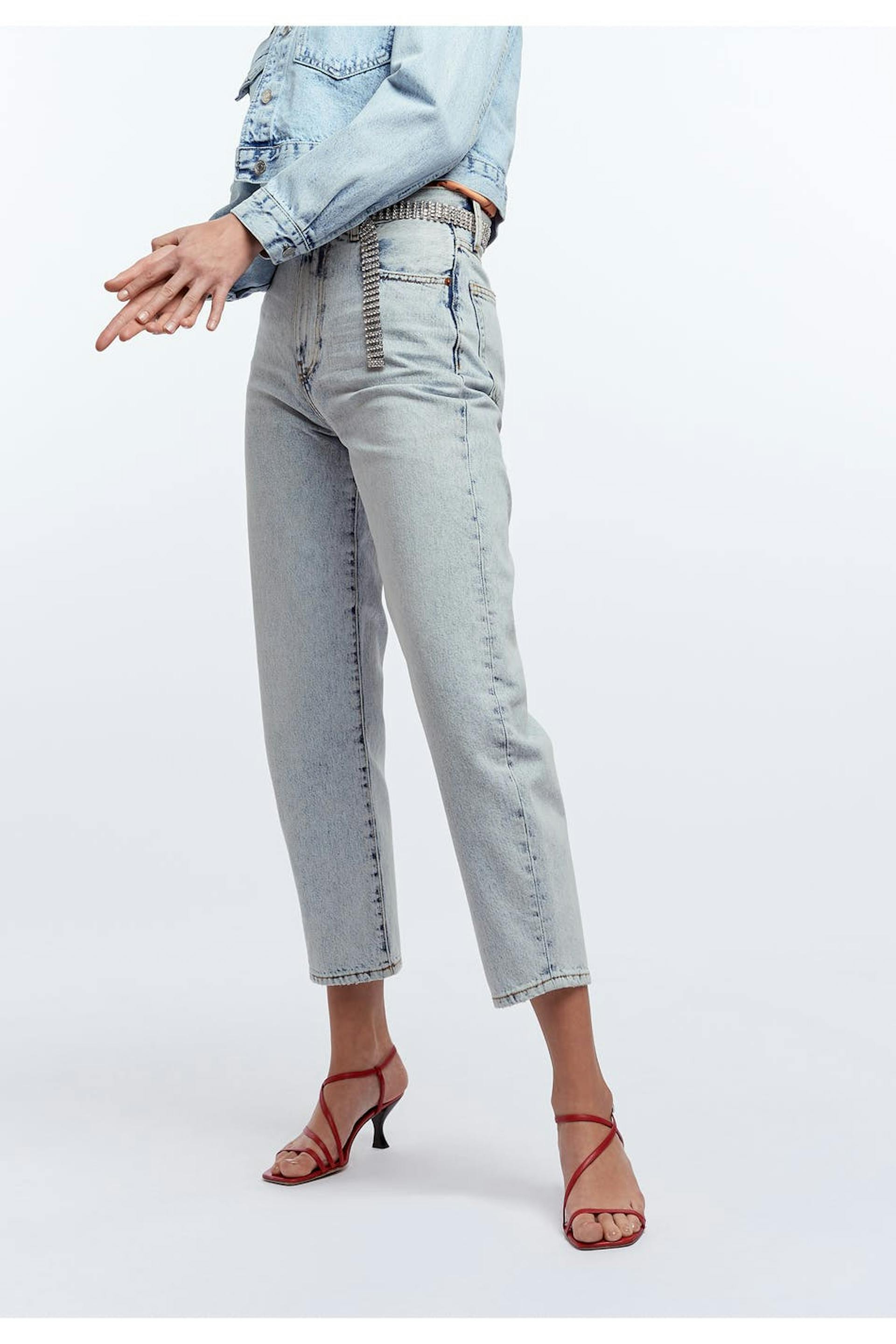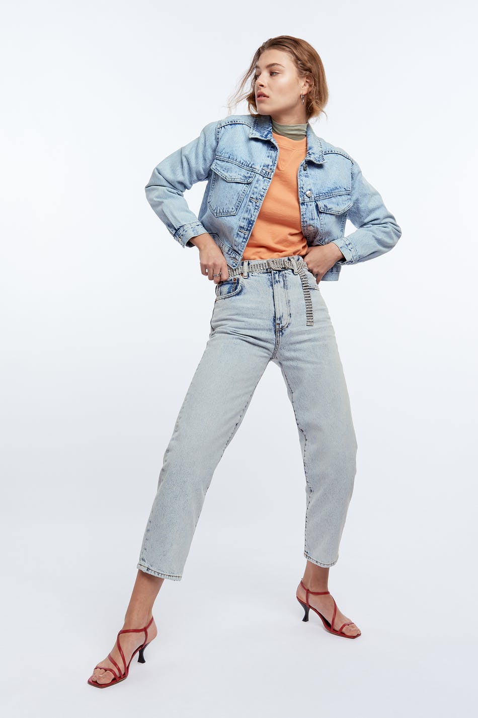 5-pocket relaxed mom jeans with high waist, zip fly and barrel legs. 100% authentic premium denim with no stretch in vintage wash. Supplier: Baykanlar Tekstil Sanayi Ve Ticaret Anonim Sirketi. Production Unit: Baykanlar Tekstil.