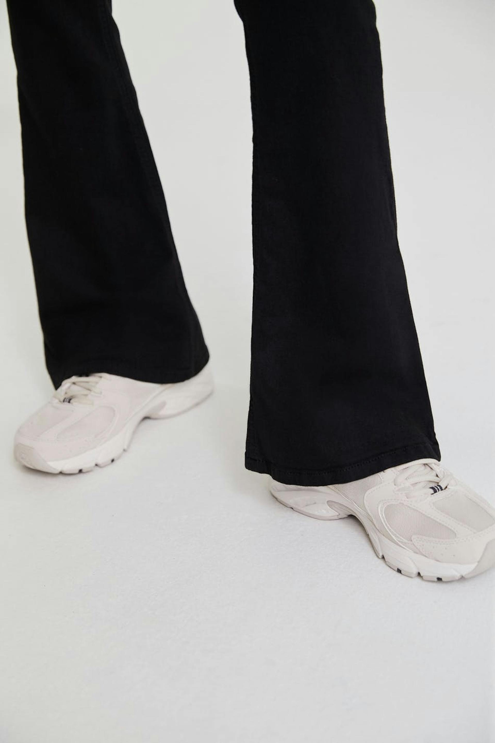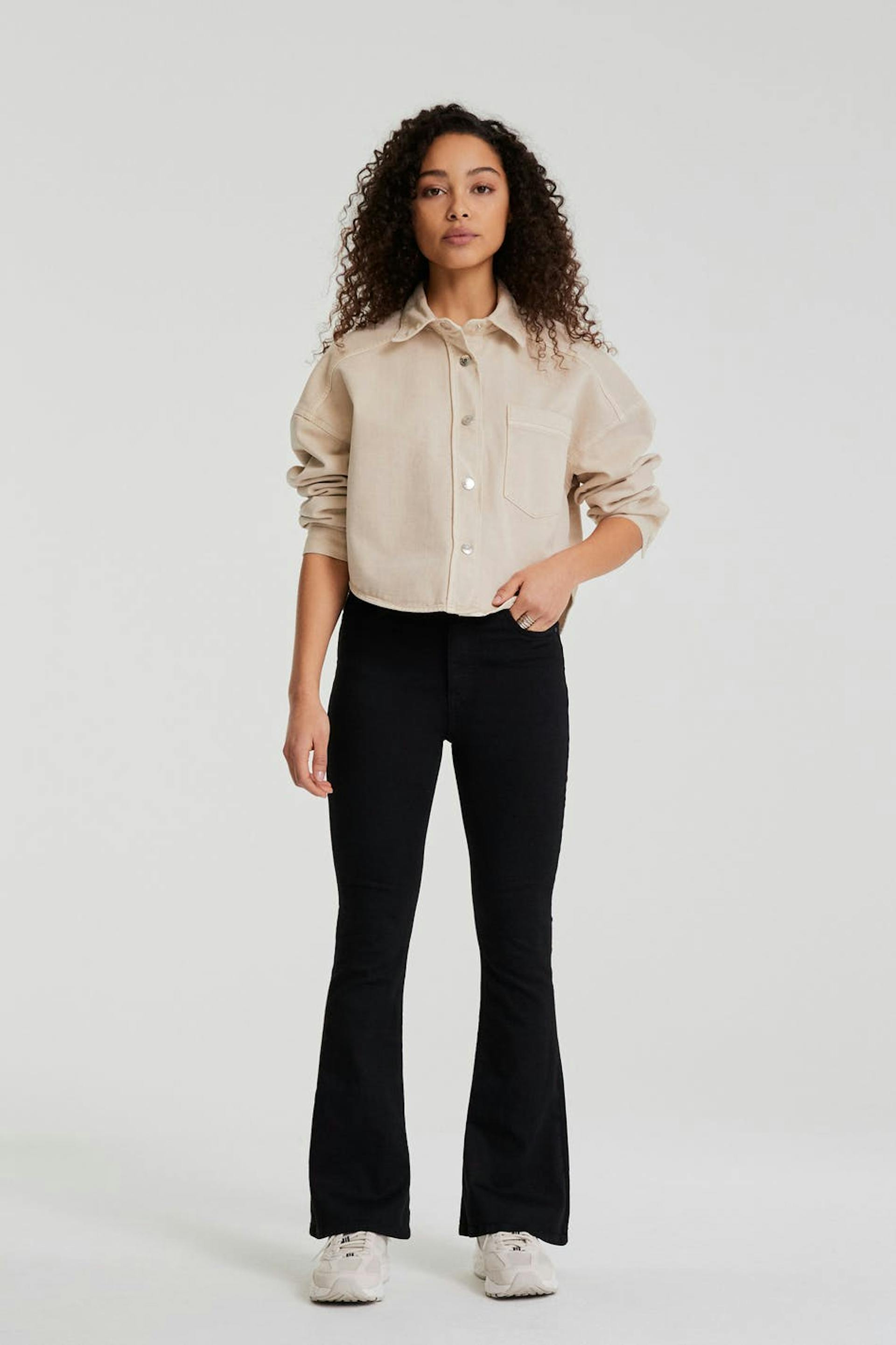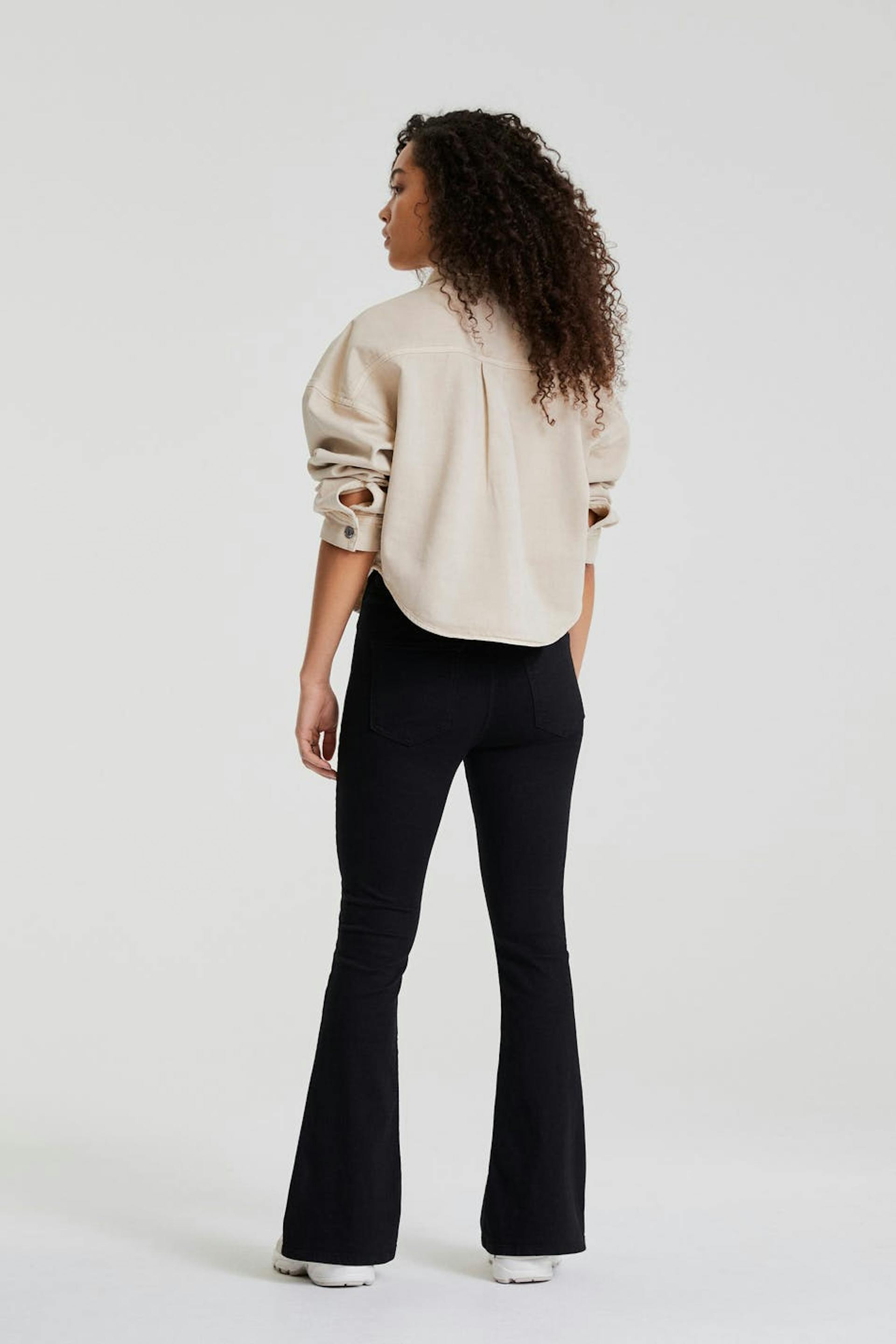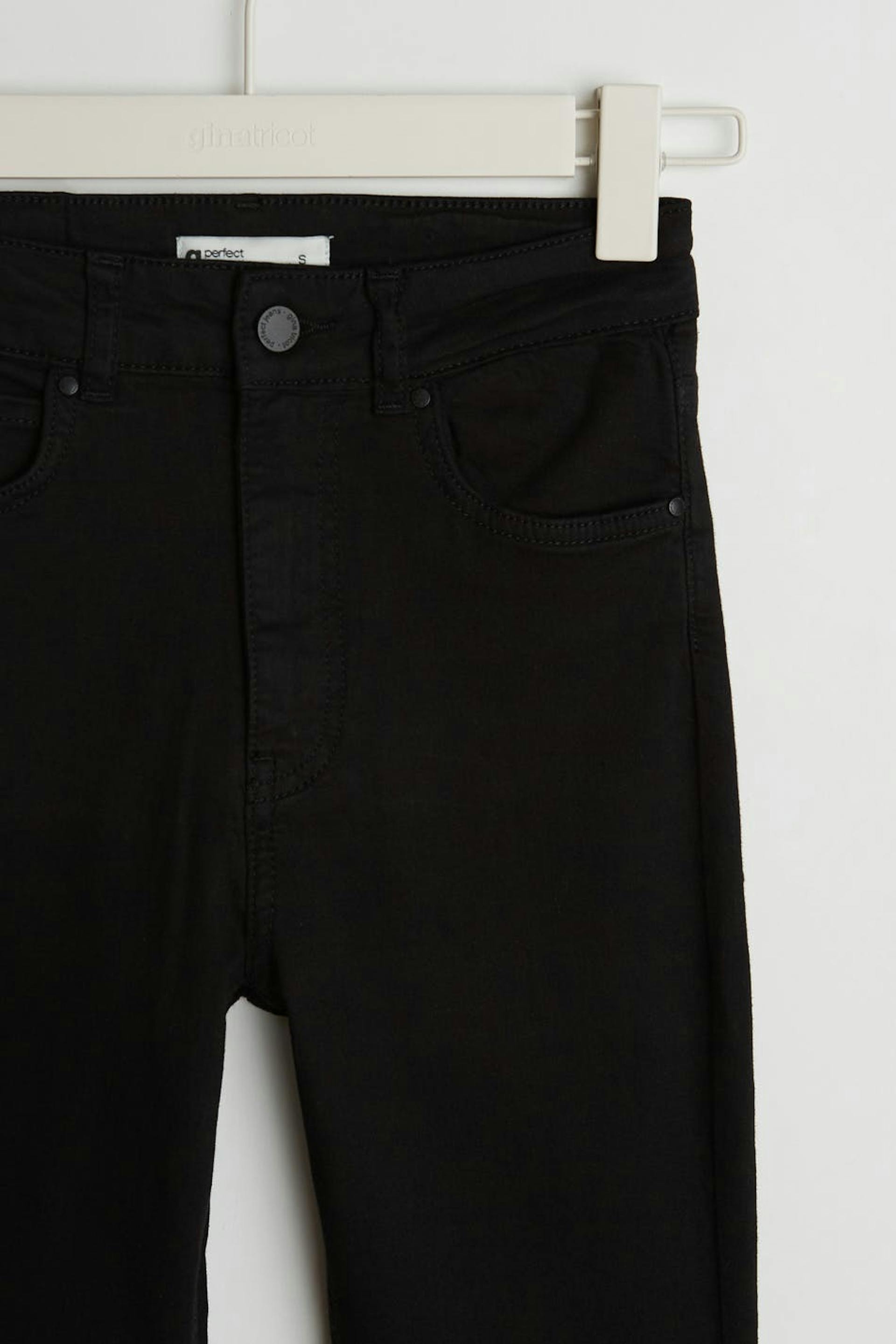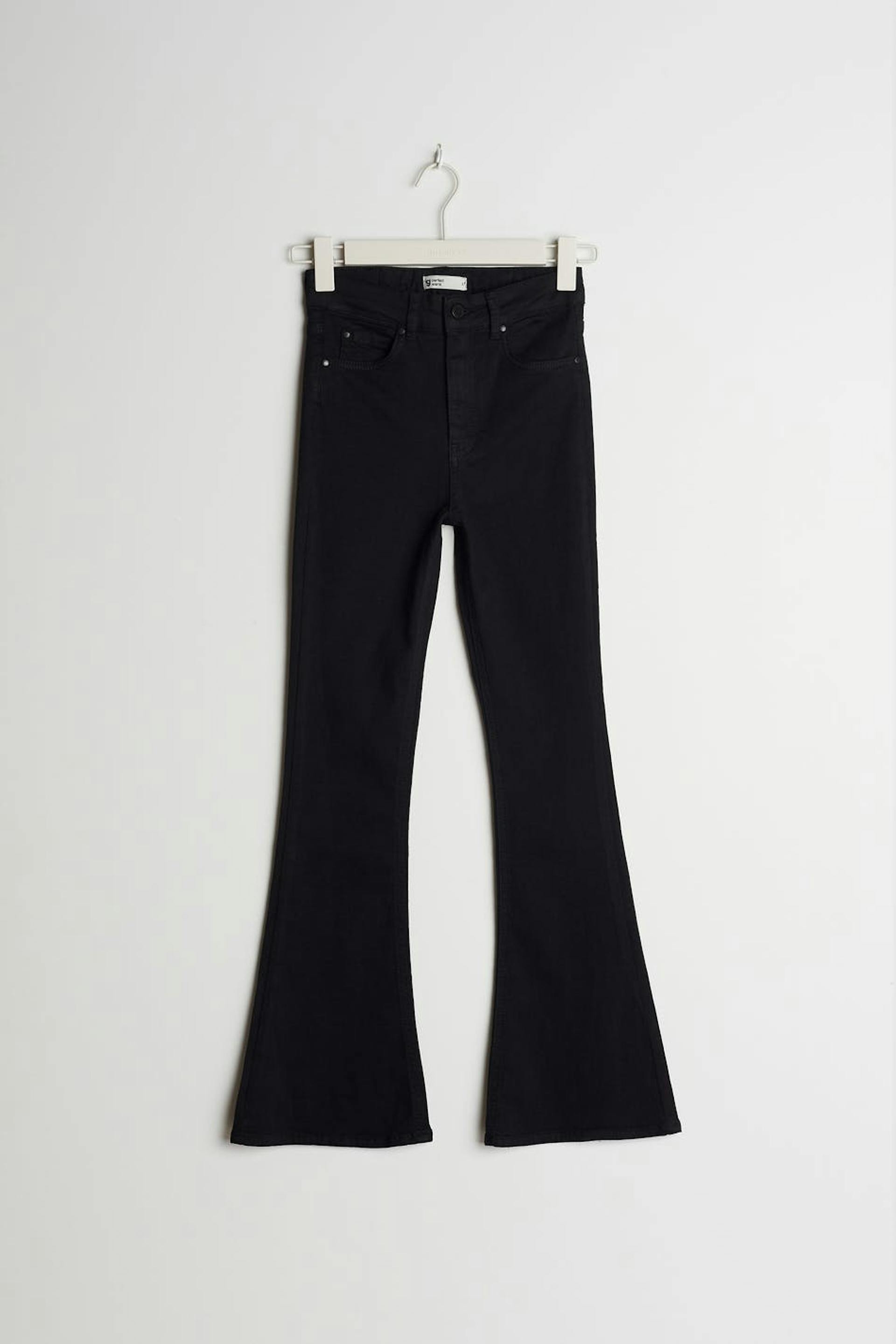 Petite spijkerbroeken met een skinny pasvorm. De spijkerbroeken zijn zwart en hebben superstretch. Het heeft flared beenuiteindes en een kortere beenlengte. Perfect voor personen die 160 cm (5 ft 3 in.) of kleiner zijn..