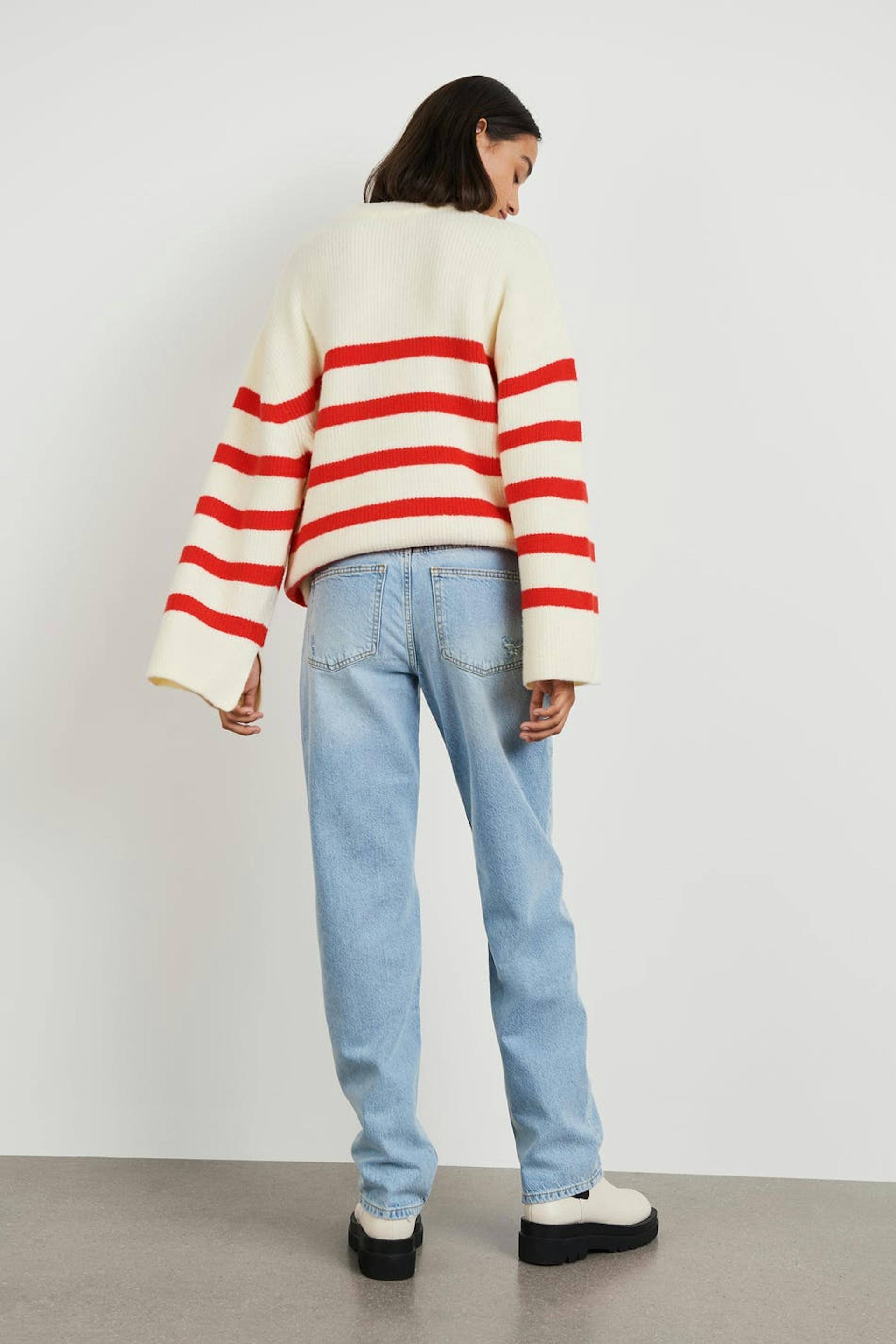 Het model draagt maat 36 en is 176 cm groot